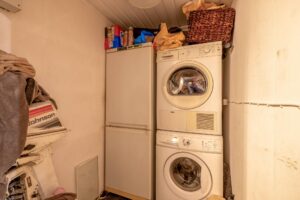 Het souterrain is in gebruik als woonverdieping. De entreehal geeft toegang tot de woon-/eetkamer, de keuken en een berging. De woon-/eetkamer heeft ramen die uitkijken op het parkeerterrein onderaan D’n Diek. De keuken, met diverse apparatuur en de meterkast, geeft toegang tot de badkamer, het toilet, de trapopgang en een berging met daarin de witgoedaansluitingen. De badkamer is voorzien van een douche en wastafel. Naast de trapopgang hangt de CV-ketel.