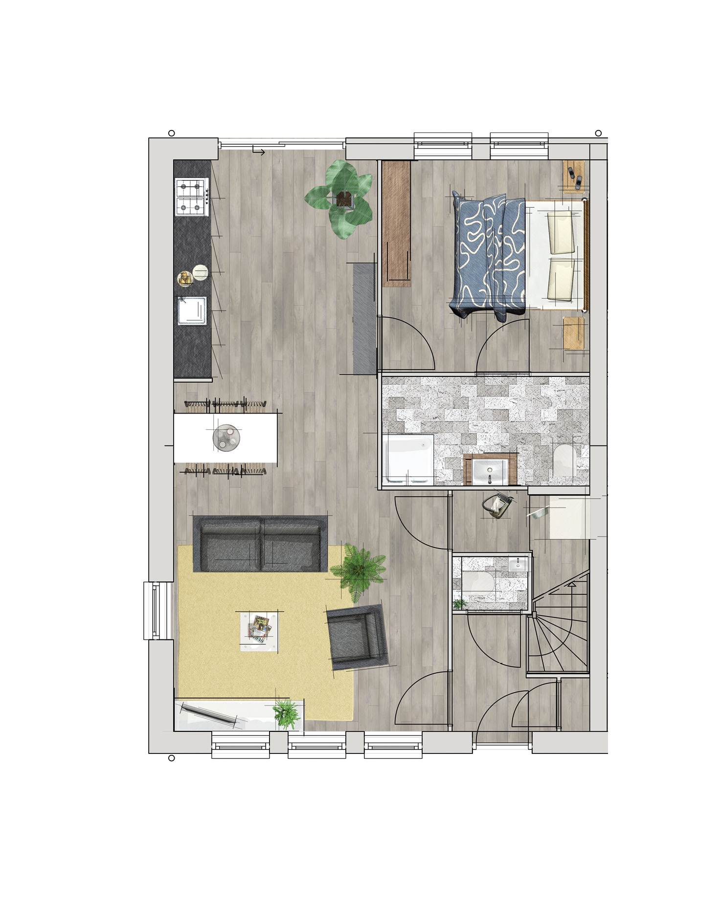 • Een vrij indeelbare zolder met ruimte voor een extra slaapkamer