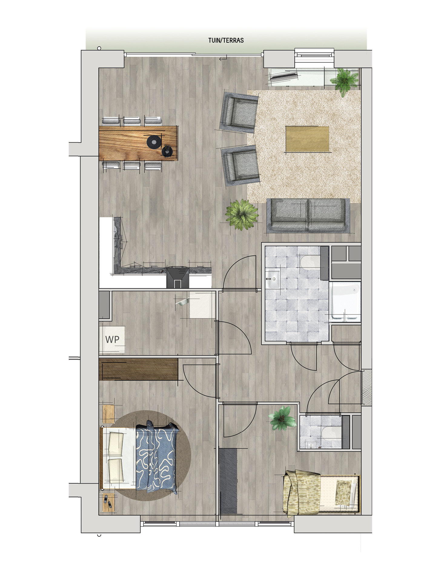 • 3-kamerappartement • Woonoppervlak van ca. 92m2 • Living van ca. 41,5m2 • Badkamer en toiletvoorzien van tegelwerk en sanitair • Warmtepomp en zonnepanelen • Eigenparkeerplaats Bouwnummer 1 en 3: • Tuin/terras van ca. 50m2 • Tuin/terrasophetzuiden Bouwnummer 4 en 6: • Balkon van ca.12m2 • Balkonophetzuiden