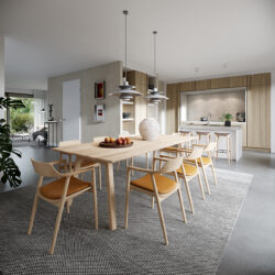 Type B2 heeft de keuken aan de voorzijde en heeft extra ramen in de keuken én de woonkamer.