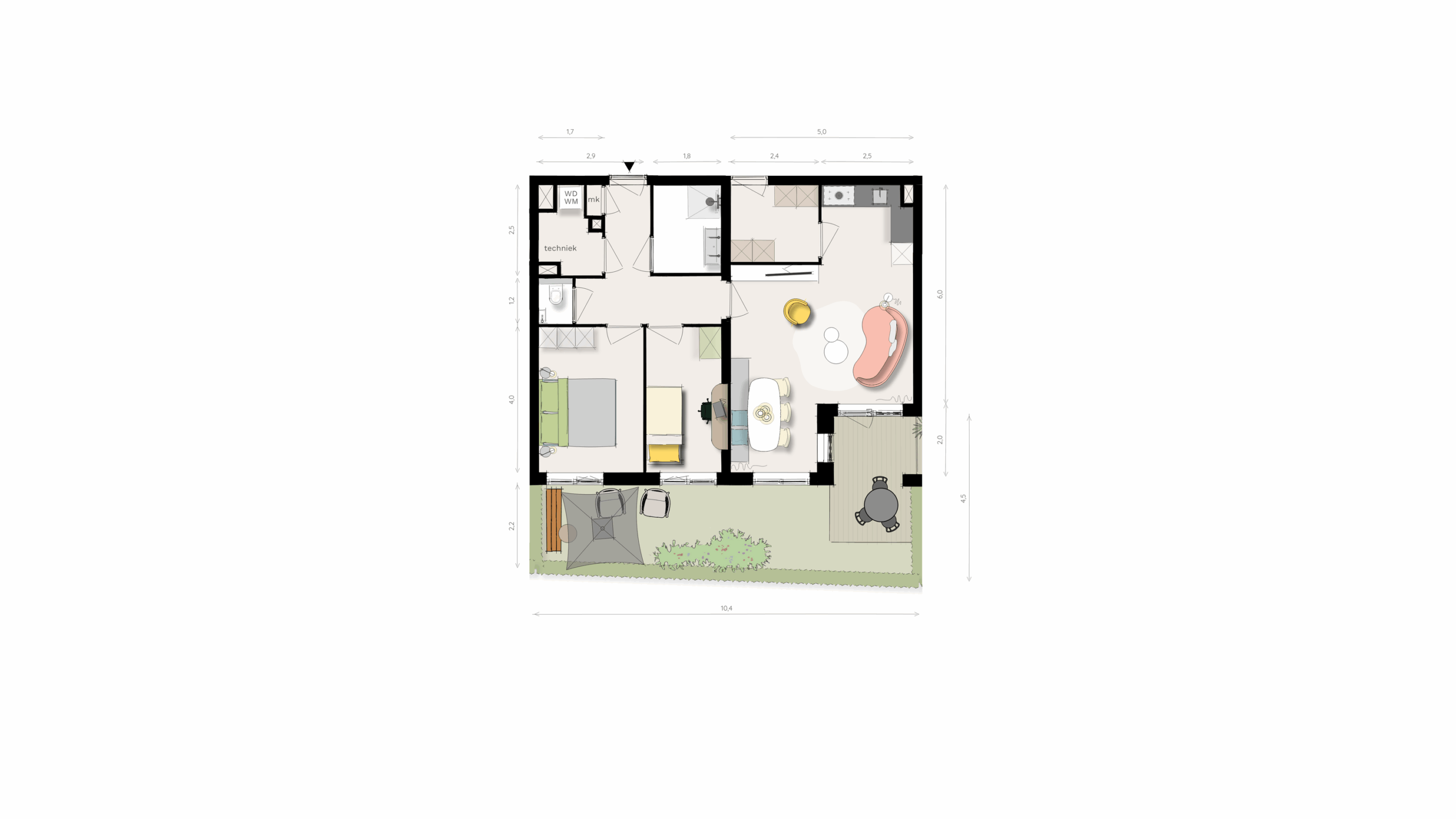 – Privé tuin (24 tot 69m2) of balkon of terras (6 tot 10m2)