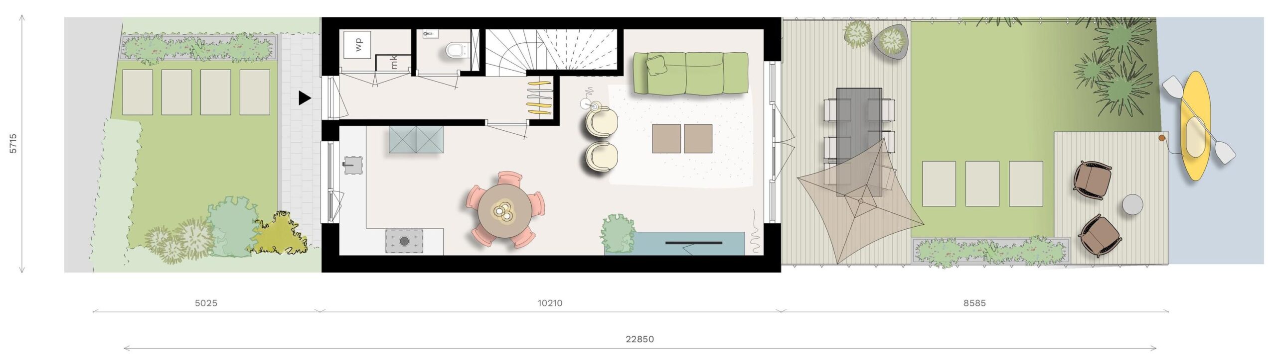 • Voortuin en achtertuin op het Noorden