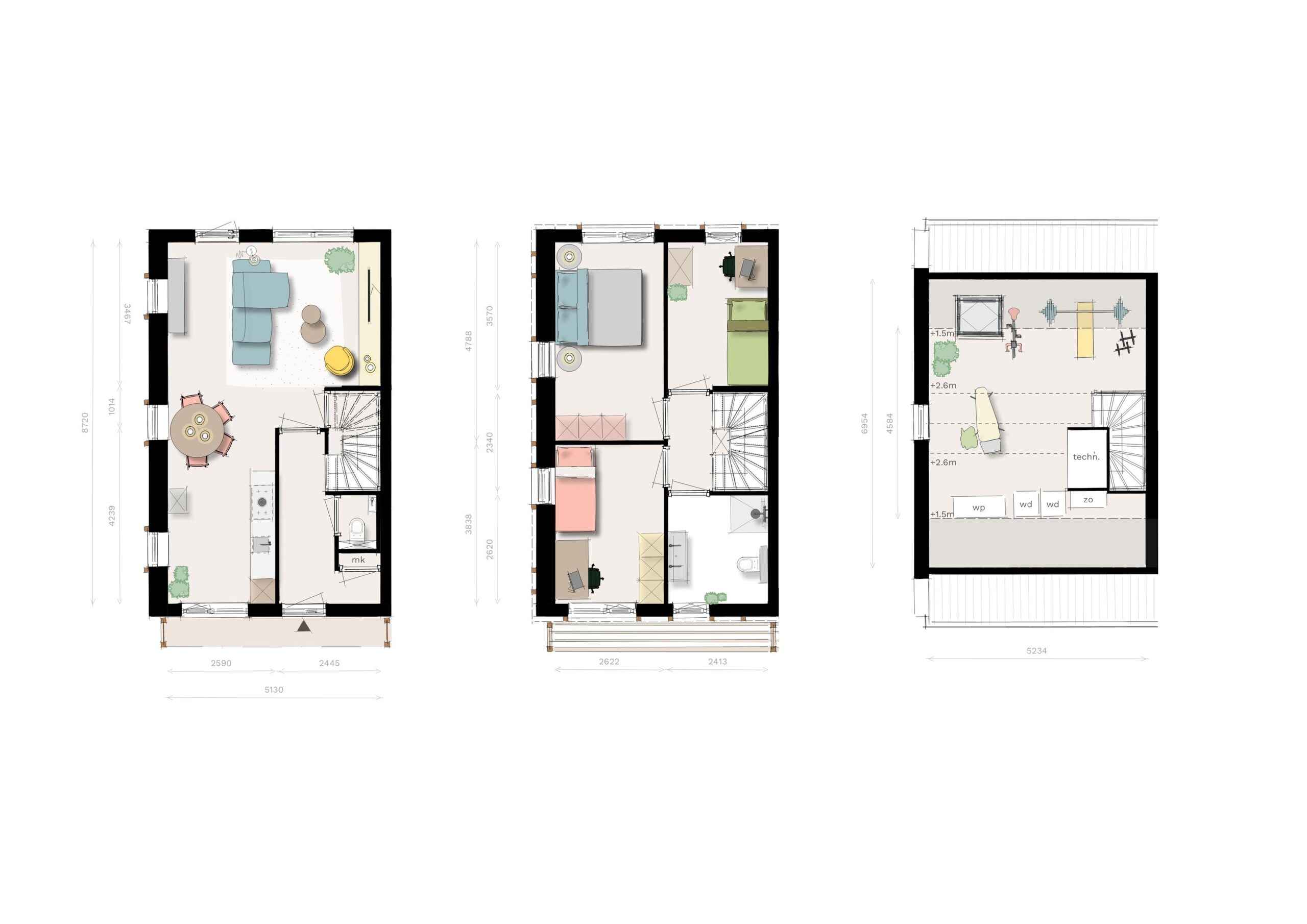 • 3 slaapkamers, extra kamer op de 2e verdieping mogelijk