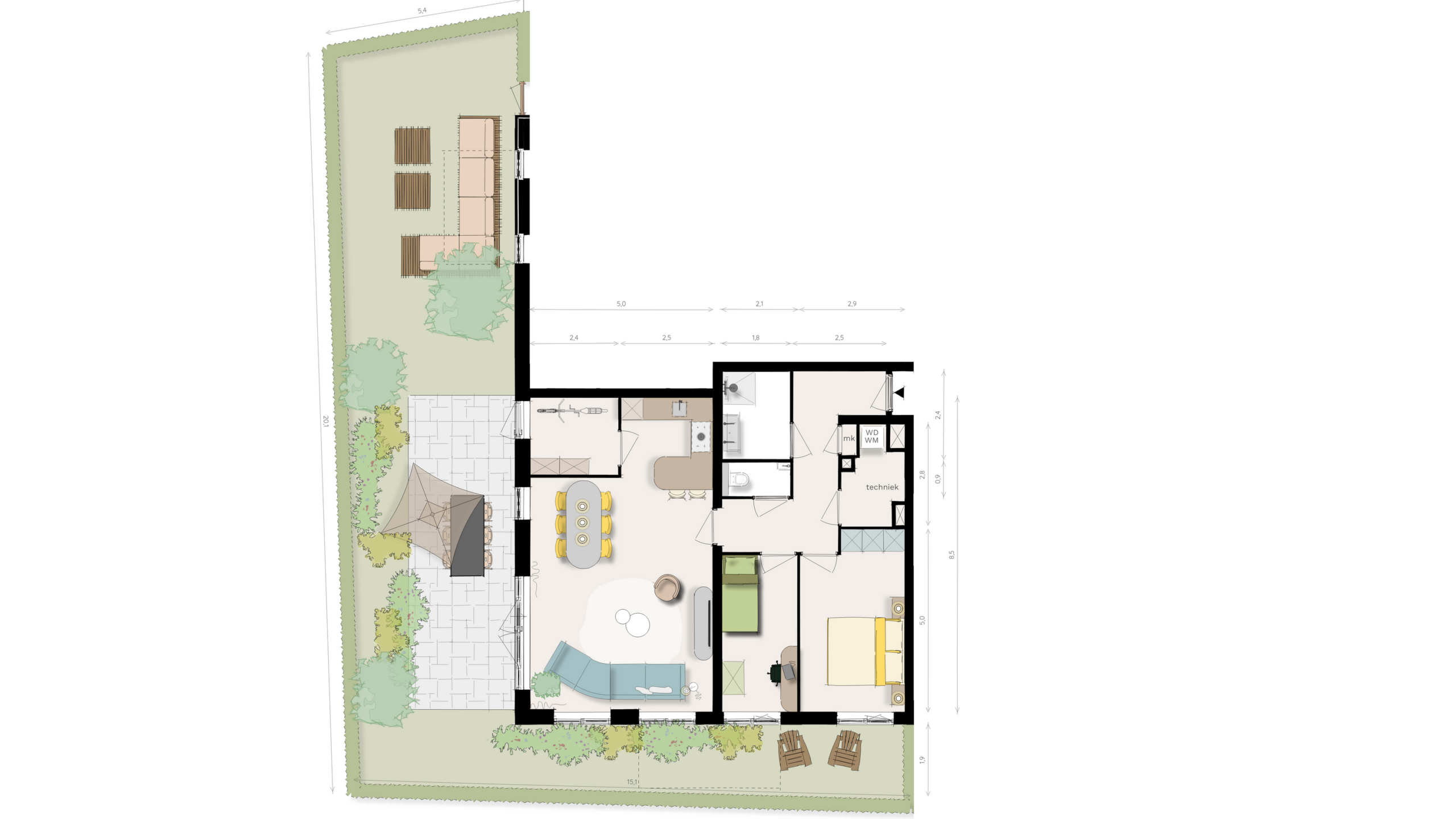– Royale privé tuin (100 tot 195m2) of balkon of terras (6 tot 23m2)