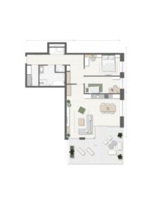 De ruime entreehal van het appartement geeft toegang tot de berging, de techniekruimte, de badkamer, het toilet, de twee slaapkamers, de keuken en de woon-/eetkamer. De royale woon-/eetkamer is voorzien van een een schuifpui naar het balkon. De schuifpui zorgt voor veel lichtinval. De open keuken is naar wens te realiseren.
