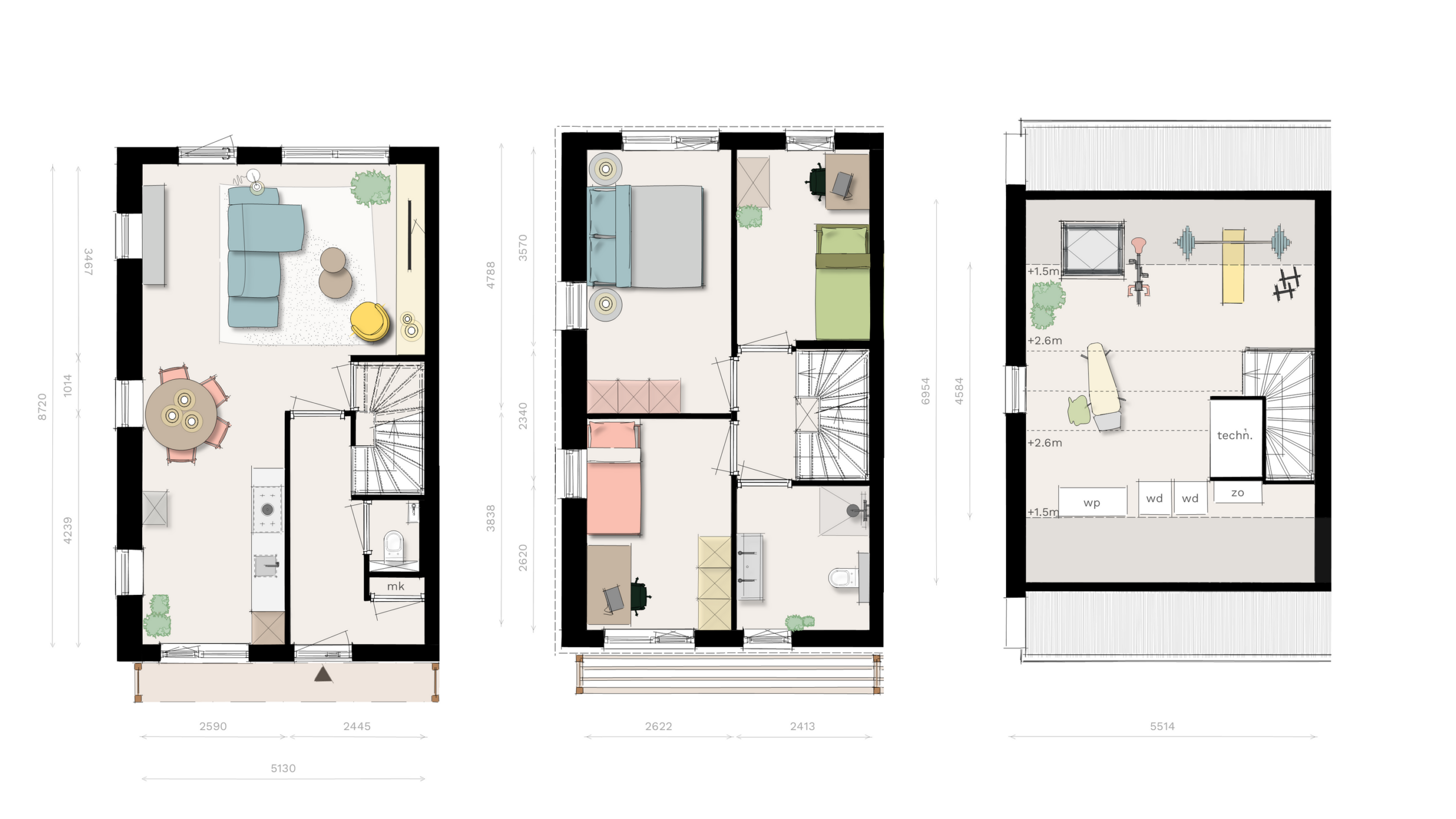 – 3 slaapkamers, extra kamer(s) op 2e verdieping mogelijk;