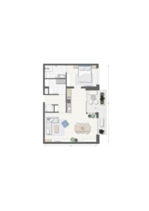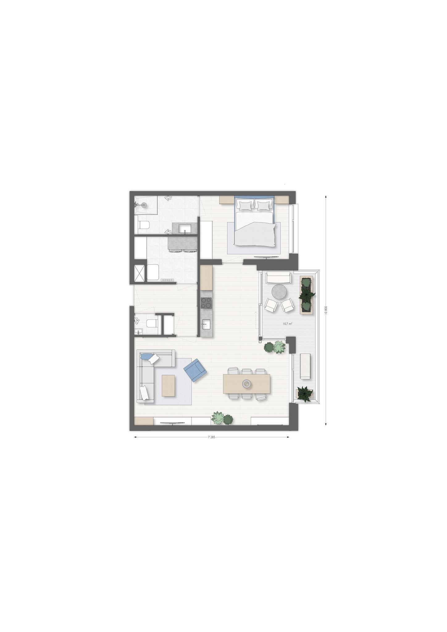 De entreehal van het appartement geeft toegang tot de berging/techniekruimte, het toilet, de keuken en de woon-/eetkamer. De royale woon-/eetkamer is voorzien van een een schuifpui naar het balkon. De schuifpui zorgt voor veel lichtinval. De open keuken is naar wens te realiseren.