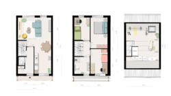 Aan de kleurrijke Bloesemtuin komen 6 tussenwoningen met de toepasselijke naam De Vijg. De rijwoningen hebben woonoppervlakten van circa 112 m2. De voortuinen grenzen aan de gemeenschappelijke Bloesemtuin. De woningen hebben tevens het comfort van een privé voor- en achtertuin. Een wens voor nog meer buitenruimte? Op de eerste verdieping komen drie slaapkamers en een badkamer. Nog een extra kamer nodig? De tweede verdieping is vrij indeelbaar.