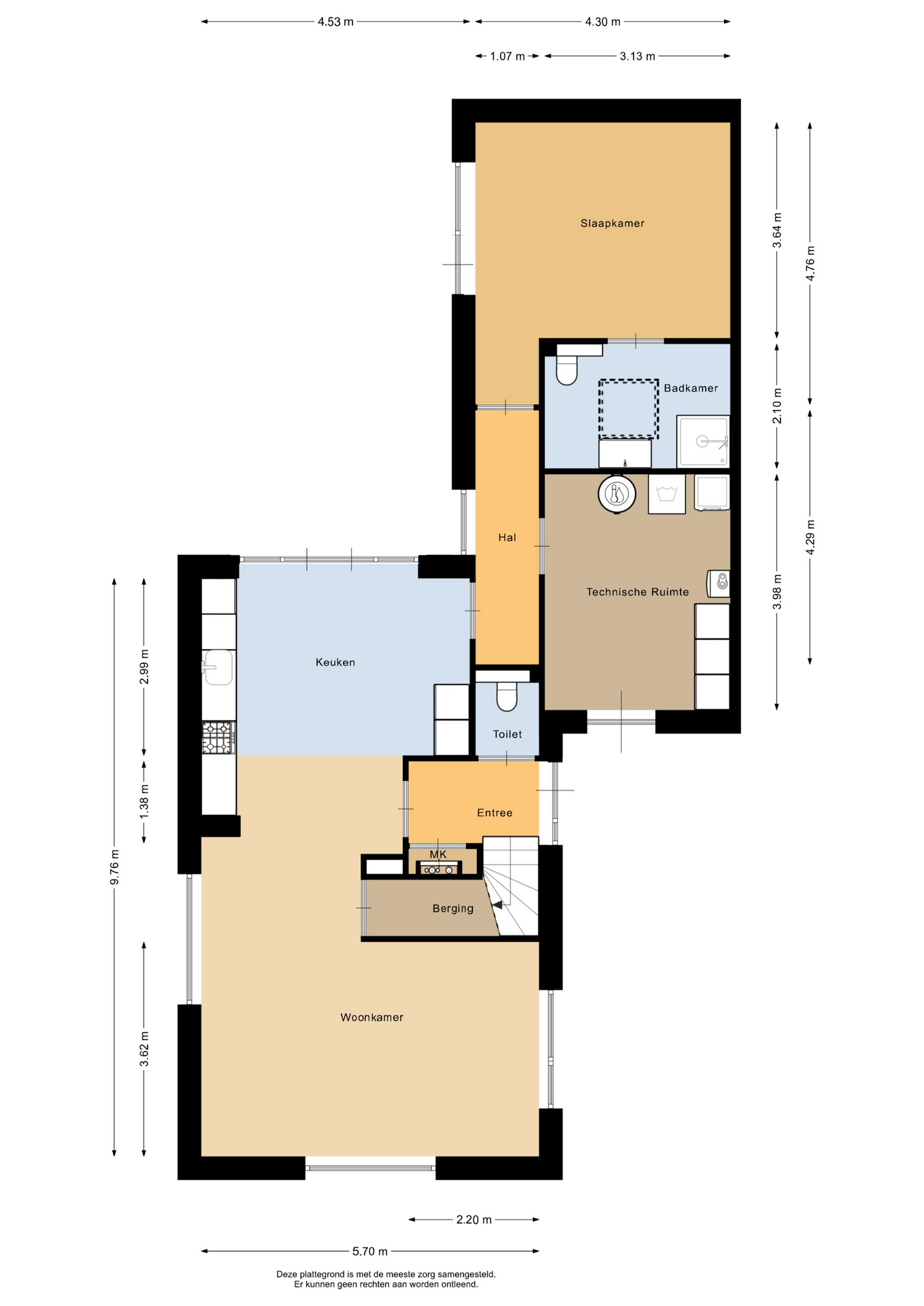 – Positie keuken en woonkamer zijn te wisselen