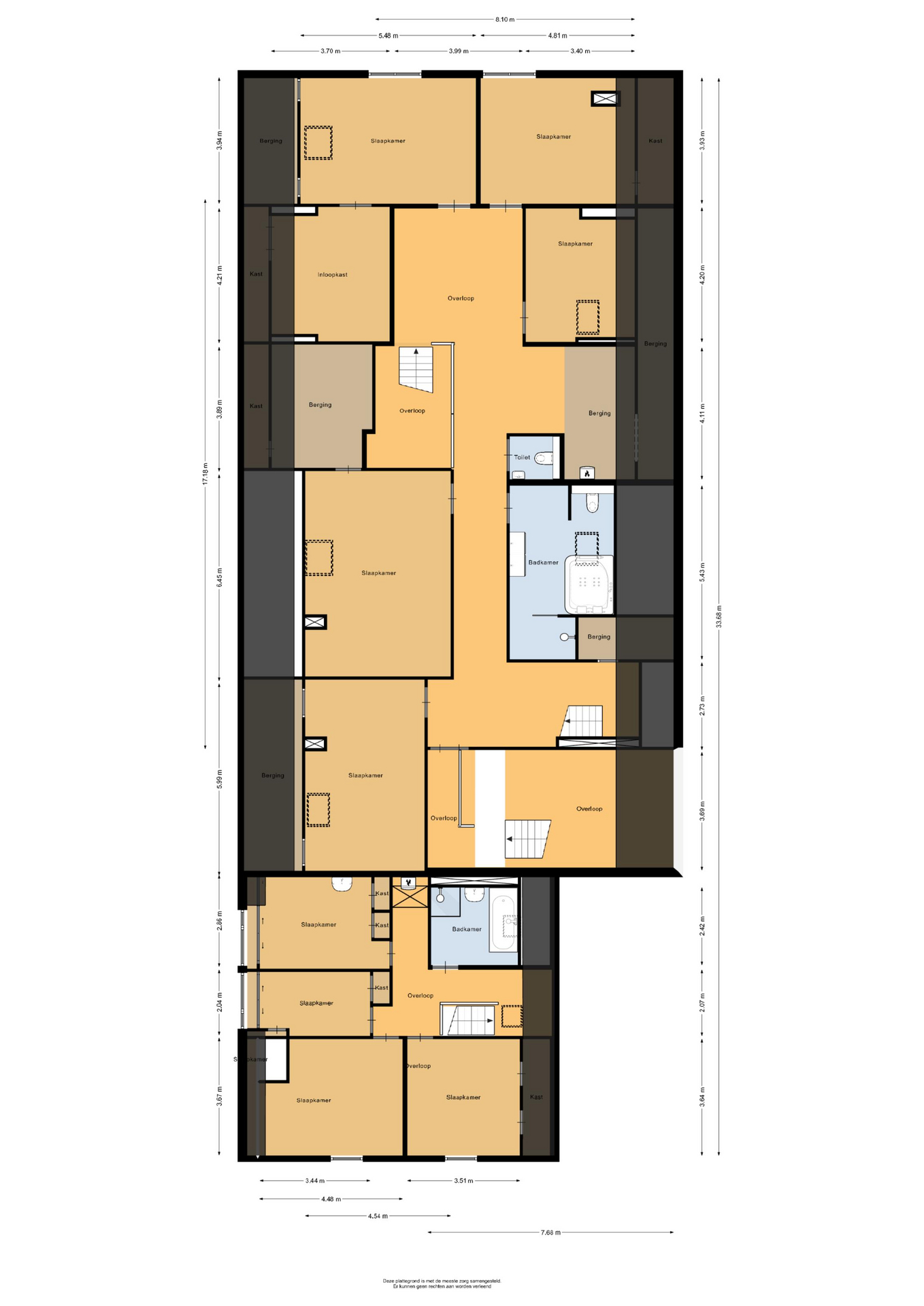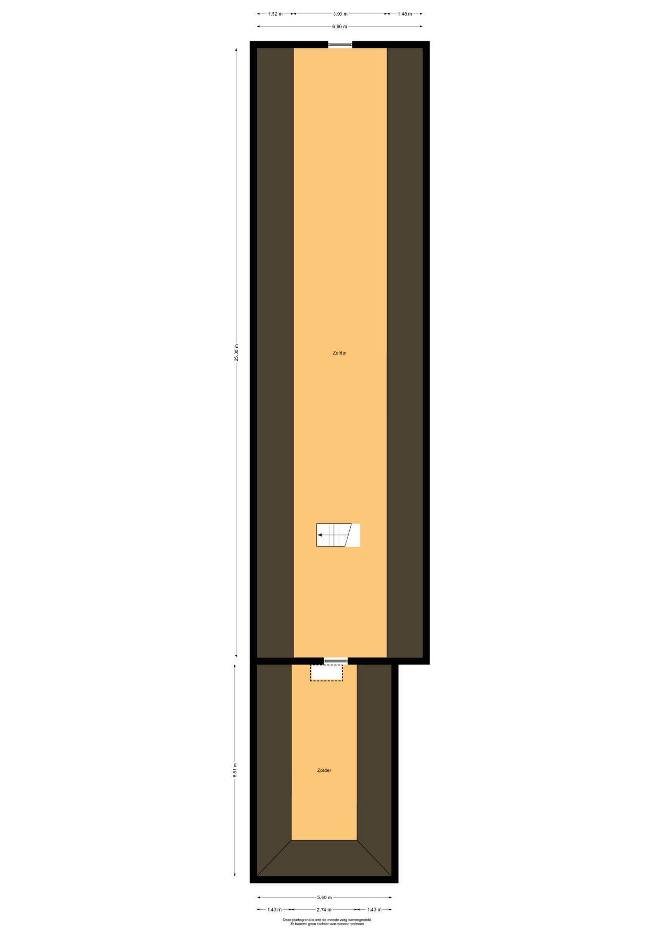Aan de voorzijde van het achterhuis is een tweede overloop bereikbaar. Via een vaste trap is de zeer ruime zolder bereikbaar.