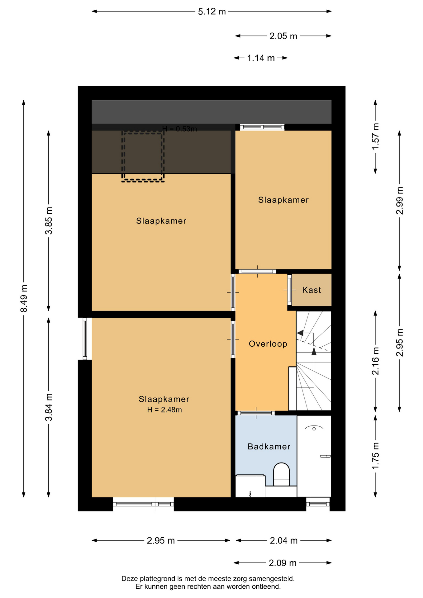 Op deze verdieping zijn drie slaapkamers gelegen en de badkamer. Aan de achterzijde bevindt zich een dakkapel, welke meer ruimte creëert op de slaapkamer rechtsachter. De badkamer is geheel betegeld en voorzien van een ligbad, toilet, wastafelmeubel en designradiator.