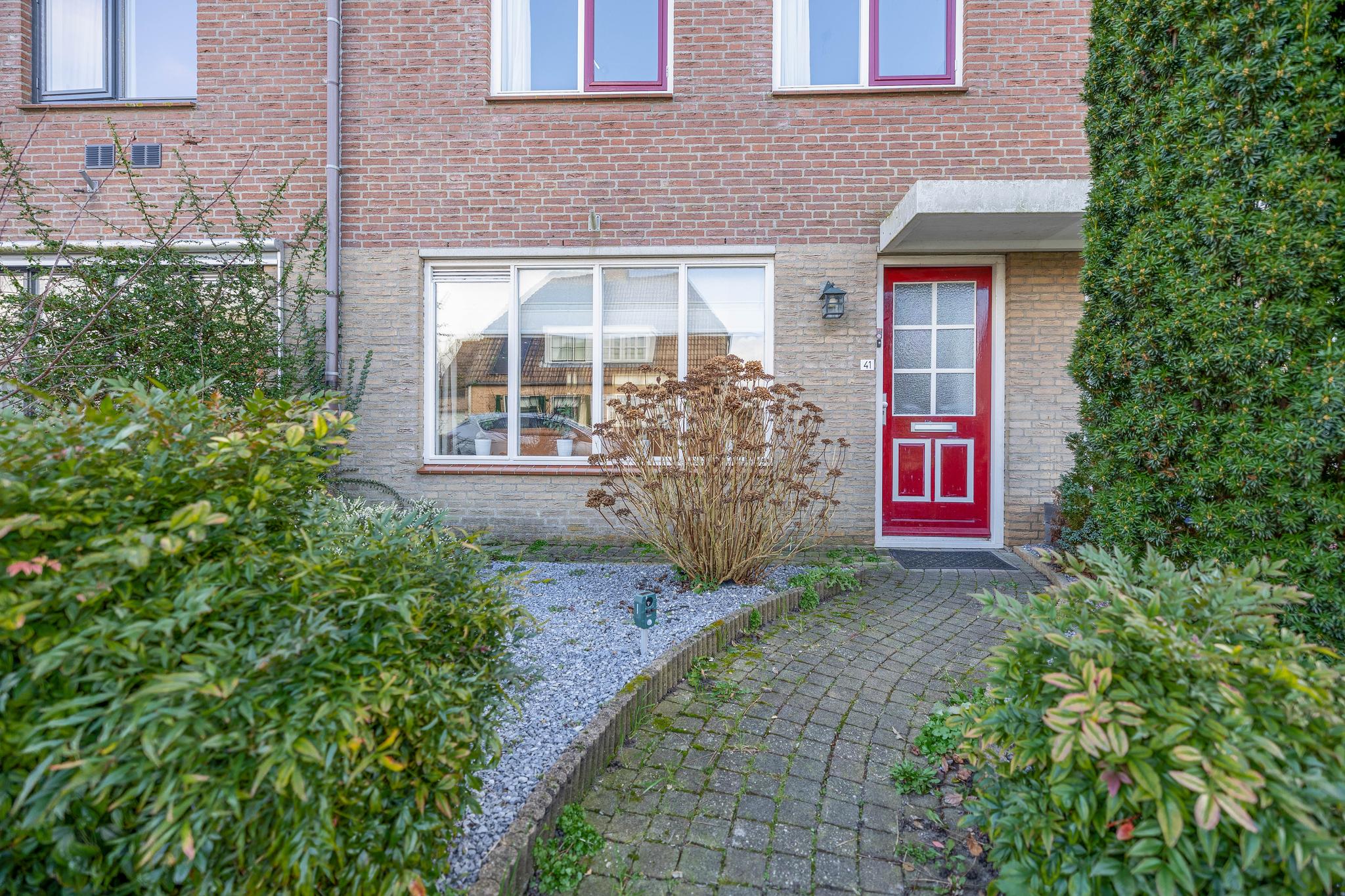 De achtertuin, gelegen op het zuidoosten, is voorzien van een vlonder direct achter de woning, bestrating en een border met allerlei planten. Achterin de tuin staat de berging. Links van de berging is een poort waardoor de tuin achterom bereikbaar is.