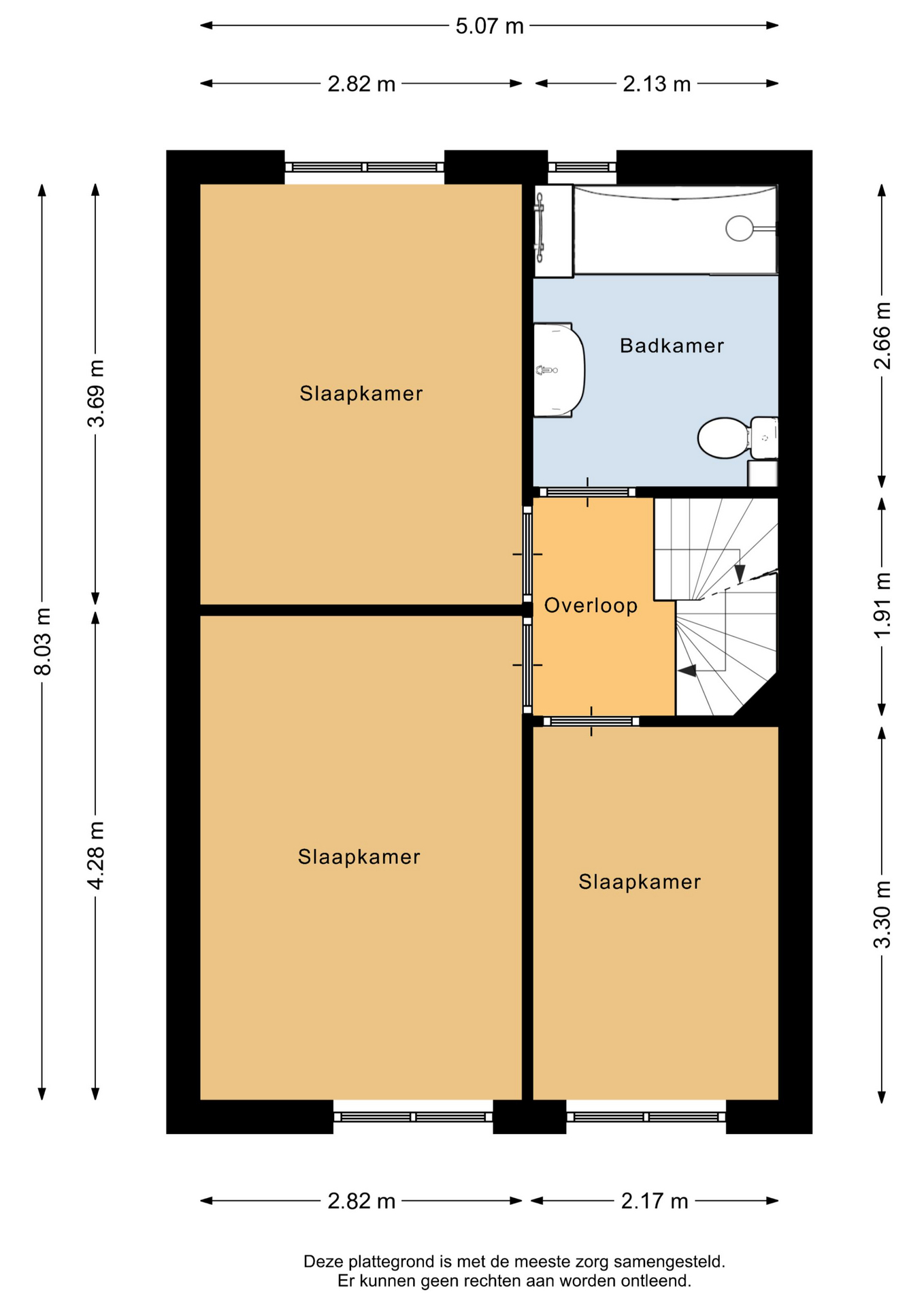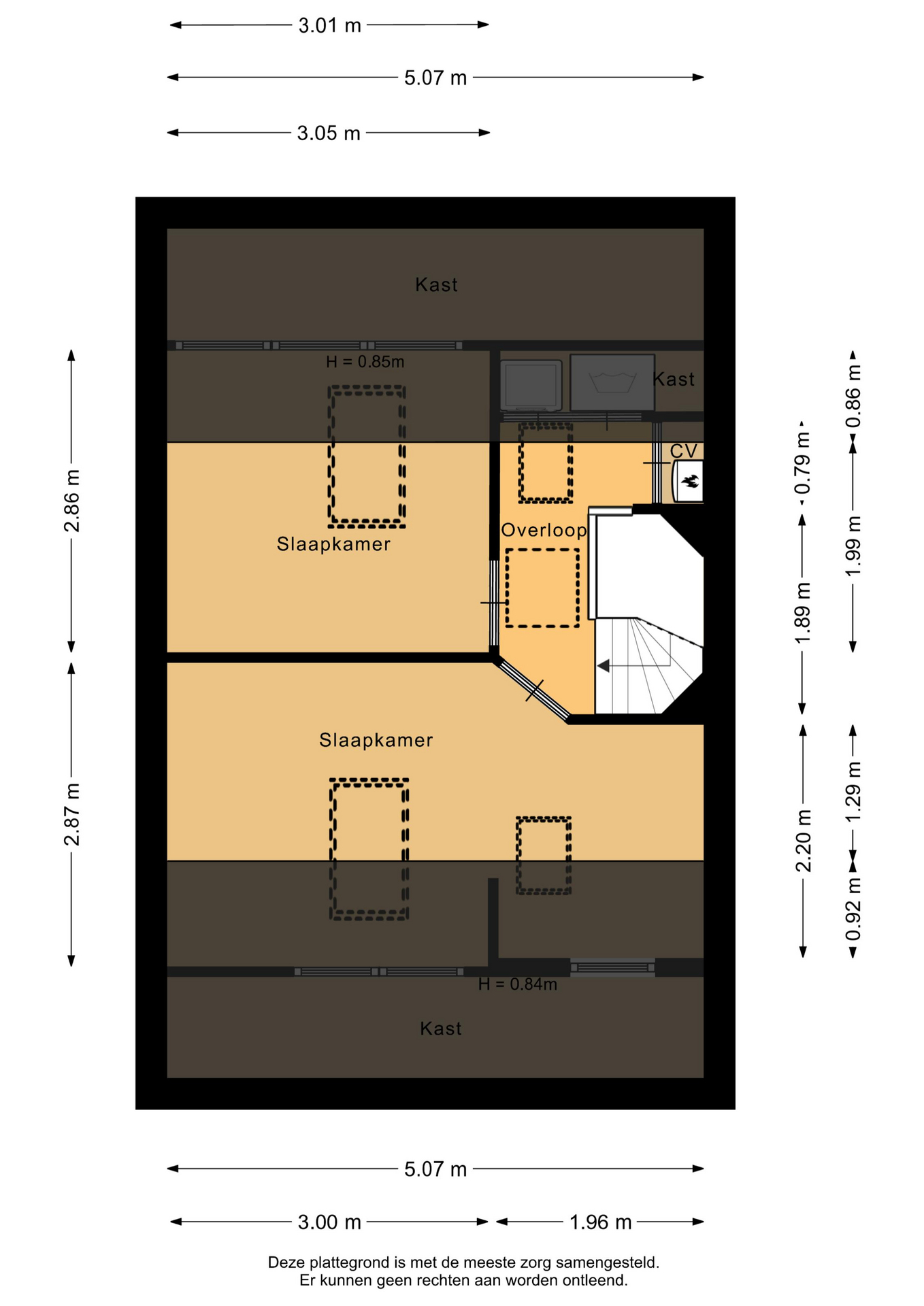 Via een vaste trap komt u op de overloop van de tweede verdieping. De overloop geeft toegang tot een berging met daarin de CV-ketel en de witgoedaansluitingen en tot de overige twee slaapkamers. De ruime slaapkamers zijn voorzien van een laminaatvloer. De ene slaapkamer beschikt over berging onder het schuine dak en een dakraam, de andere slaapkamer is ook voorzien van berging onder het schuine dak en heeft twee dakramen.