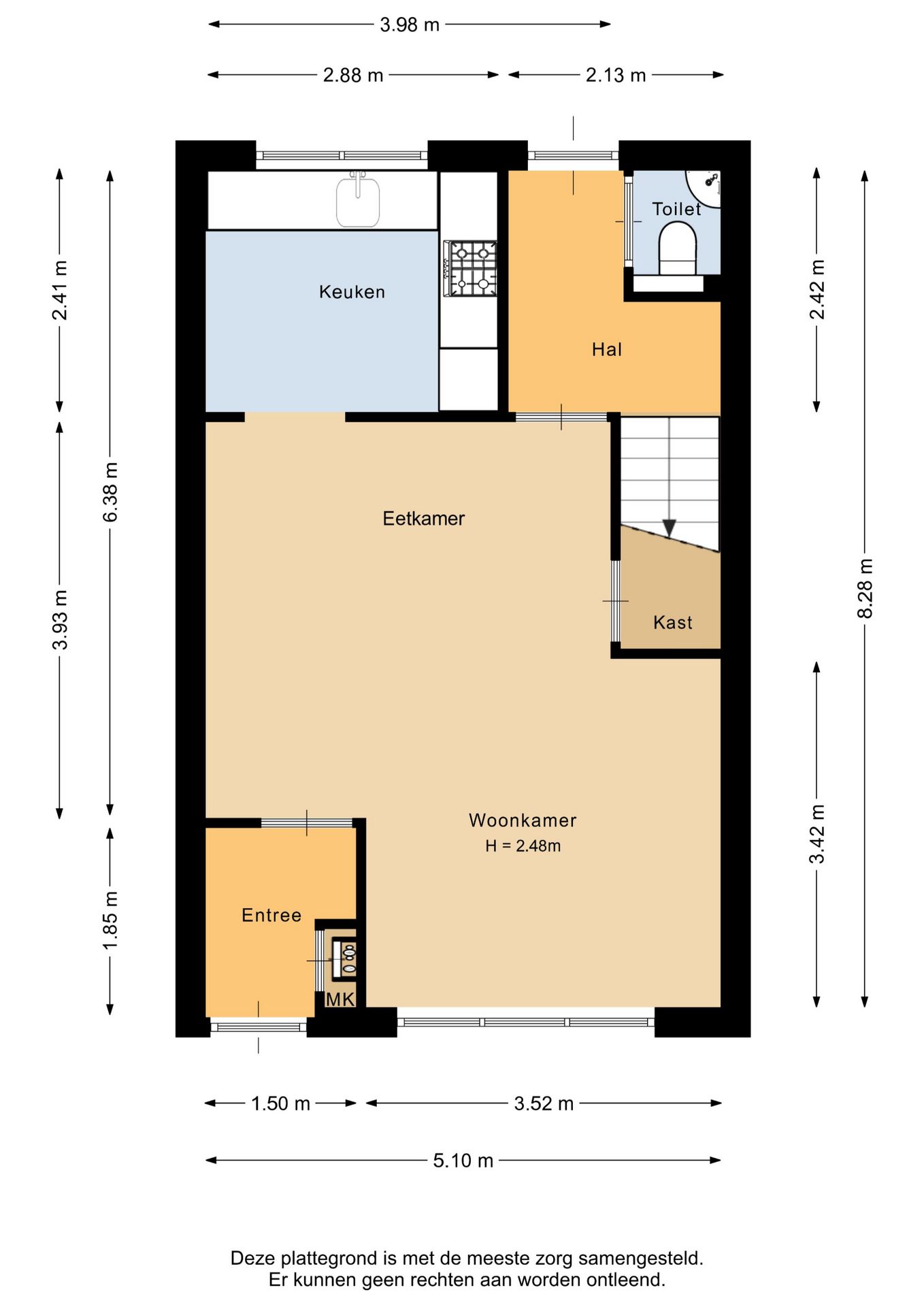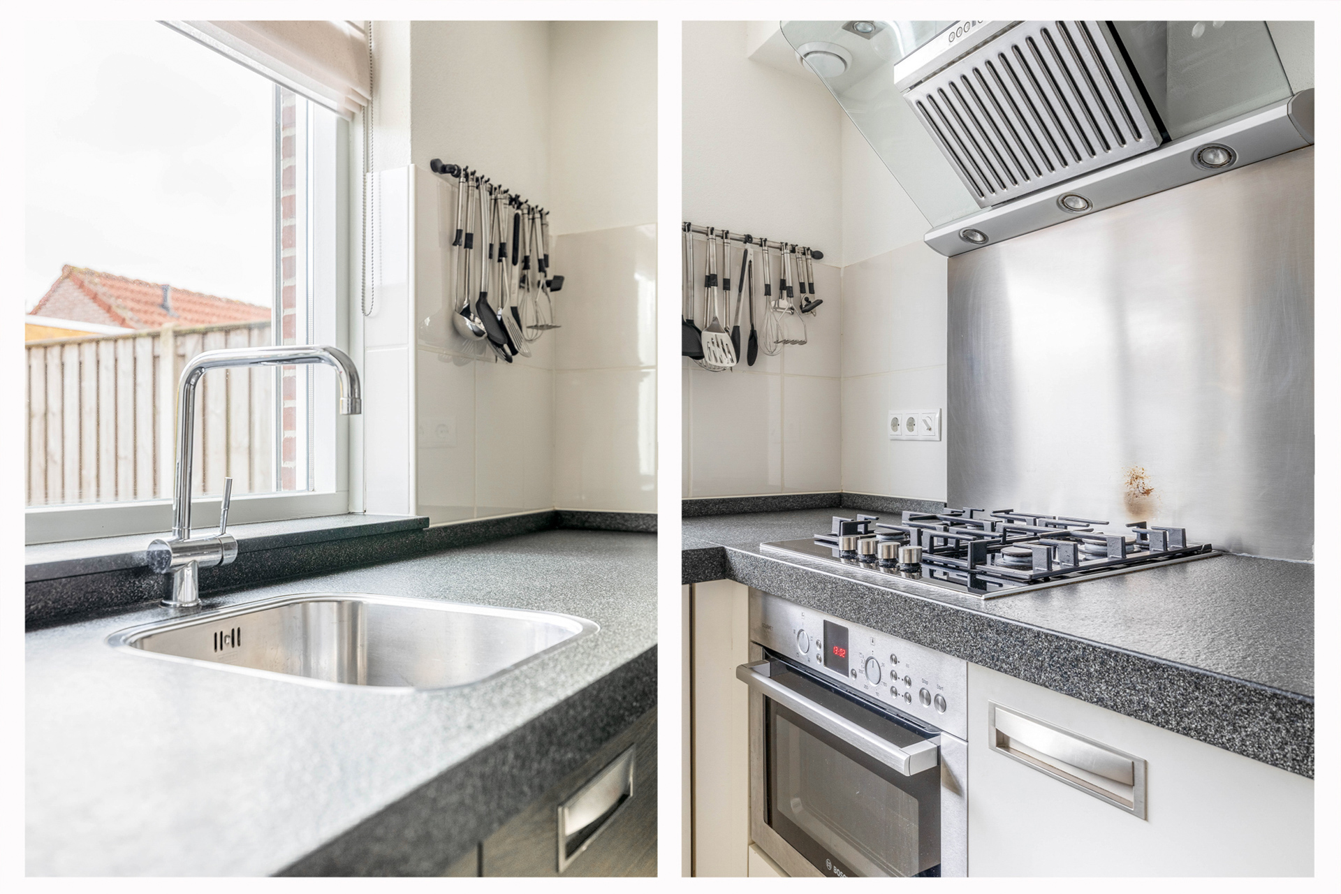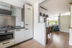 Middels de entreehal kom je in de woonkamer met open keuken. De open keuken is gelegen aan de achterzijde van de woning en voorzien van diverse inbouwapparatuur, zoals kookplaat, afzuigkap, combi-oven, koel-vriescombinatie en een vaatwasser. Via een tweede hal, aan de achterzijde van de woning, heb je toegang tot de achtertuin.