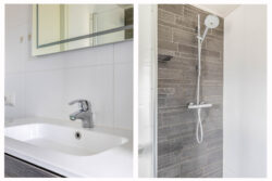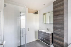 Op de eerste verdieping bevinden zich drie comfortabele slaapkamers en een badkamer. De badkamer is geheel betegeld en biedt wat je nodig hebt voor een moment van ontspanning: een ligbad om heerlijk tot rust te komen, een inloopdouche, een wastafelmeubel, een toilet en een designradiator.
