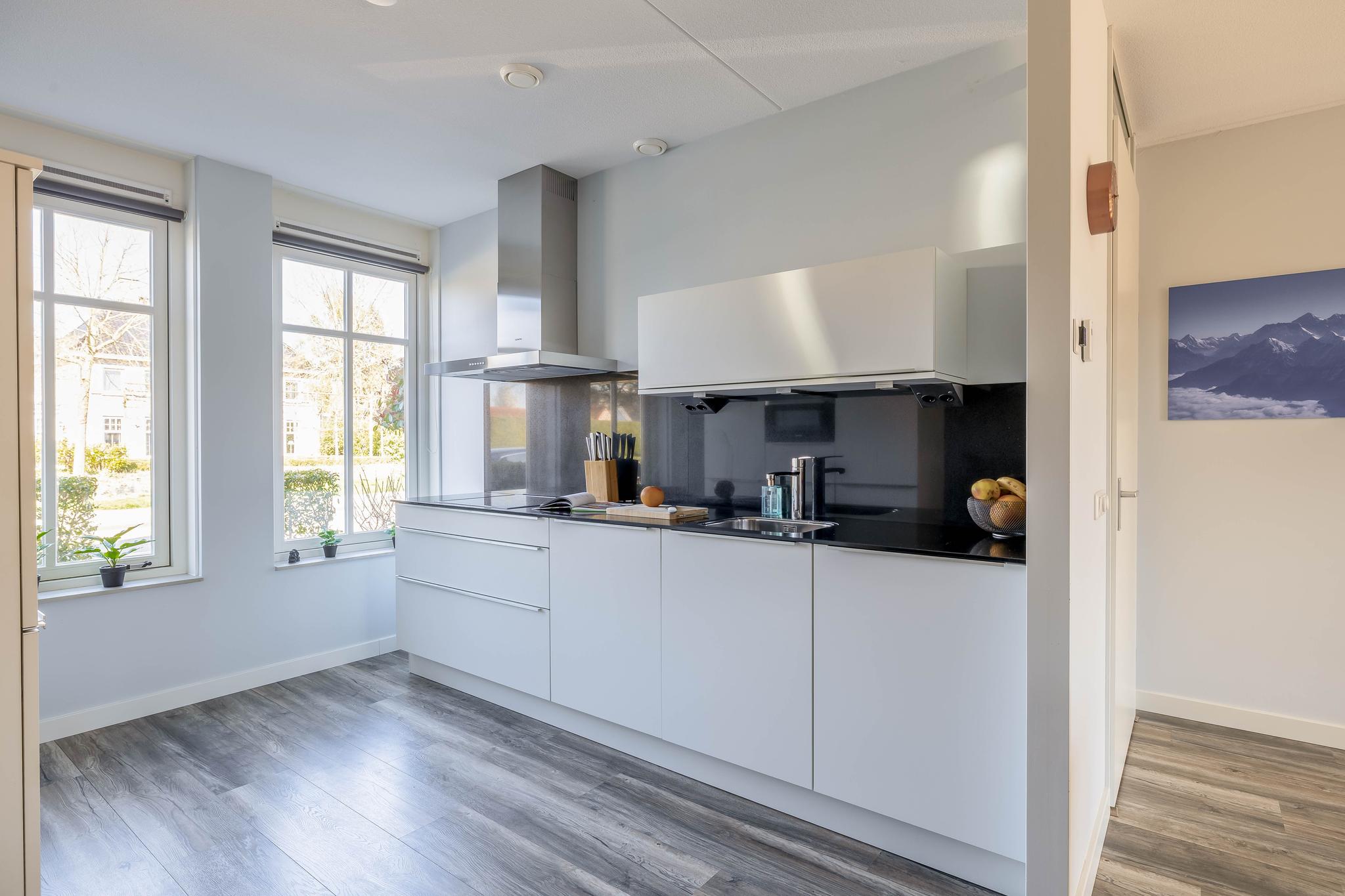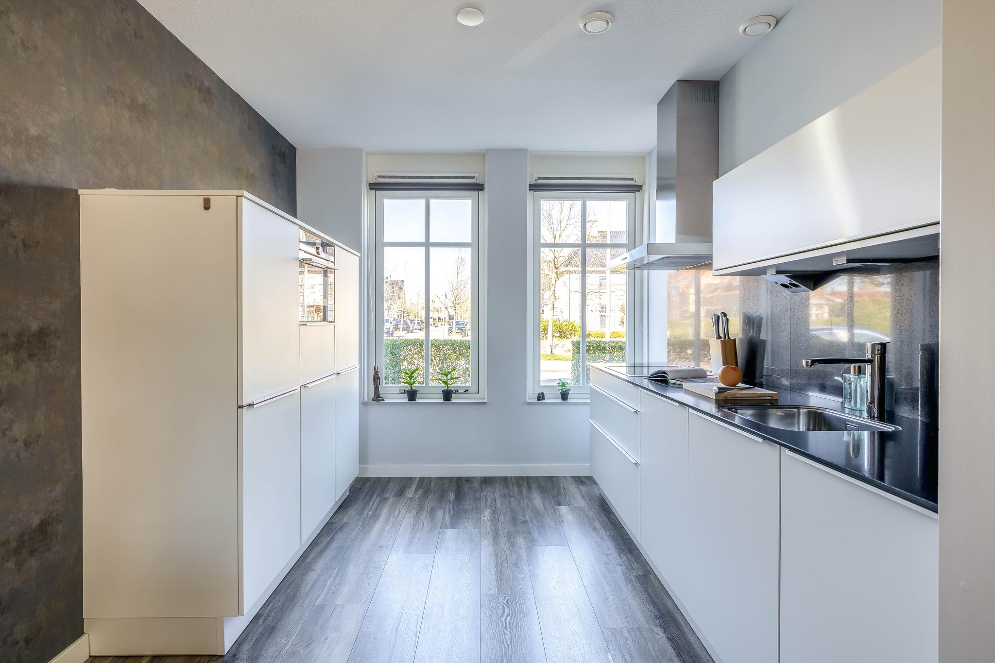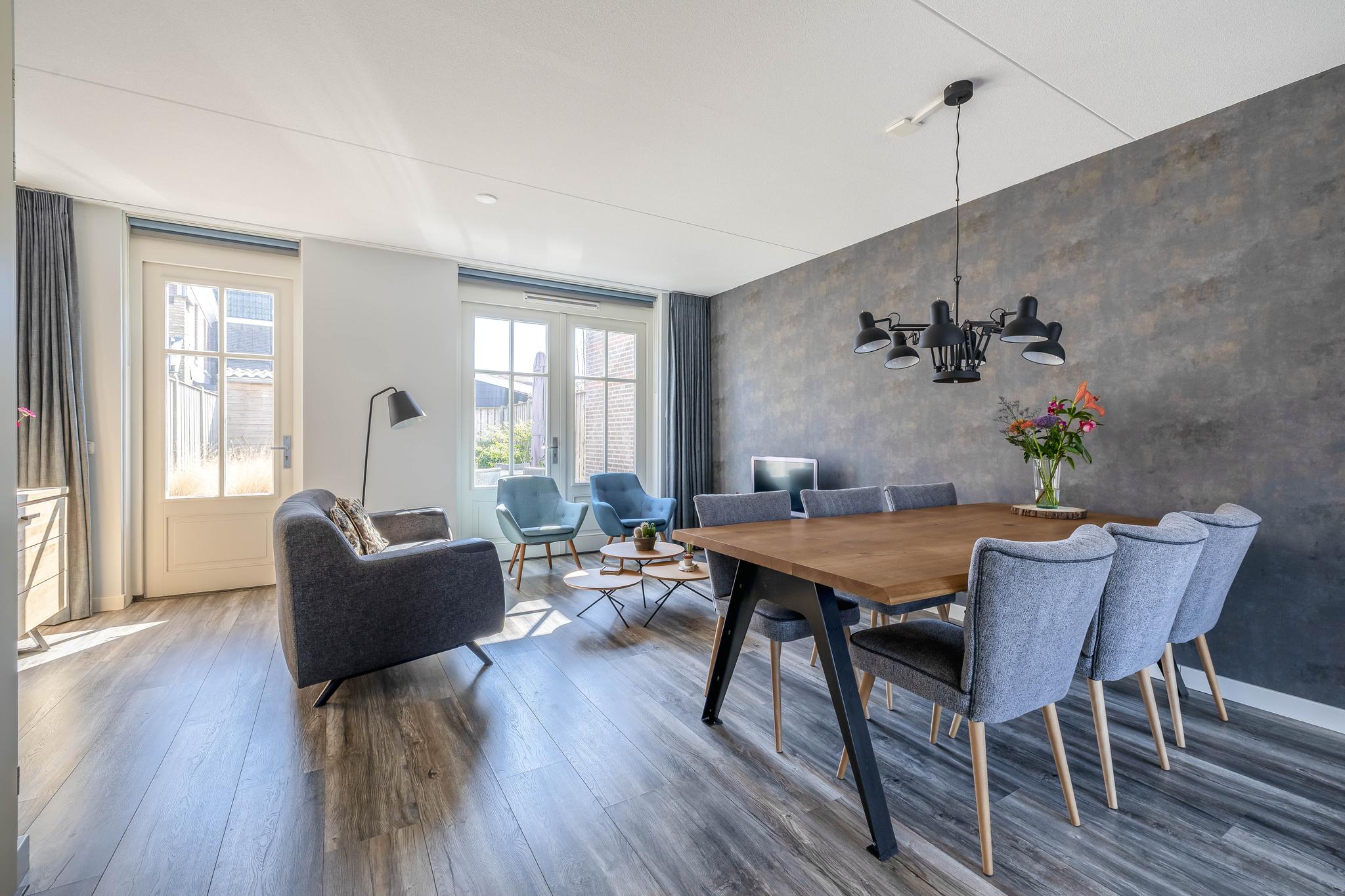 De entreehal, met meterkast, toilet en trapopgang, geeft toegang tot de woon-/eetkamer en de keuken. De gezellige woonkamer, aan de achterzijde van de woning gelegen, is voorzien van een mooie laminaatvloer, openslaande deuren en een deur naar de tuin. De grote raampartijen zorgen voor veel natuurlijke lichtinval. In het verlengde van de woonkamer is de eetkamer, met vaste kast, gesitueerd. Vanuit de eetkamer heeft u toegang tot de open keuken. De moderne keuken is voorzien van veel opbergruimte en diverse apparatuur: kookplaat, afzuigkap, combi-oven, koelkast en vaatwasser. De gehele benedenverdieping is voorzien van een laminaatvloer met vloerverwarming.