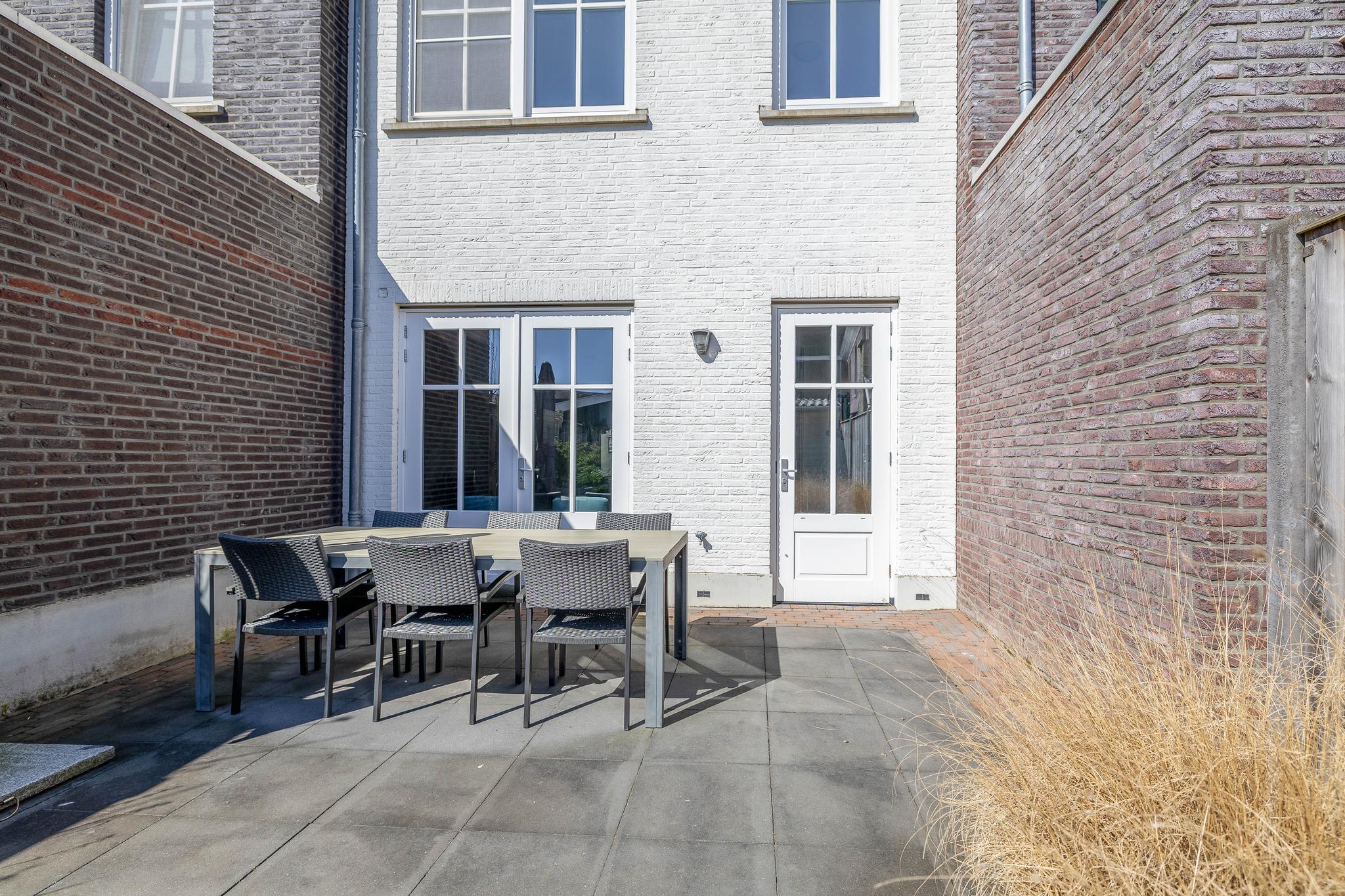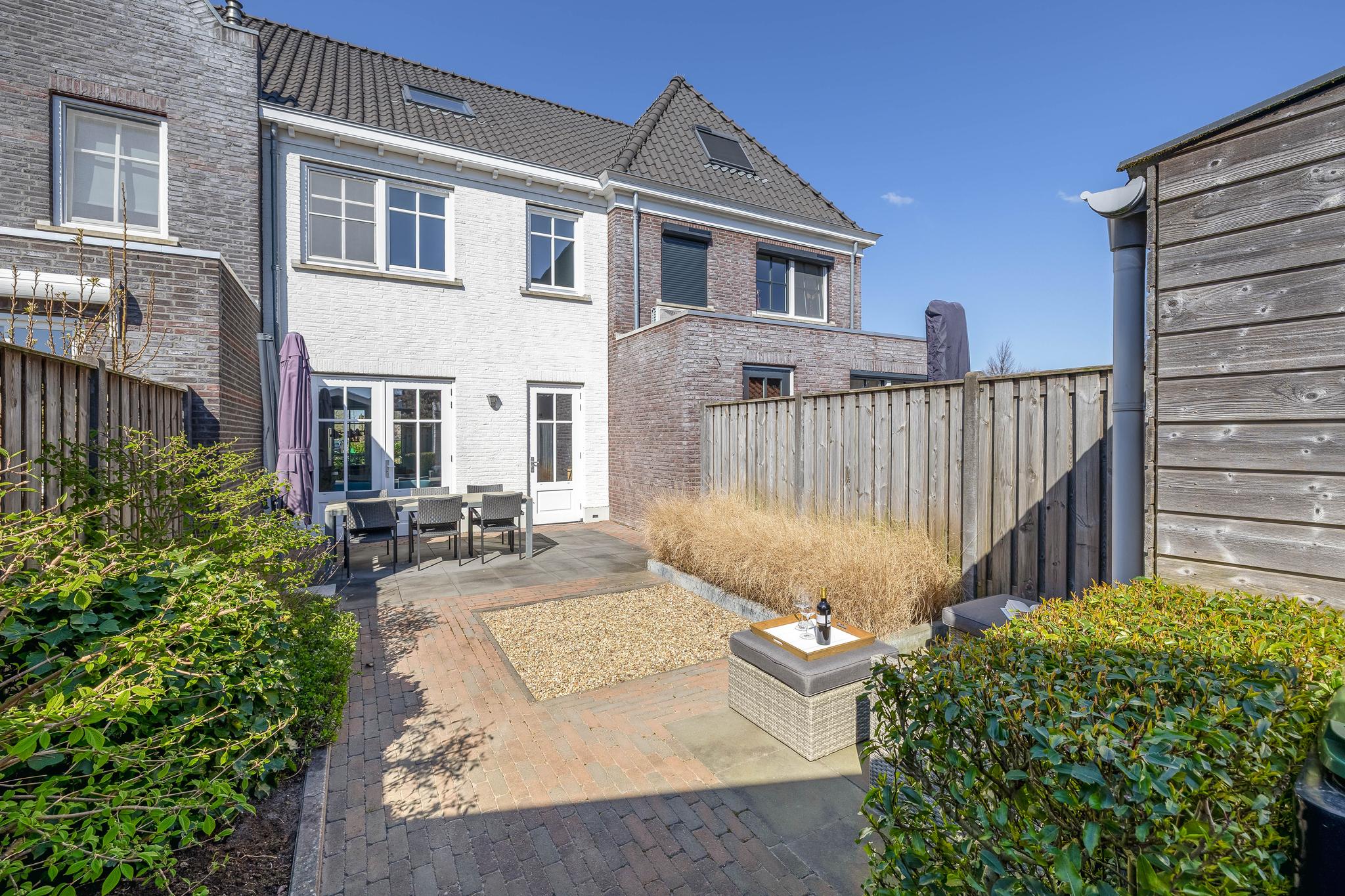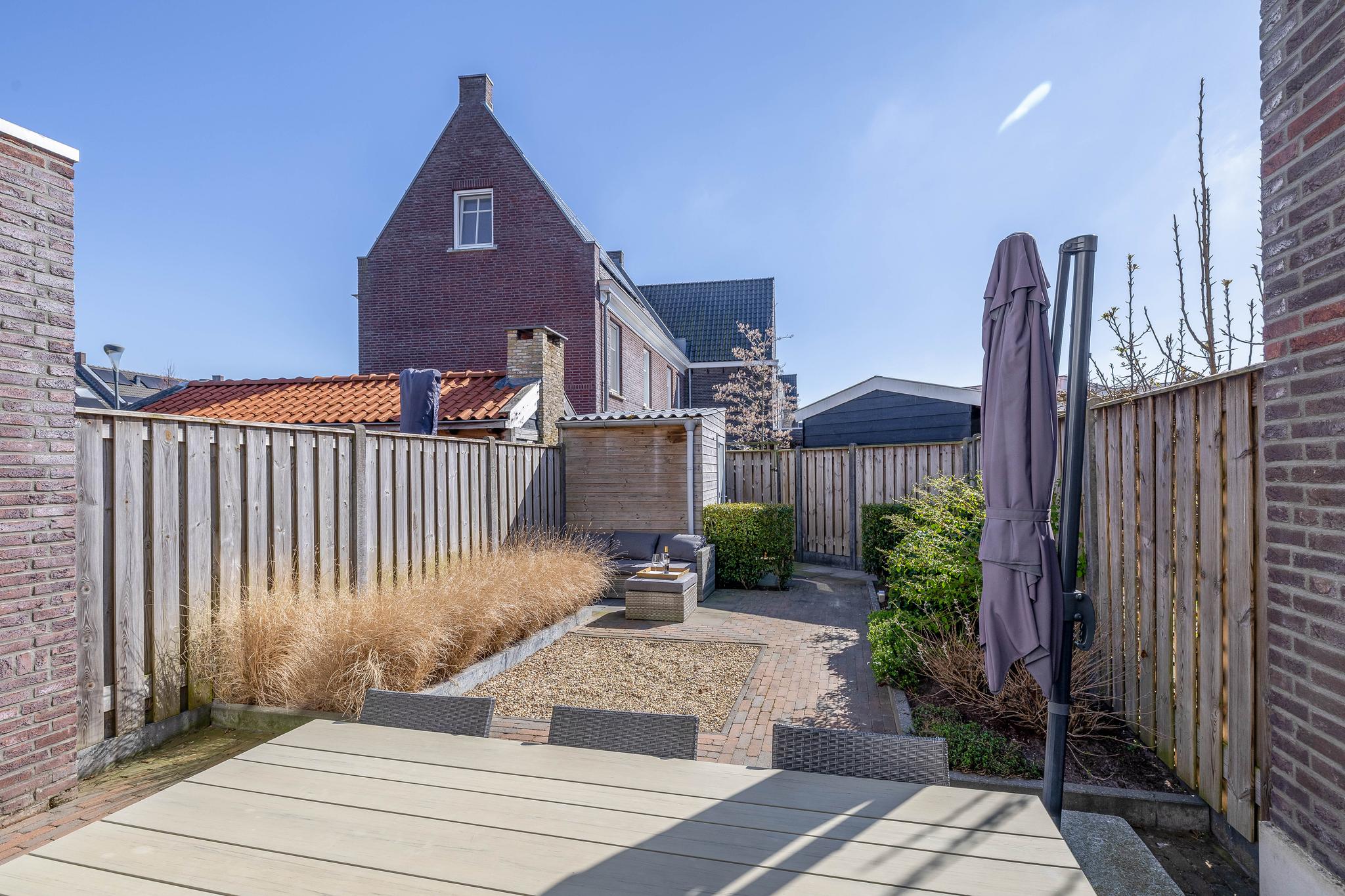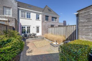 De achtertuin is gelegen op het zuiden. De mooie, verzorgde achtertuin is voorzien van bestrating, siergrind en borders met beplanting. Het is hier heerlijk vertoeven. Achter in de tuin staat de houten berging. Naast de berging is een poort waardoor de tuin achterom bereikbaar is.
