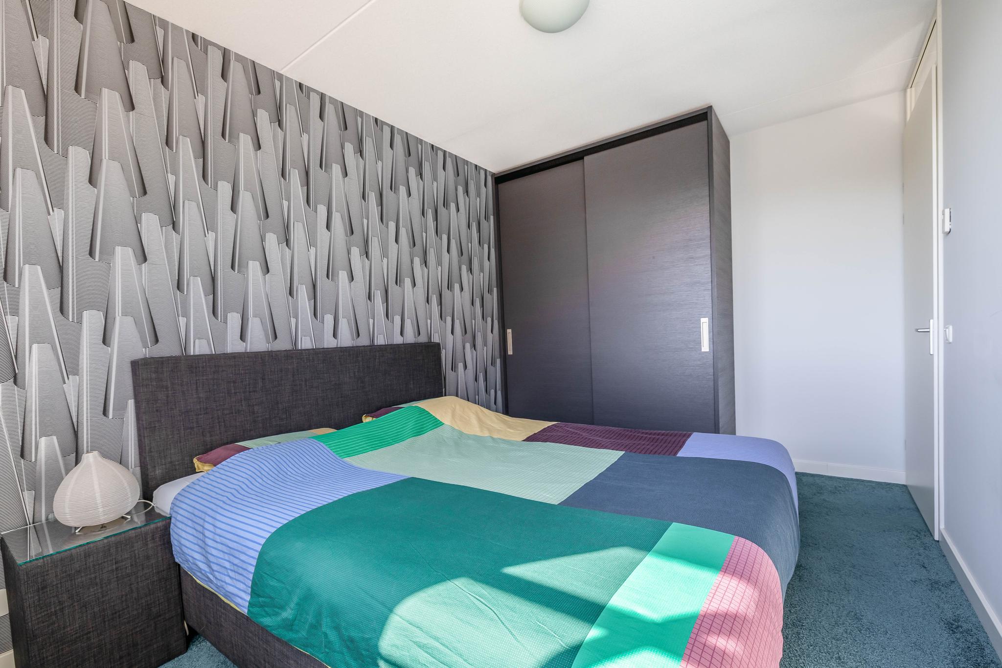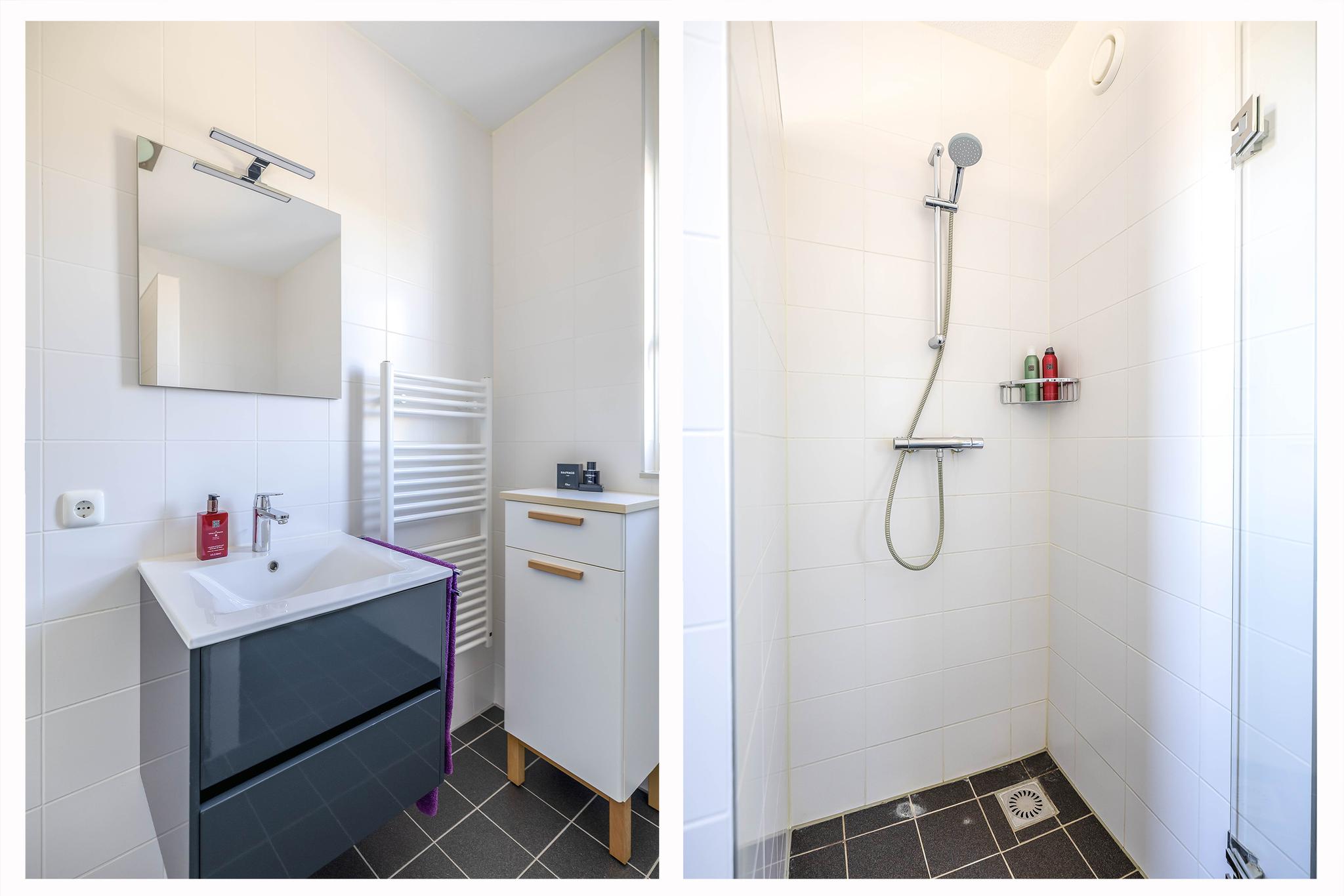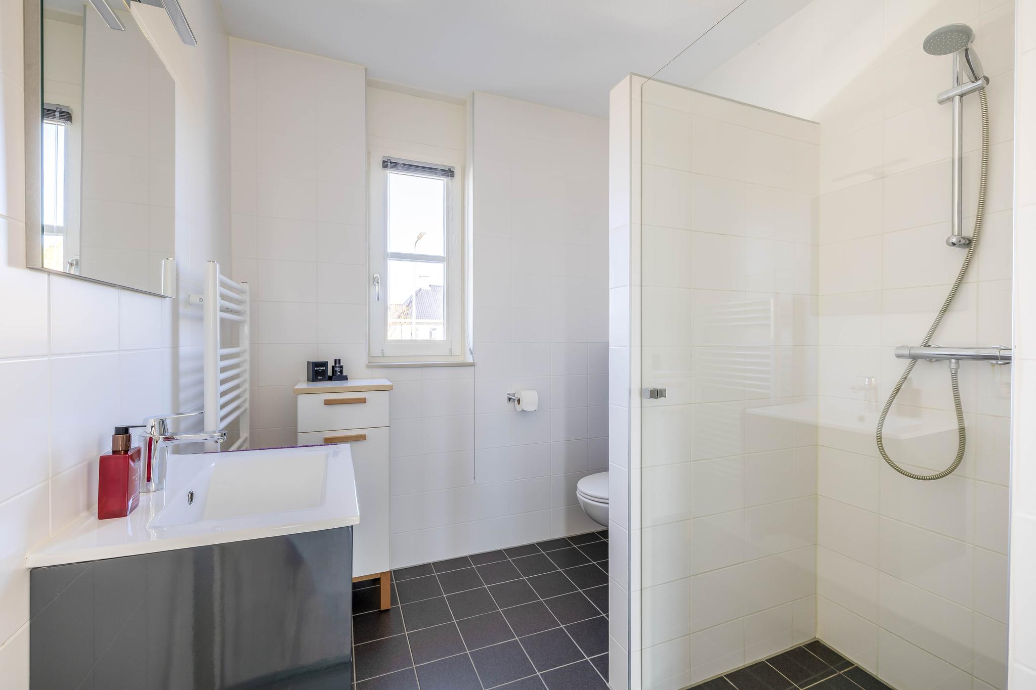 De overloop geeft toegang tot de drie slaapkamers, de badkamer en de trapopgang naar de tweede verdieping. Twee slaapkamers zijn voorzien van een laminaatvloer met vloerverwarming. De master bedroom is voorzien van vloerbedekking en een vaste kast. De ramen zorgen voor veel lichtinval. De geheel betegelde badkamer is voorzien van een inloopdouche, een wastafel met badmeubel en een toilet. De gehele verdieping is voorzien van vloerverwarming.