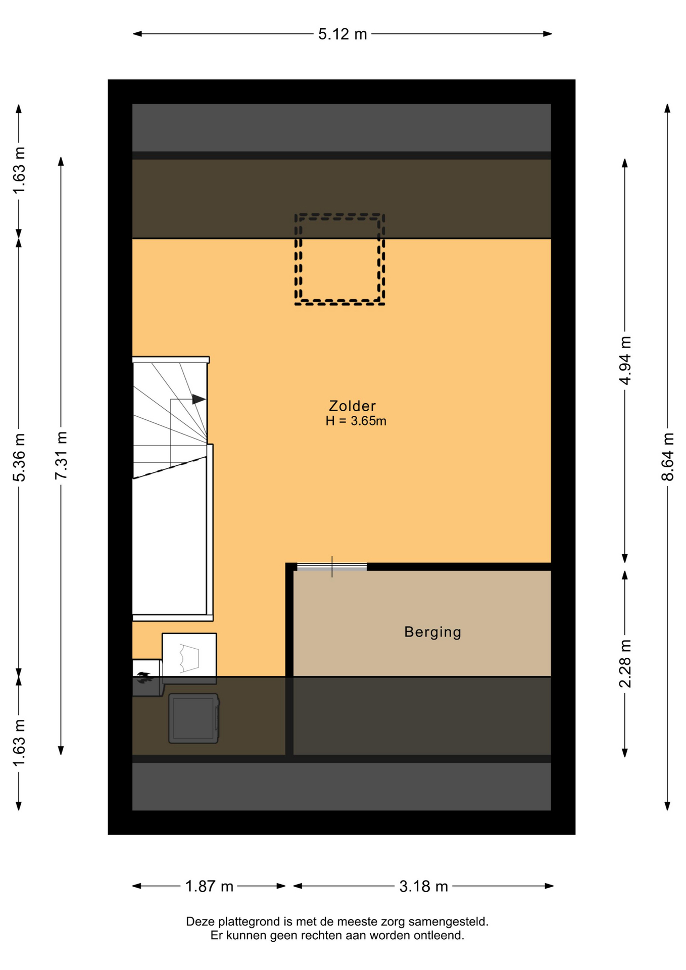 Via een vaste trap is de tweede verdieping bereikbaar. Op de ruime verdieping vindt u berging onder het schuine dak, een dakraam, de witgoedaansluitingen en de CV-ketel. De tweede verdieping is nu één open ruimte, maar zeer geschikt als bijvoorbeeld vierde slaapkamer.