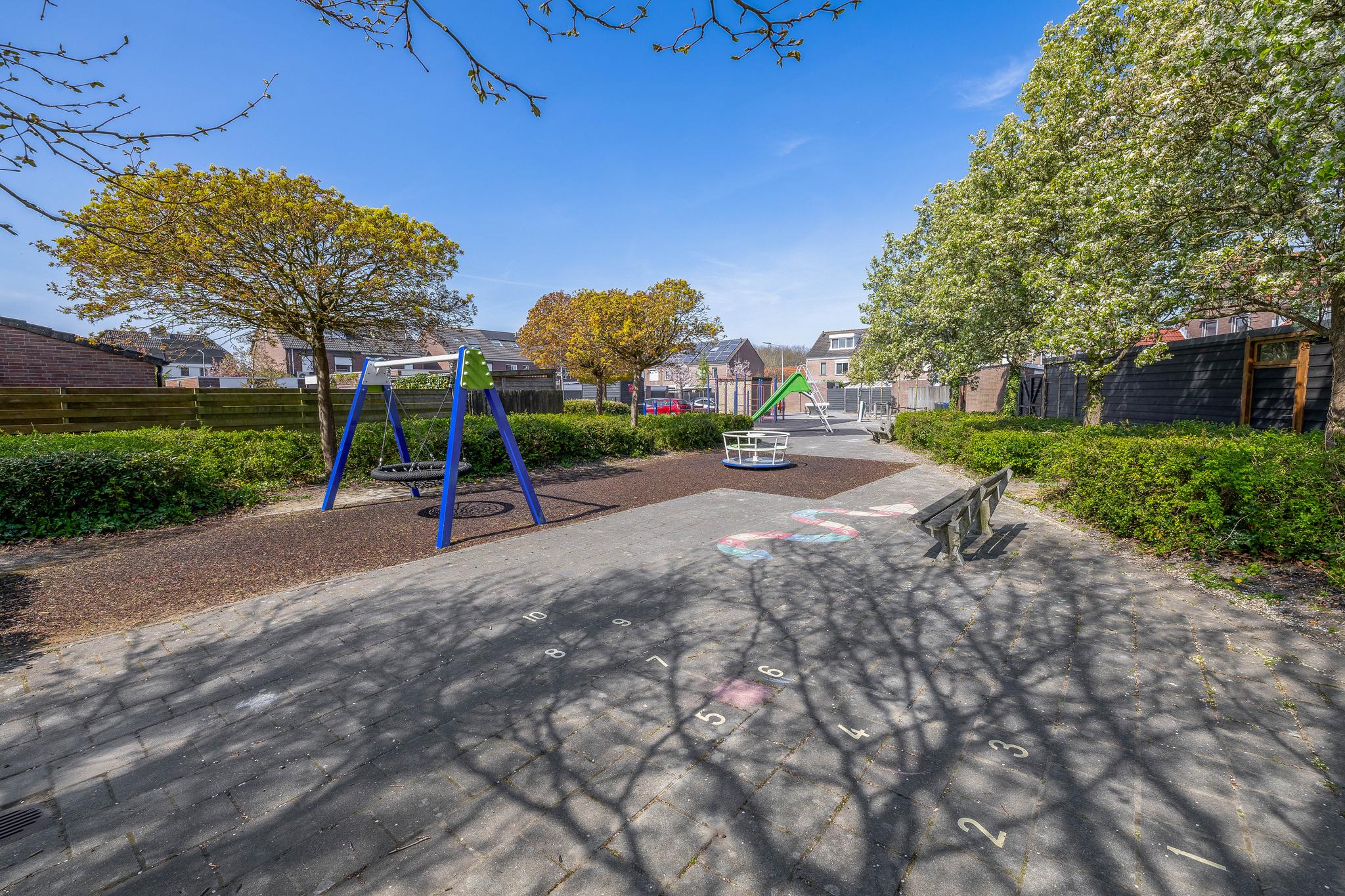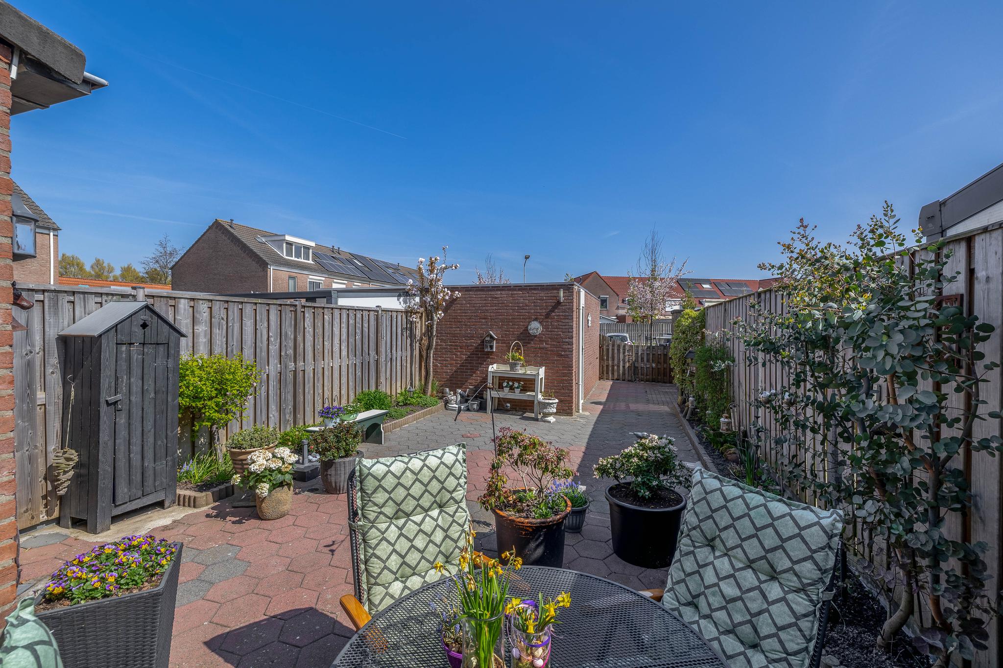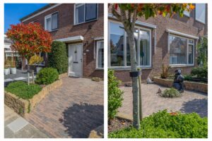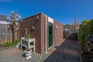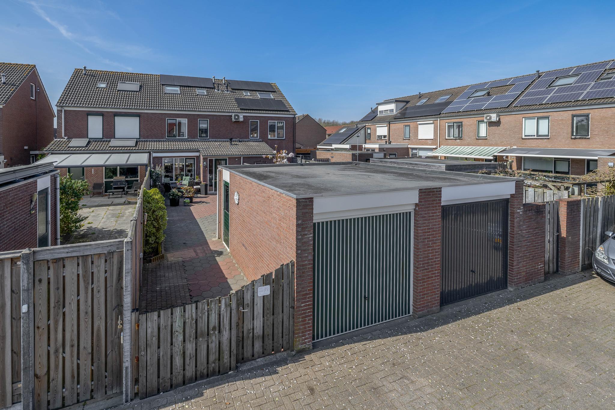 De voor- en achtertuin zijn netjes onderhouden, onderhoudsvriendelijk en voorzien van bestrating en groen. De achtertuin, gelegen op het oosten, geeft toegang tot de eigen garage, een openbare parkeerplaats en daarachter een speeltuintje voor de kinderen. De garage is vanuit de tuin te bereiken, maar ook vanaf de parkeerplaats middels een garagedeur.