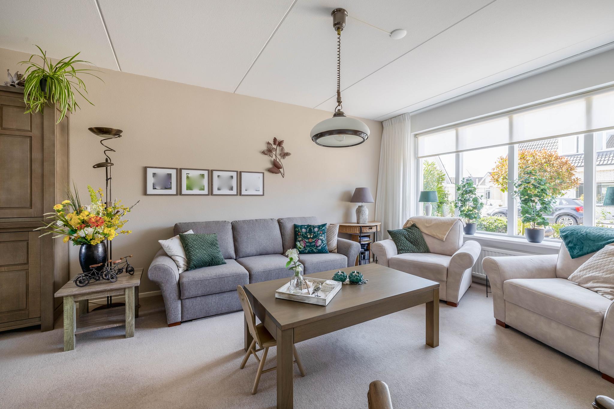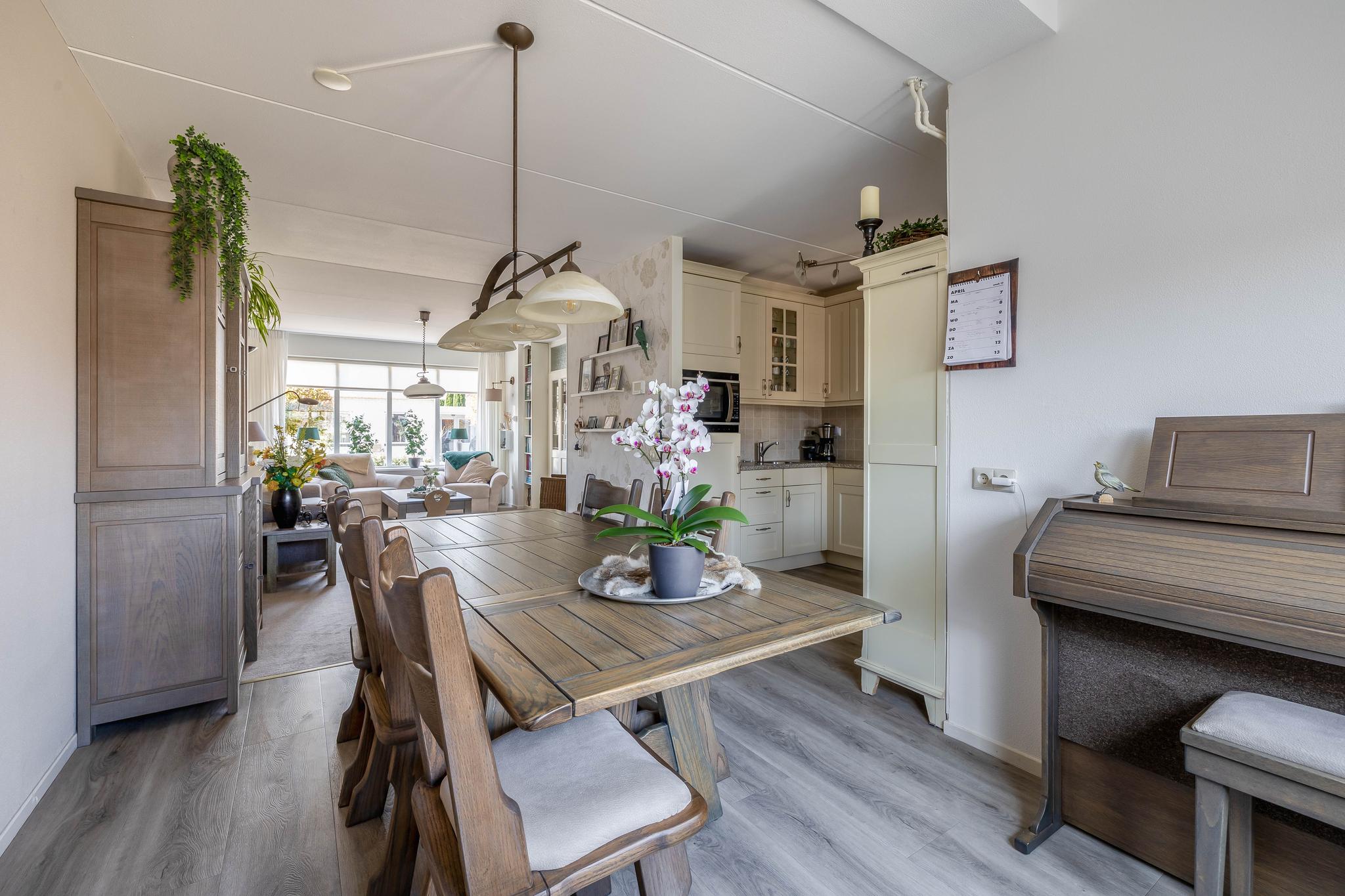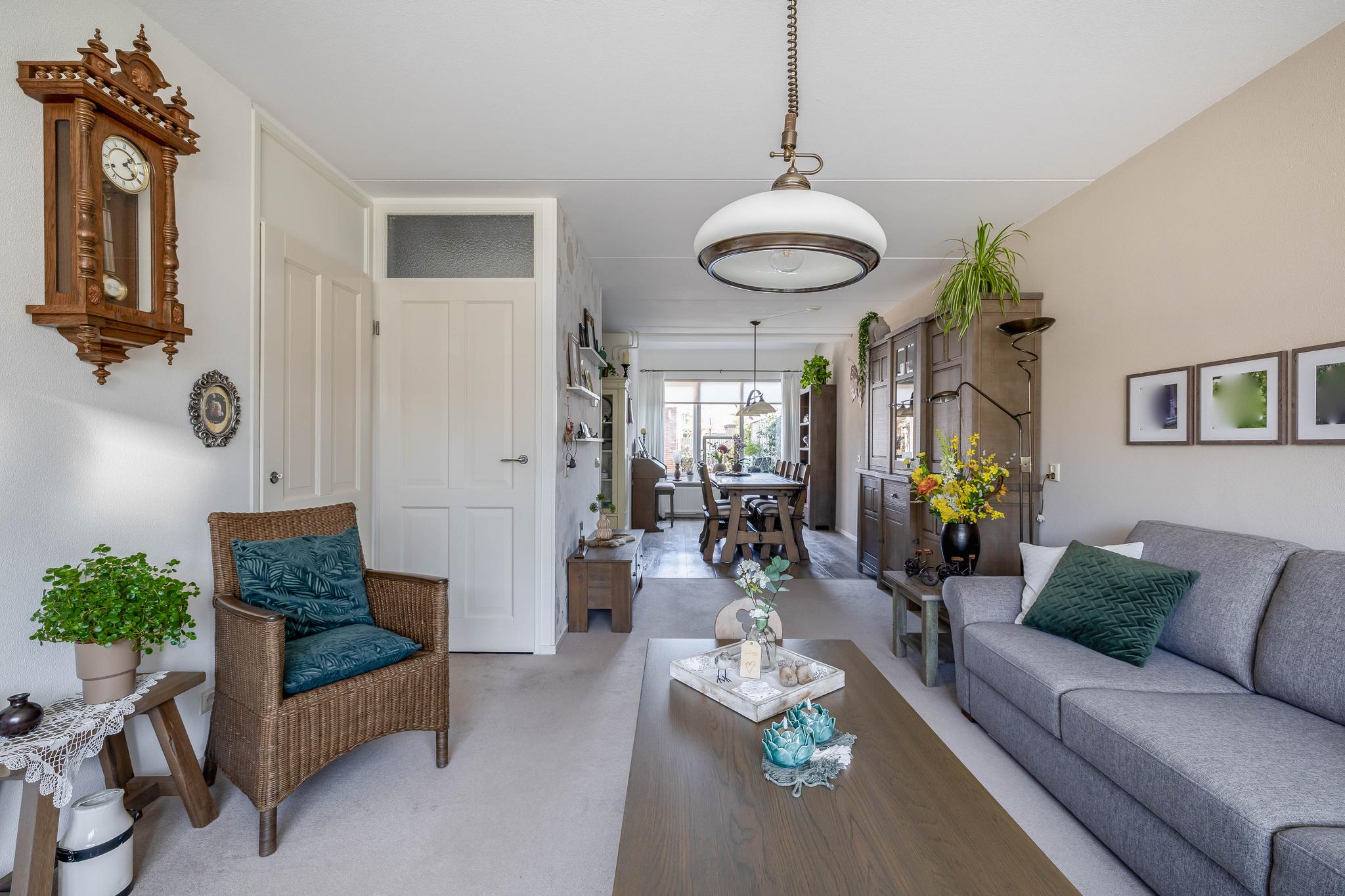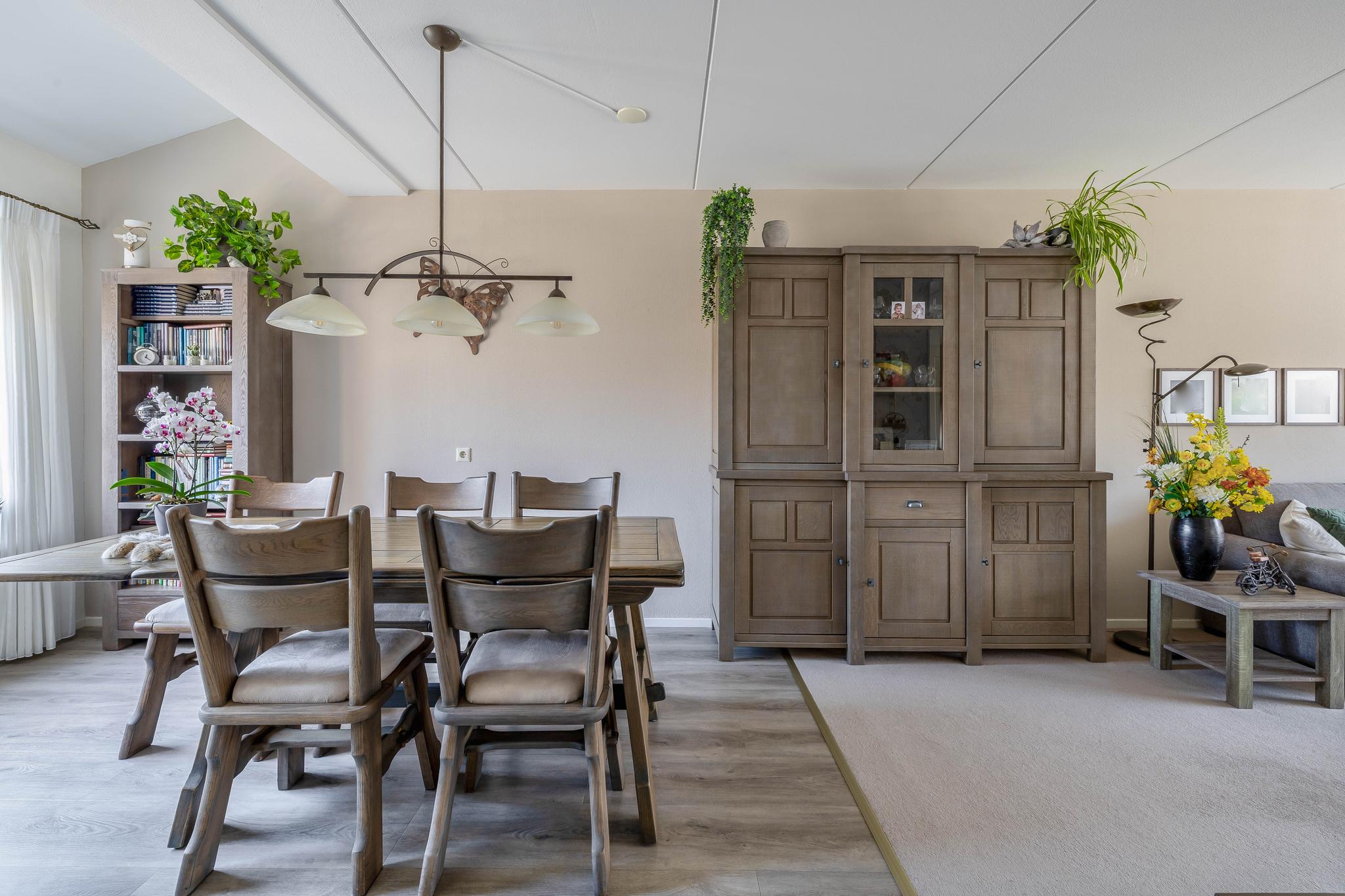 De entreehal, met meterkast en toilet, geeft toegang tot de woonkamer. Aan de voorzijde van de woning is het zitgedeelte, voorzien van vloerverwarming. De achterzijde kan worden gebruikt als eetkamer. De open keuken is voorzien van diverse apparatuur, zoals kookplaat, afzuigkap, koelkast, en vaatwasser. Vanuit de open keuken is de aan de achterzijde gelegen bijkeuken bereikbaar, welke ook toegang geeft tot de achtertuin. De schuifdeurkast in de bijkeuken geeft veel opbergruimte.