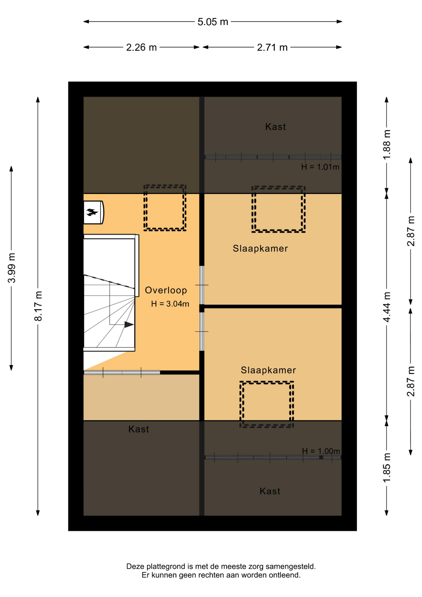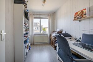 De overige twee slaapkamers bevinden zich op de tweede verdieping. De ruime overloop heeft nog een opbergkast en ook is hier de CV-combiketel geplaatst. Vanuit de slaapkamers is er nog opbergruimte achter schotten.
