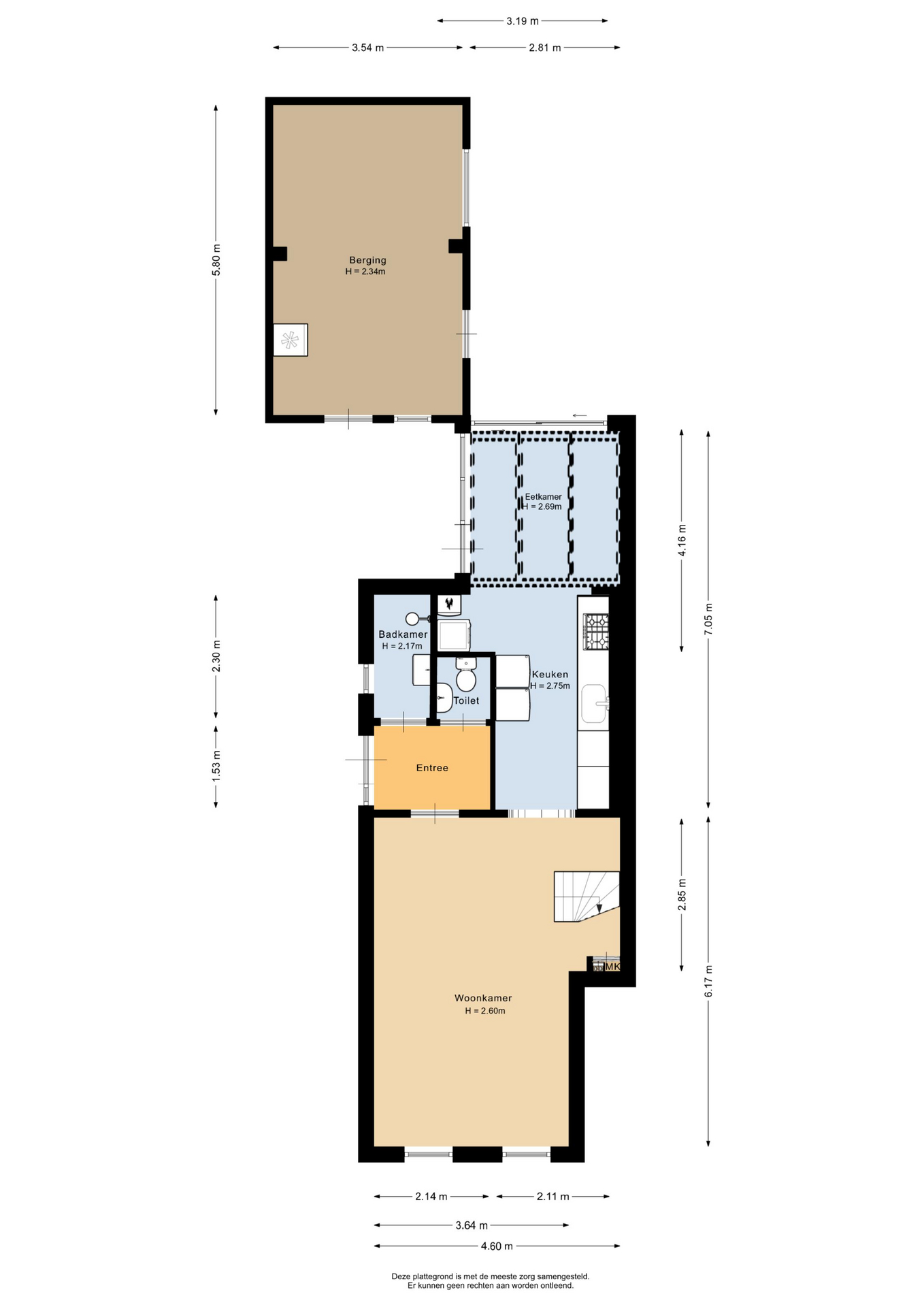 Vanuit de entreehal zijn de woonkamer, separaat toilet en badkamer bereikbaar. In de woonkamer, gelegen aan de voorzijde, valt het balkenplafond direct op welke zorgt voor een gezellige sfeer. Vanuit de woonkamer loop je de open keuken in. De keuken is voorzien van diverse apparatuur, zoals kookplaat, afzuigkap, combi-oven en vaatwasser. Aansluitend aan de keuken is de eetkamer gerealiseerd in de serre. Deze ruimte is door de grote raampartijen verrassend licht en heeft uitzicht op de achtertuin. De badkamer is geheel betegeld en beschikt over een inloopdouche en wastafelmeubel.