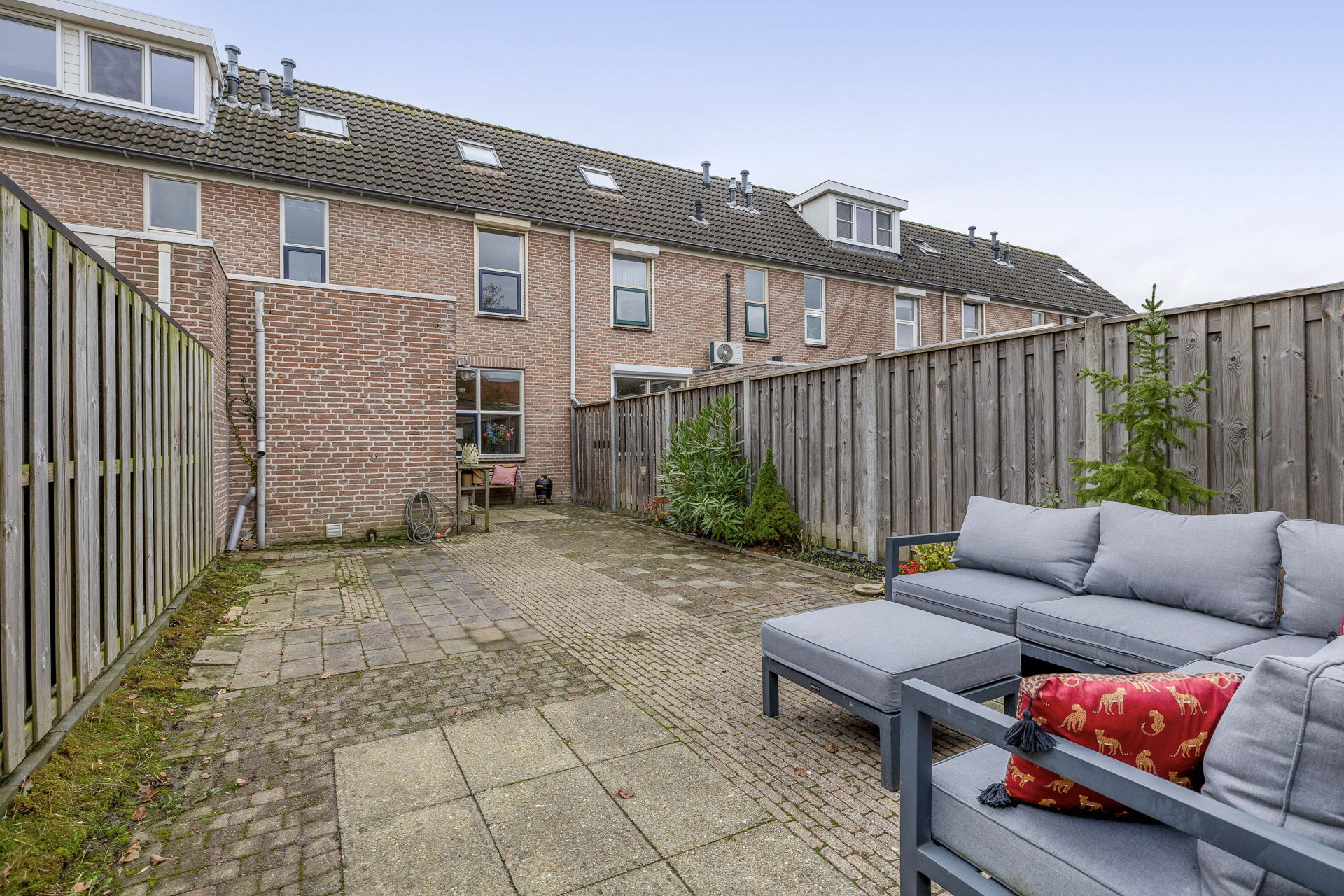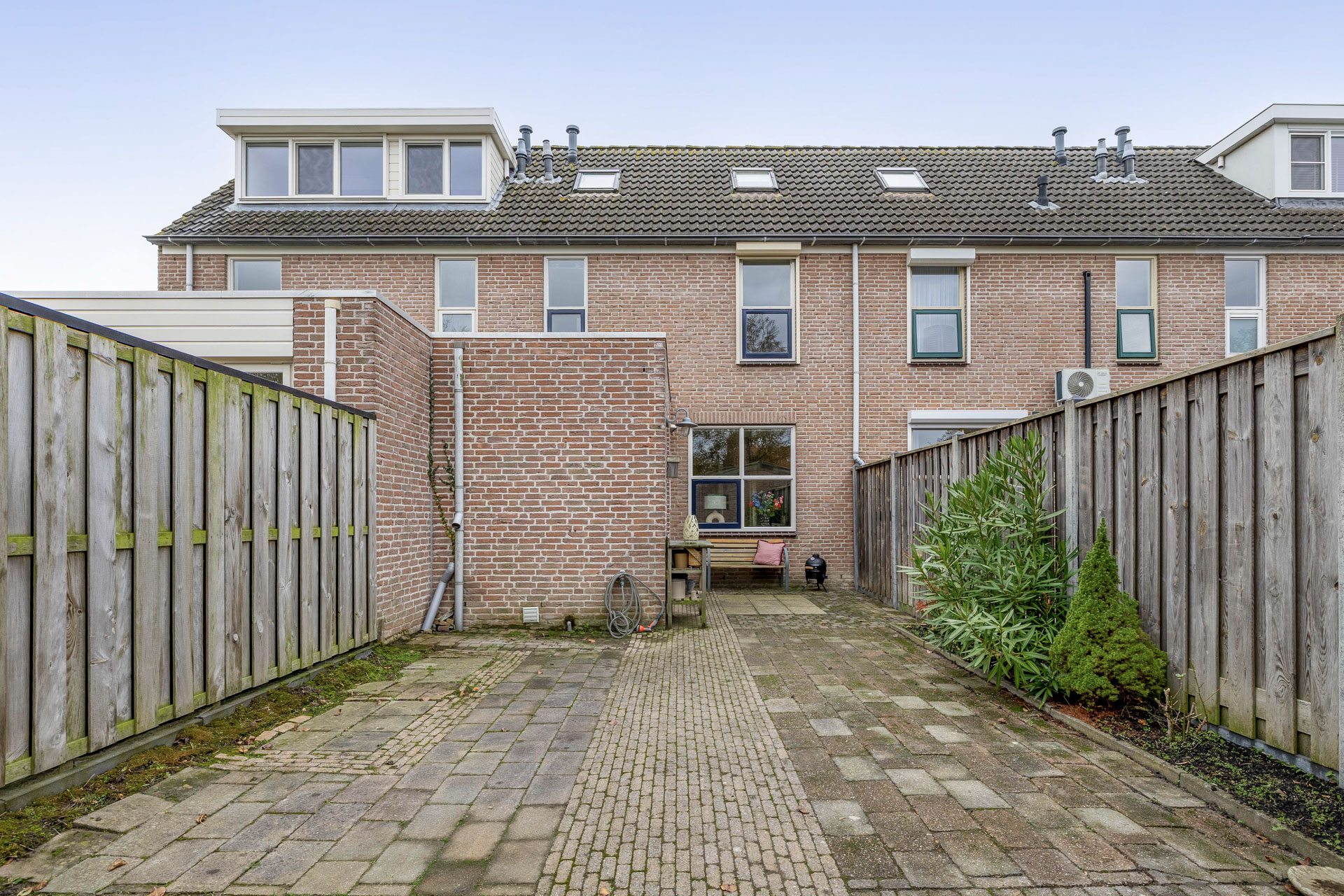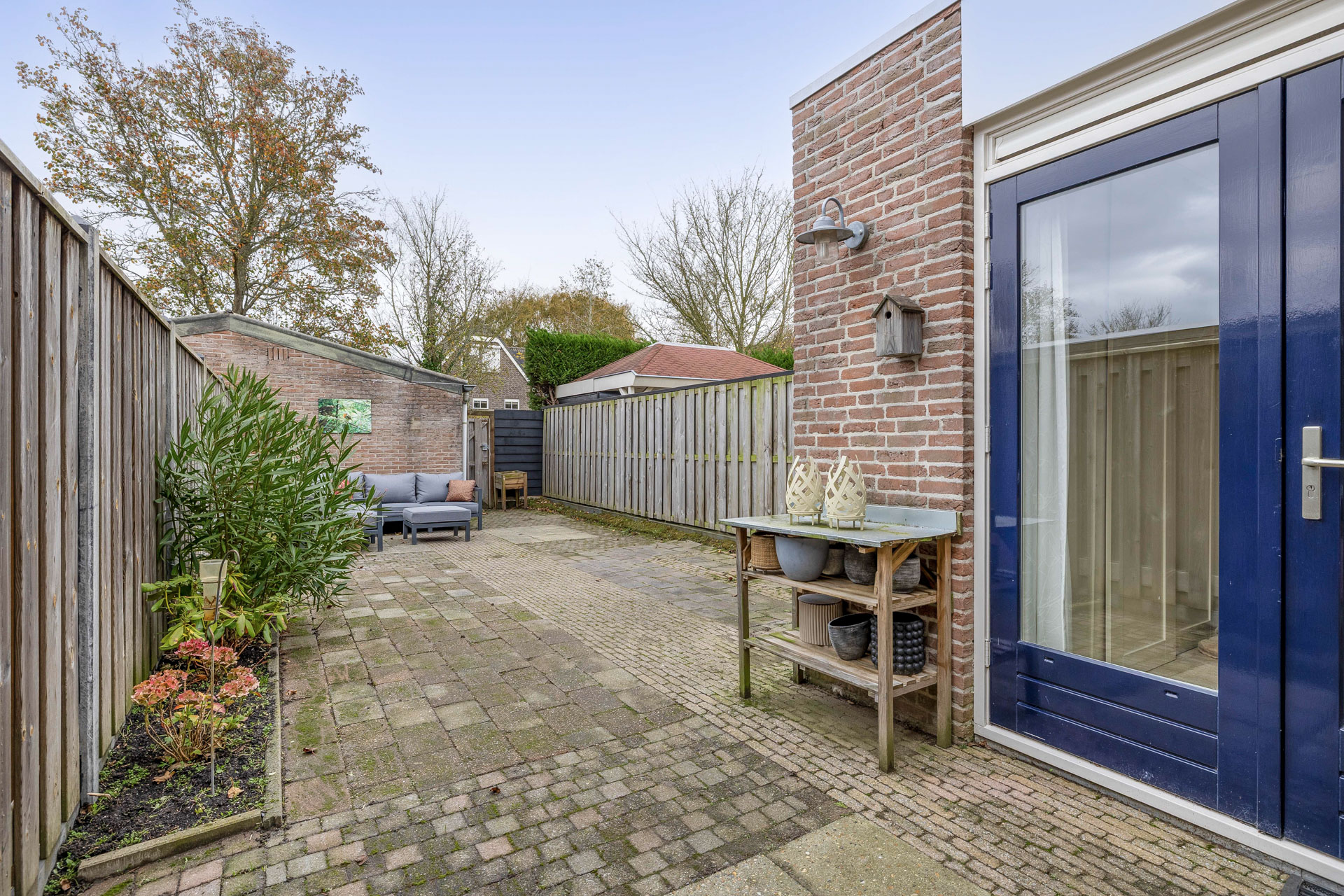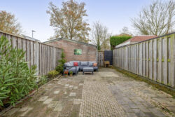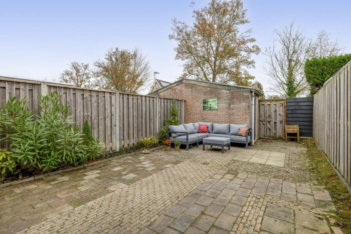 De achtertuin is gelegen op het oosten en vormt een basis voor jouw eigen woonwensen. Hier start je de dag met de frisse ochtendzon en geniet je later van een aangename sfeer. Achterin staat een praktische stenen berging, perfect voor fietsen en tuingereedschap, en dankzij de achterom is de tuin altijd gemakkelijk bereikbaar.