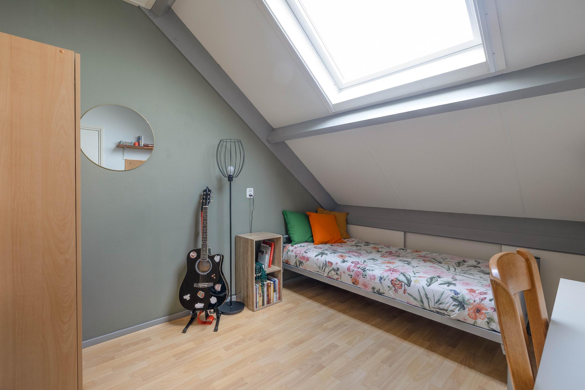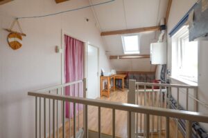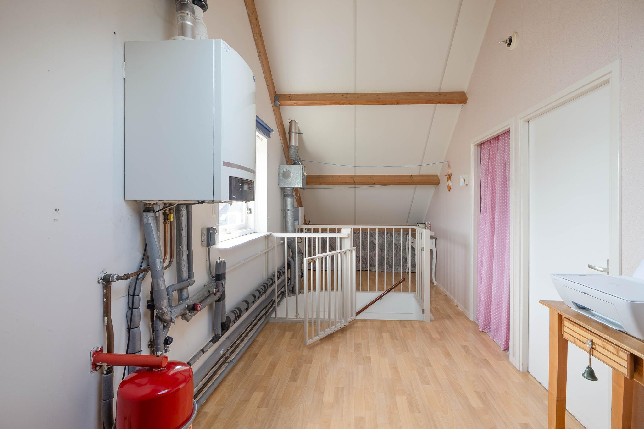De tweede verdieping is bereikbaar middels een vaste trap. De ruime overloop, met CV-ketel en dakraam, geeft toegang tot een berging en de vierde slaapkamer. De slaapkamer is voorzien van houtlook zeil, een dakraam en berging onder het schuine dak. Van de berging kan een vijfde slaapkamer gecreëerd worden.