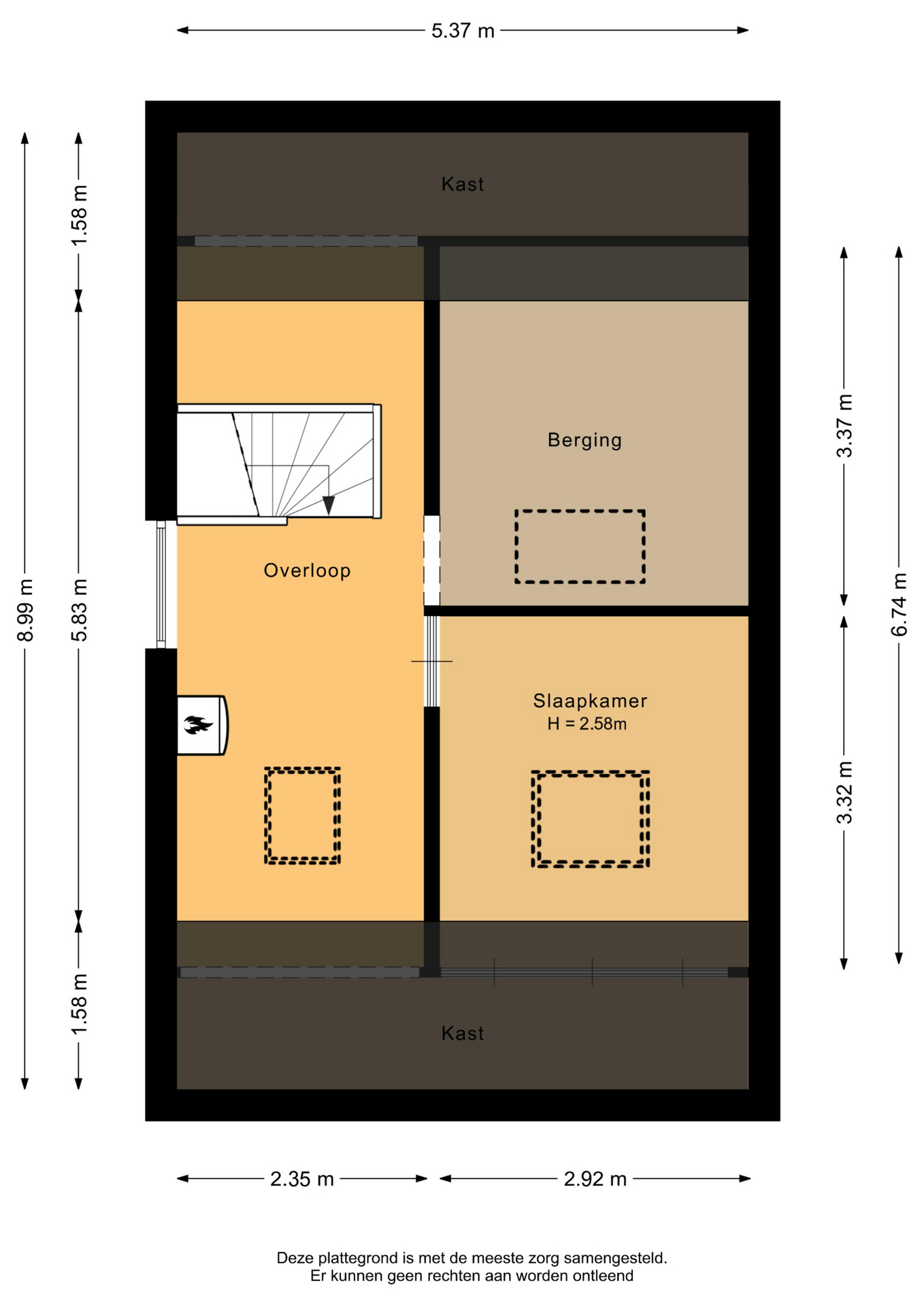 – Van de berging op de tweede verdieping kan een vijfde slaapkamer gecreëerd worden
