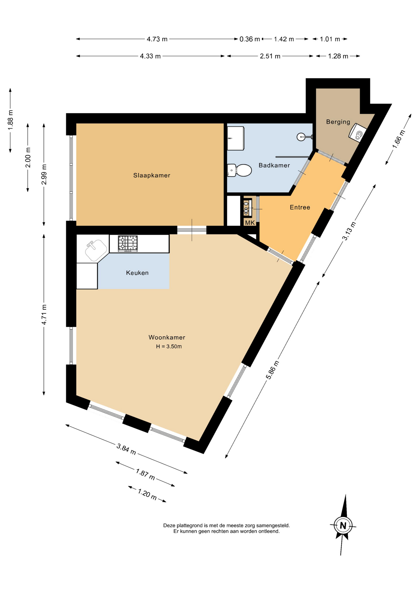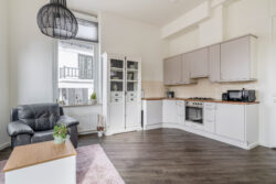 Bij binnenkomst ervaar je direct een open en toegankelijke sfeer. De hal geeft directe toegang tot de woonkamer en open keuken. De keuken is voorzien van diverse inbouwapparatuur en ingericht als het centrale ontmoetingspunt van de woning, waar koken en samenzijn moeiteloos samenkomen. Vanuit de woonkamer geniet u van een levendig uitzicht op een karakteristieke straat in het centrum, wat zorgt voor een aantrekkelijke dynamiek en authentieke sfeer. De ruime slaapkamer staat garant voor rust en comfort, beschikt over praktische opbergmogelijkheden en is uitgerust met airconditioning voor een aangenaam binnenklimaat. De badkamer is volledig afgewerkt en voorzien van een inloopdouche, designradiator, toilet en wastafel, waarmee functionaliteit en stijl harmonieus samenkomen. Daarnaast beschikt het appartement over een praktische bergruimte met opstelling van de Cv-installatie en extra opslagmogelijkheden.