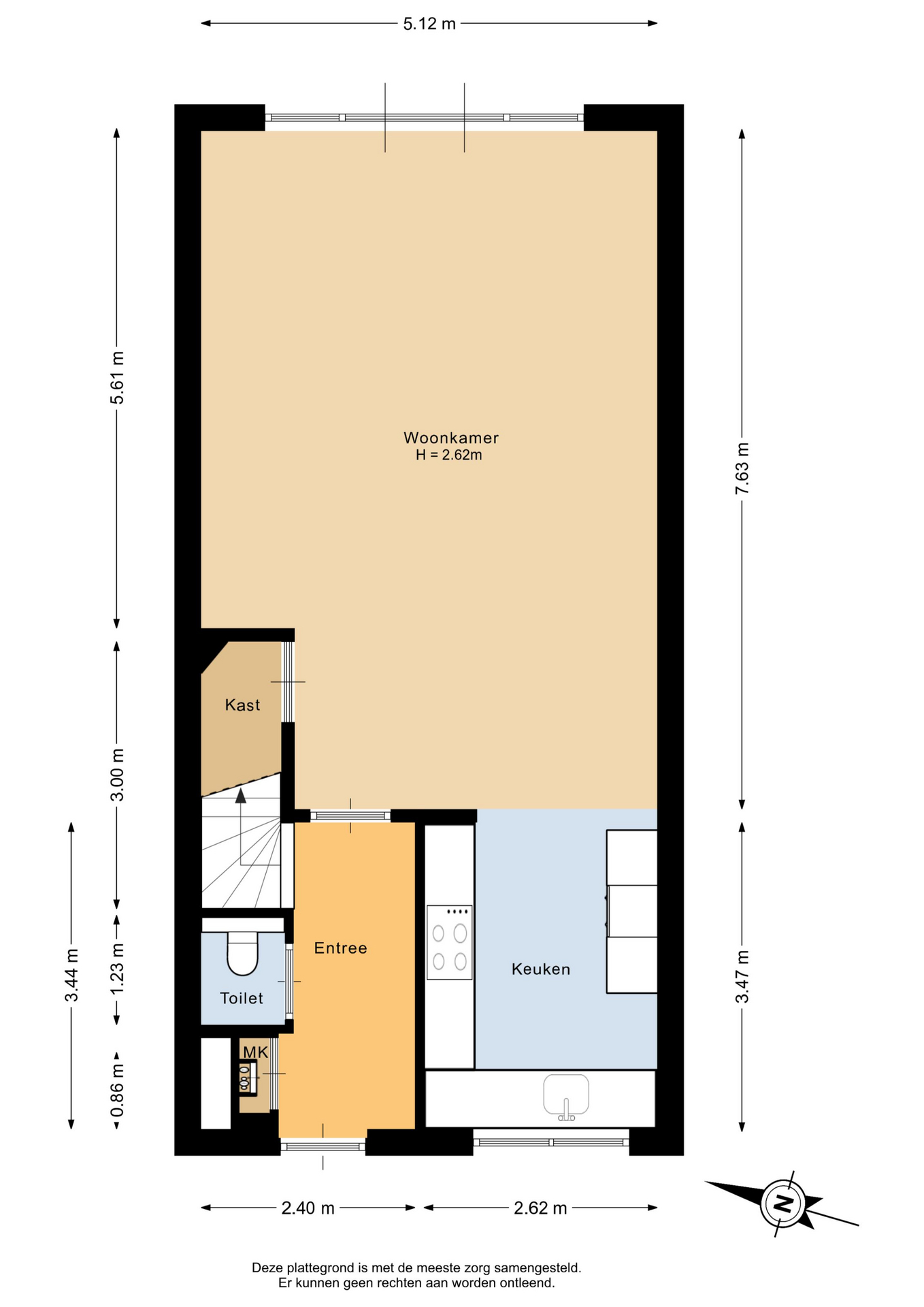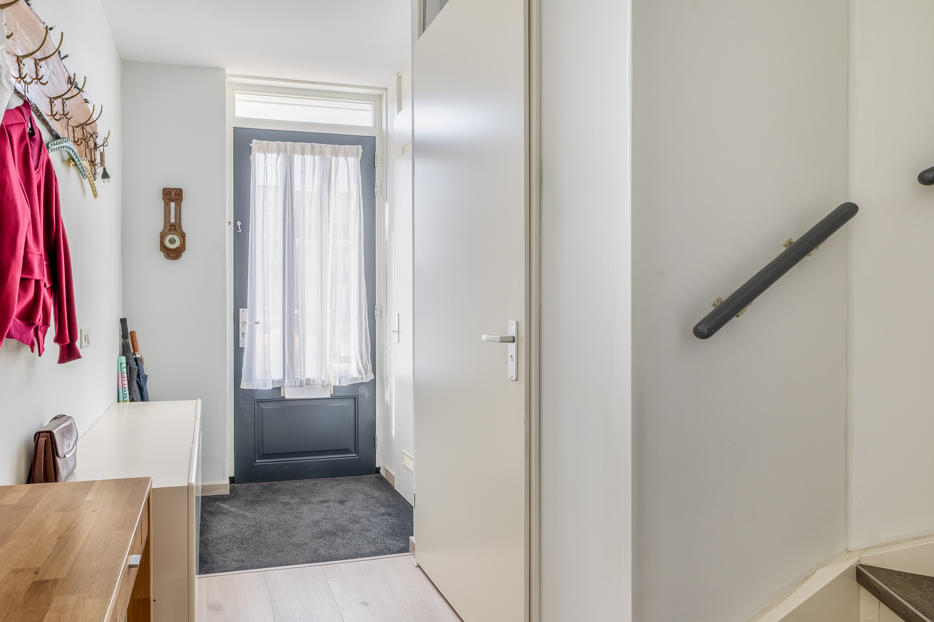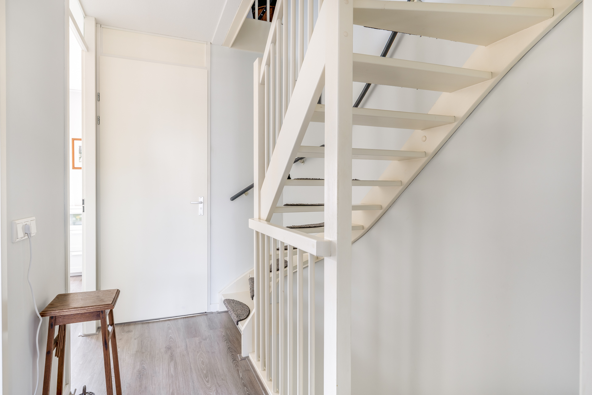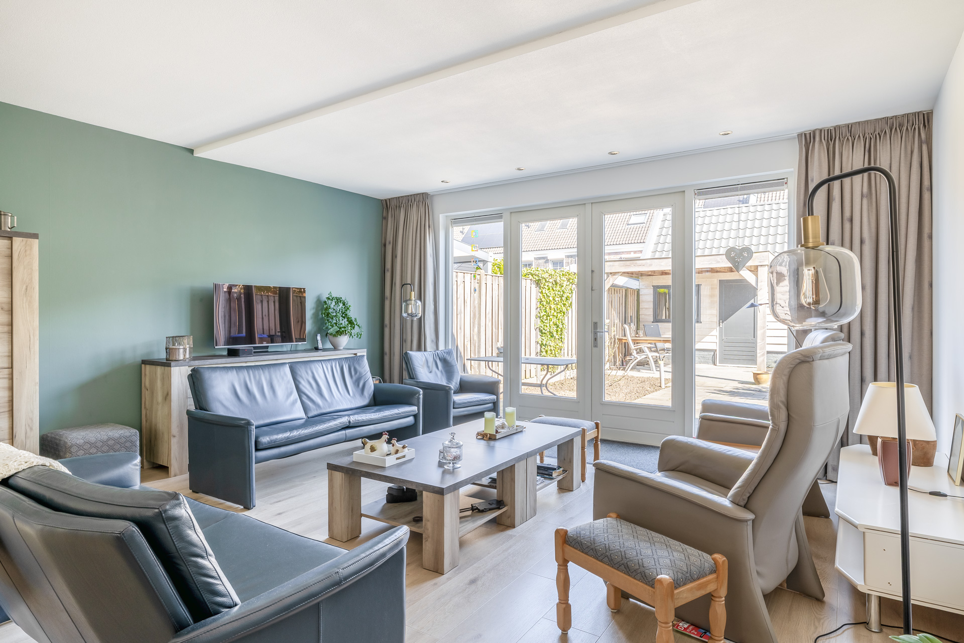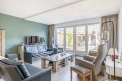 Via de entree met meterkast en toilet betreedt u de woning. De lichte woonkamer vormt het hart van het huis. Dankzij de openslaande deuren naar de tuin geniet u hier van een prachtige lichtinval en een fijne verbinding met buiten.