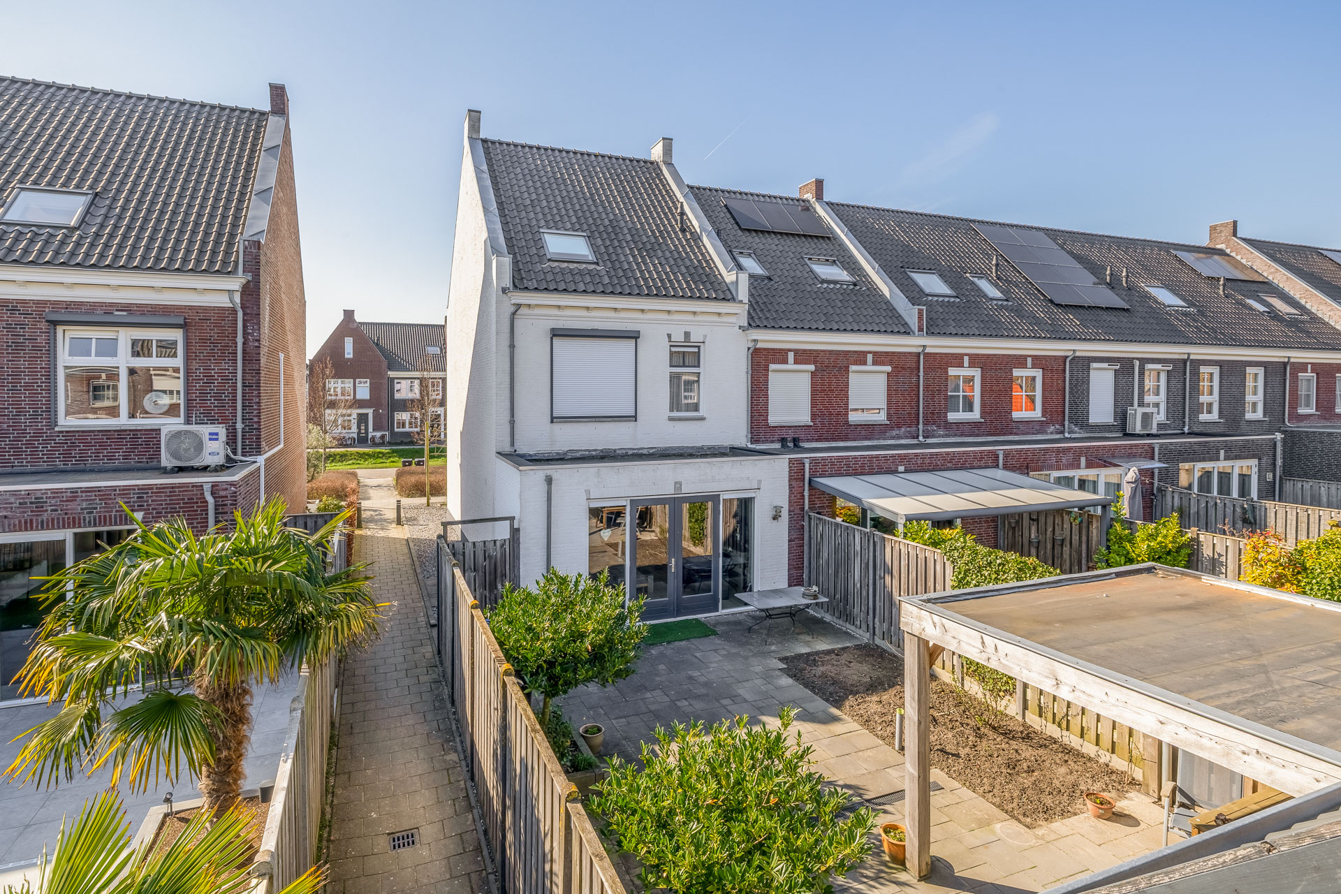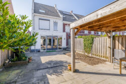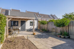 In de verzorgde aangelegde achtertuin, gesitueerd op het oosten, ontvouwt zich een sfeervolle buitenruimte waar rust en comfort samenkomen. Onder de charmante overkapping ontstaat een uitnodigende plek om te ontspannen en te genieten van lange avonden. Achter in de tuin bevindt zich een praktische berging, perfect voor het netjes en efficiënt opbergen van uw spullen.