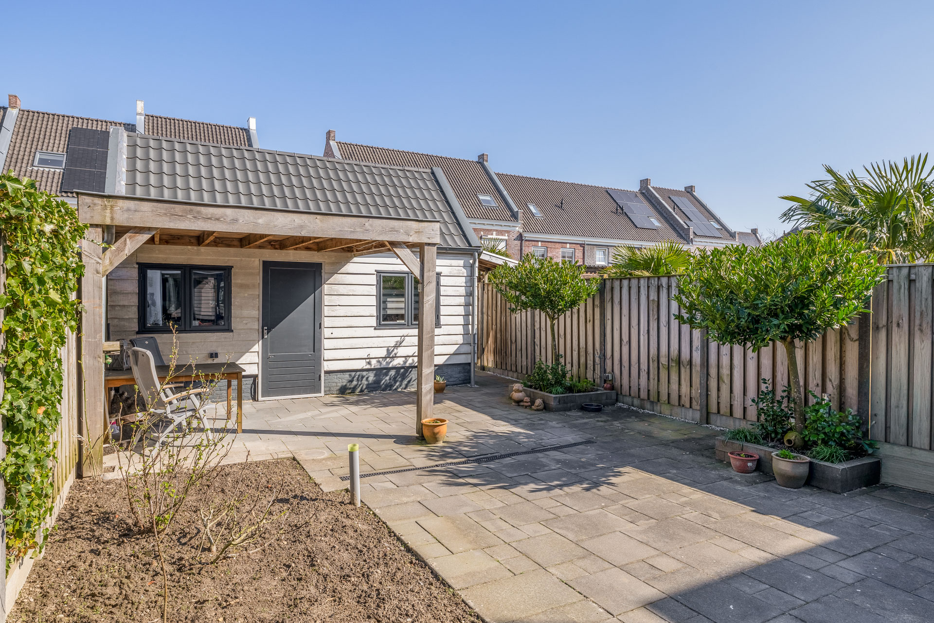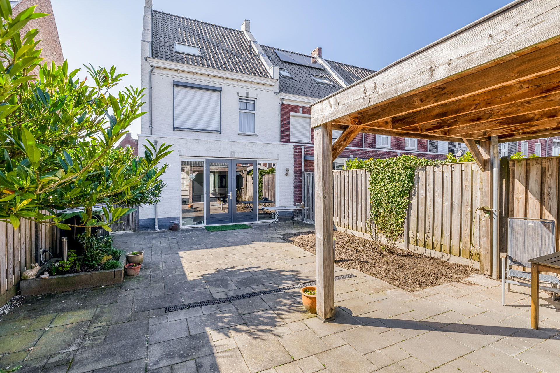 – Ruime tuin met overkapping