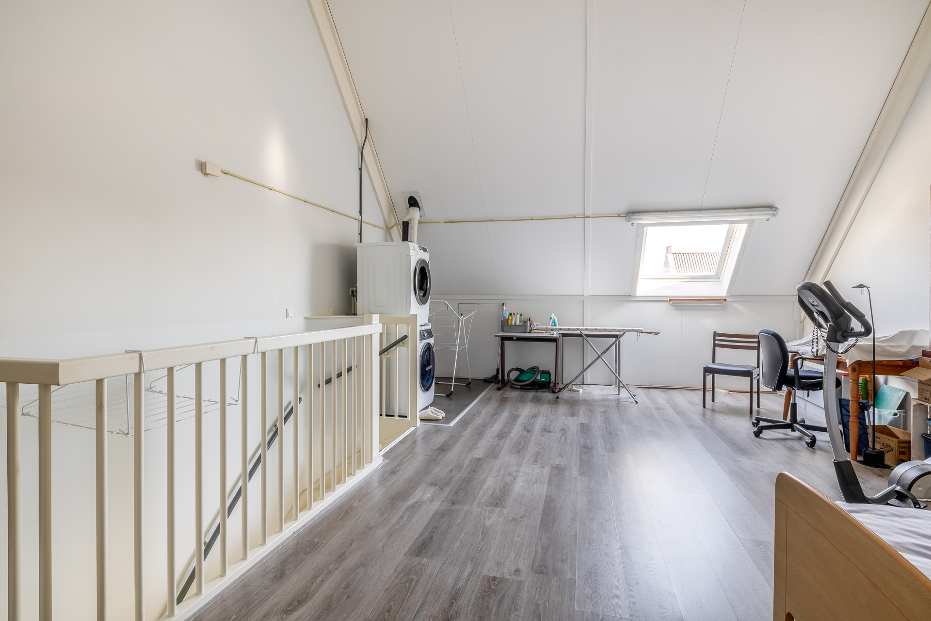 Via een vaste trap bereikt u de tweede verdieping. Hier bevinden zich de aansluitingen voor witgoed en de CV-ketel. De ruimte biedt volop mogelijkheden, zoals het realiseren van een vierde slaapkamer of een werkruimte. Dankzij het aanwezige dakraam is er een prettige lichtinval.