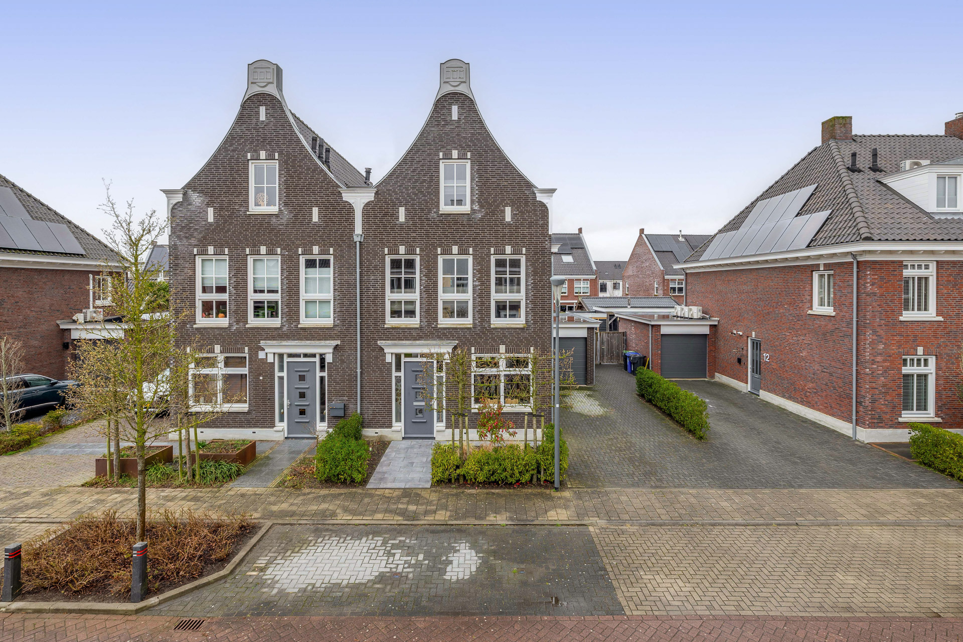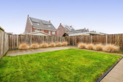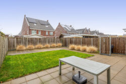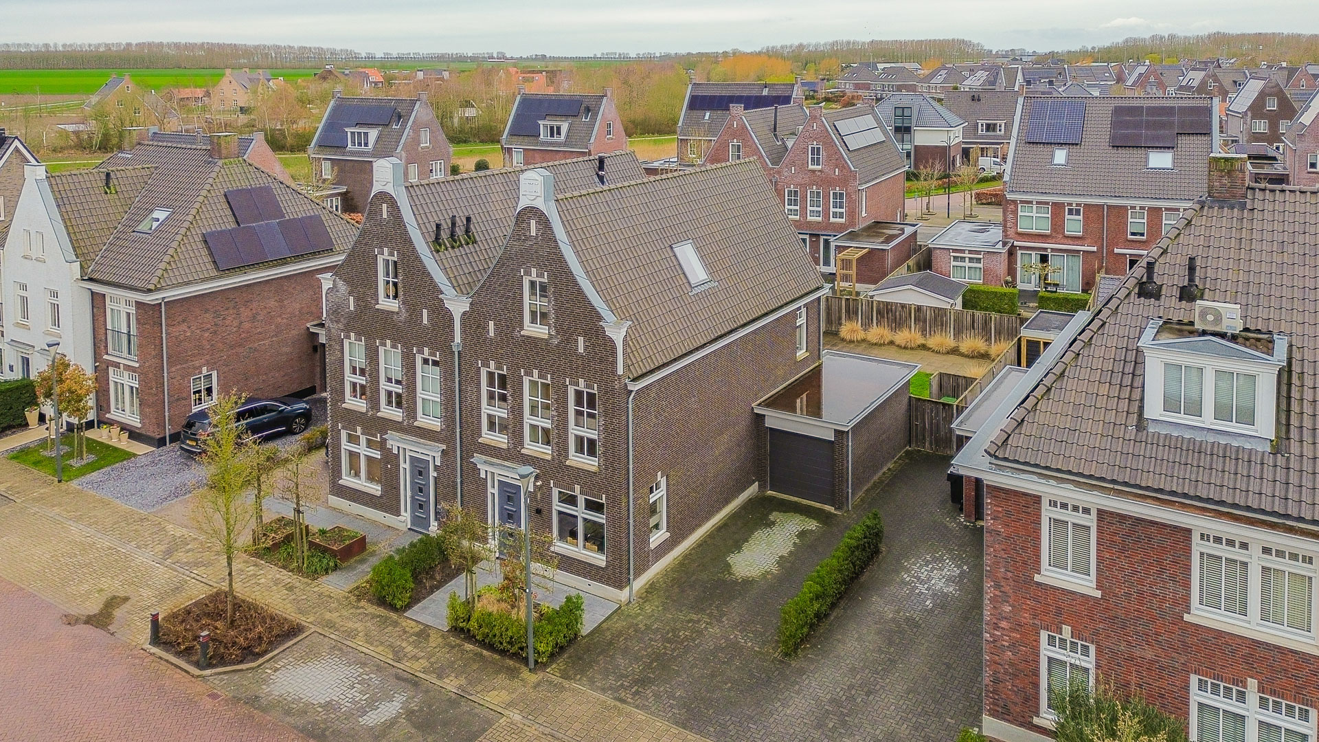Aan de voorzijde biedt de ruime oprit plaats voor eigen auto’s, met daarnaast de mogelijkheid om een auto veilig en droog in de garage te parkeren. De achtertuin, gunstig gelegen op het westen, vormt een heerlijke plek om te ontspannen in de middag- en avondzon. De onderhoudsvriendelijke aanleg met siergrassen, gazon en bestrating zorgt voor een verzorgde uitstraling.