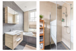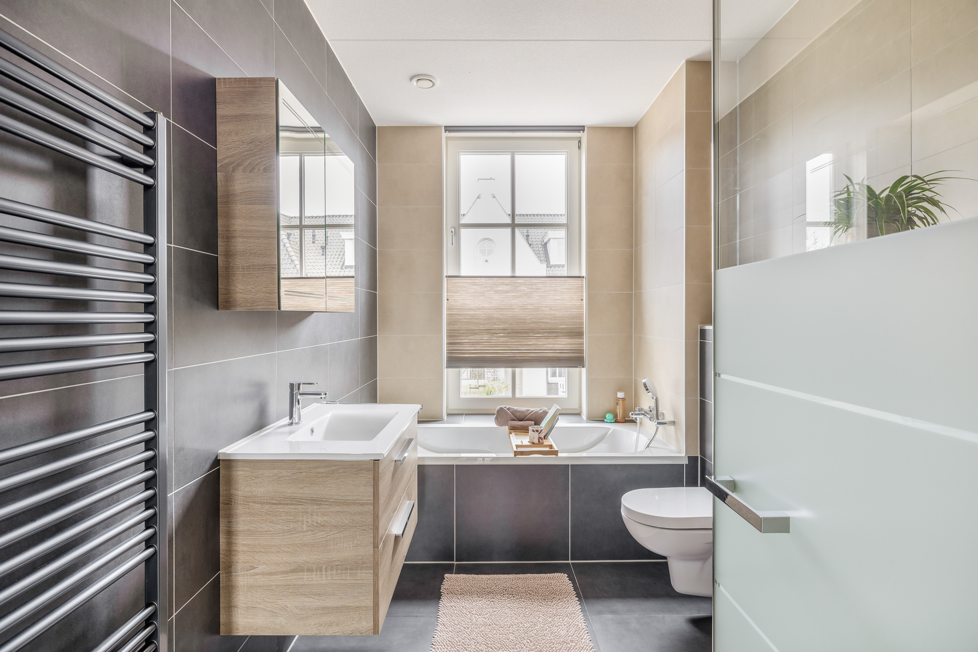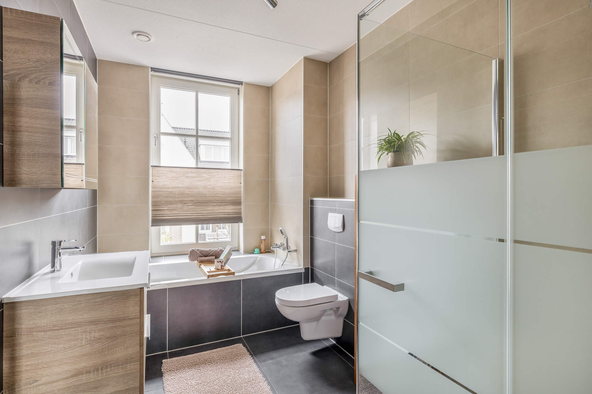De eerste verdieping ademt ruimte en rust. Drie lichte slaapkamers bieden ieder hun eigen sfeer en mogelijkheden. De stijlvolle badkamer is tot in detail afgewerkt en straalt luxe uit, voorzien van een ligbad, inloopdouche, wastafelmeubel en toilet. Ook hier geniet je van het comfort van vloerverwarming, wat bijdraagt aan een verfijnde woonbeleving.