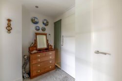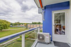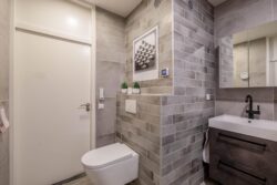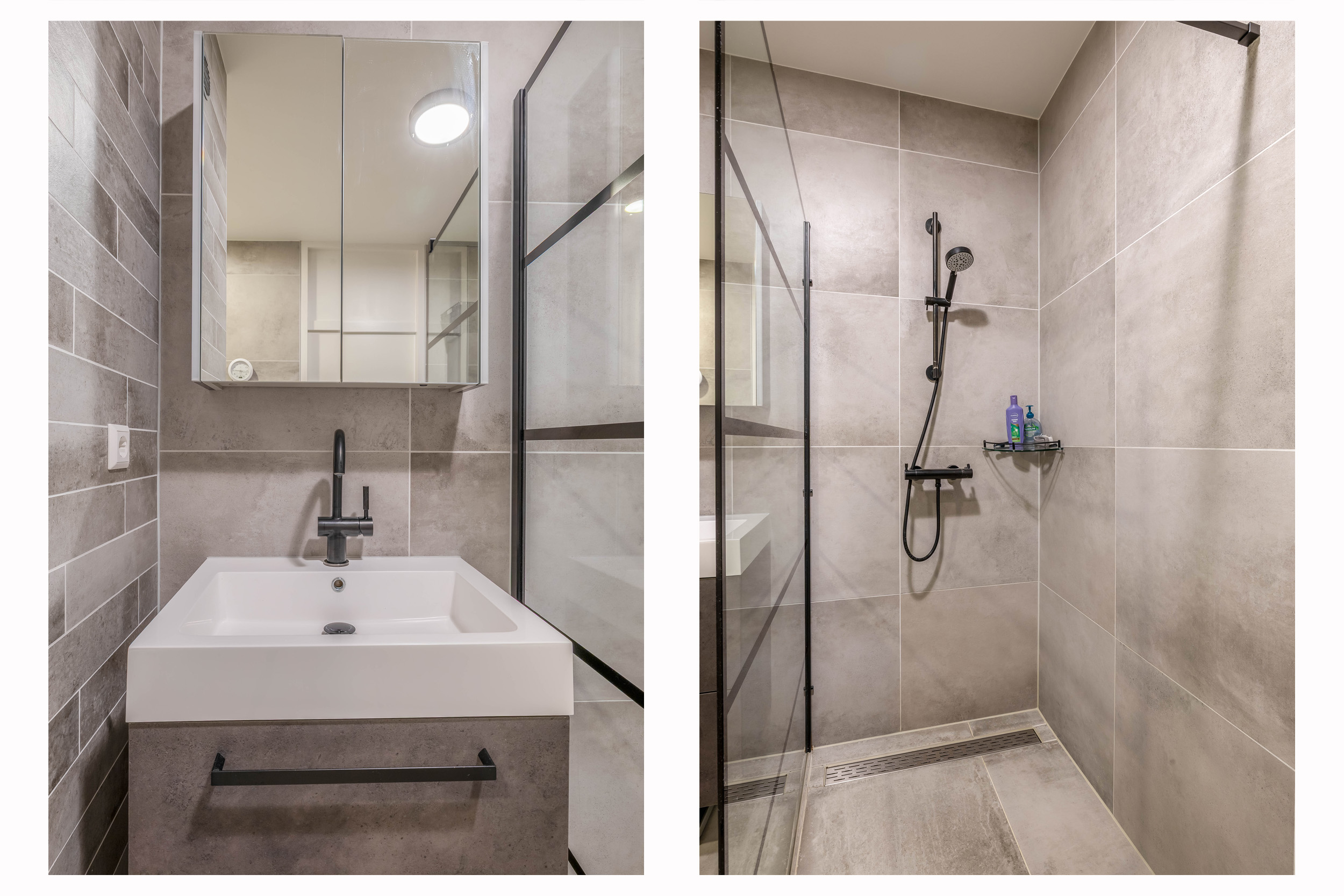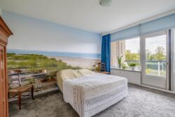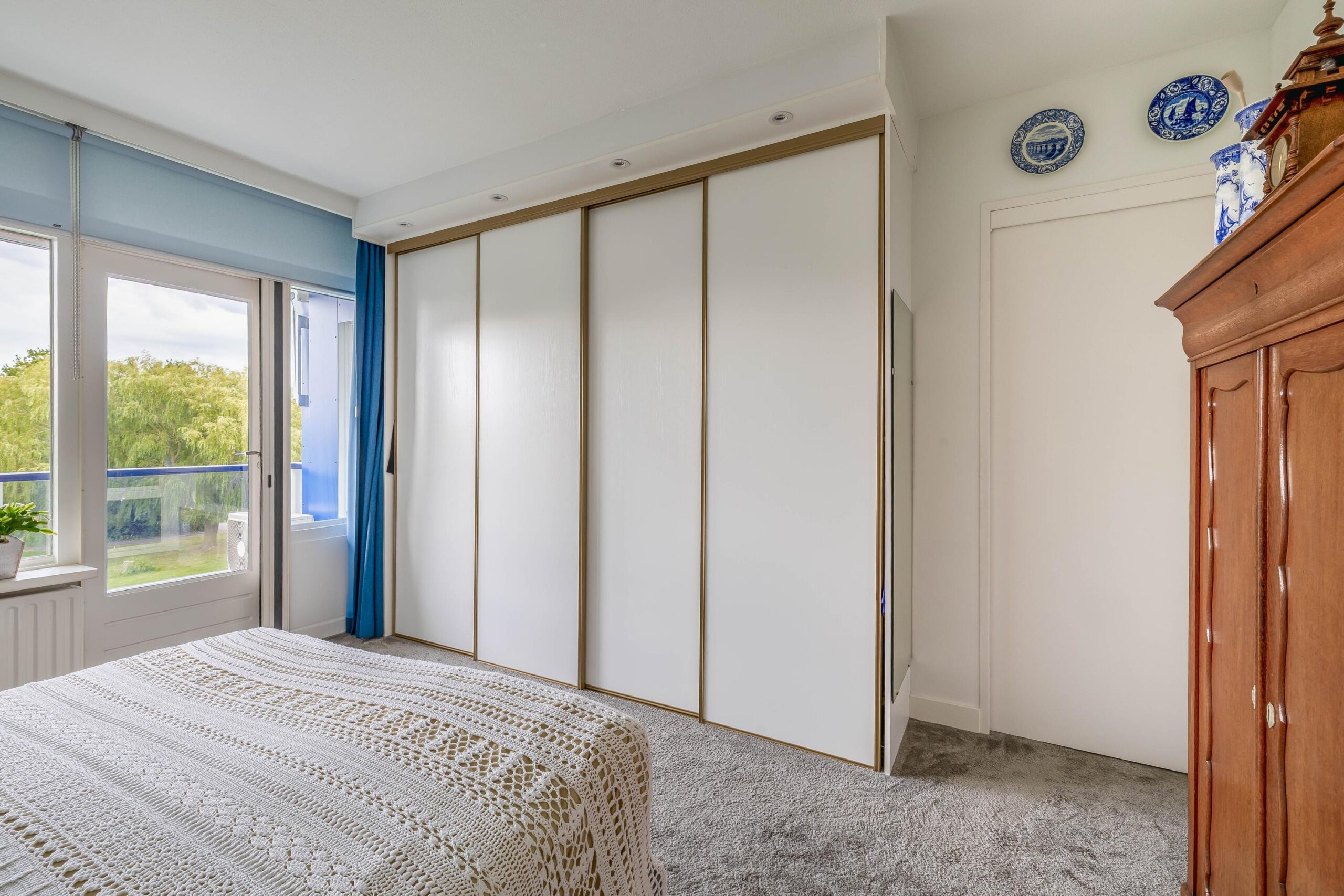 Grenzend aan de woonkamer vindt u de slaapkamer. Deze ruimte is voorzien van een praktische inbouwkast. Ook vanuit hier heeft u toegang tot het balkon, zodat u zelfs vanuit de slaapkamer de frisse ochtendlucht kunt ervaren. De slaapkamer leidt naar de badkamer, die strak maar sfeervol is ingericht. Met een comfortabele inloopdouche, een modern wastafelmeubel en een douche-toilet met droogvoorziening is dit een ruimte die zowel praktisch als stijlvol aanvoelt. Ook is de badkamer is voorzien van vloerverwarming.