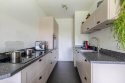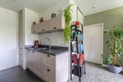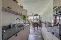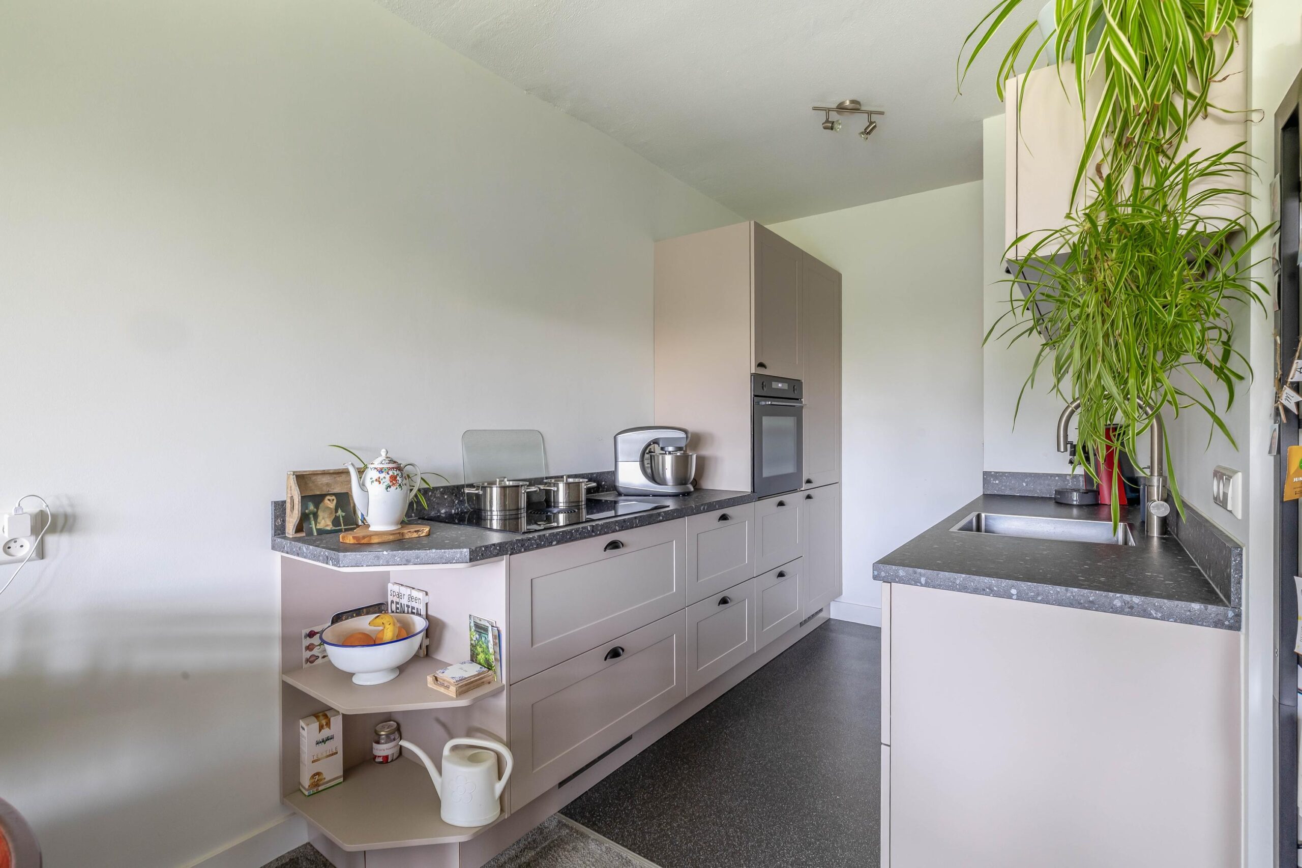 Via de entreehal, uitgerust met intercom, stapt u binnen in een lichte en uitnodigende woonkamer met open keuken. De grote ramen bieden een prachtig uitzicht op tuin. Vanuit de woonkamer loopt u zo het balkon op – een heerlijke plek om in de ochtendzon te genieten van een kop koffie of een goed boek. De open keuken is modern en compleet ingericht met alles wat u nodig heeft: een kookplaat met geïntegreerd afzuigsysteem, een combi-oven, koelkast, vriezer, vaatwasser én een Quooker voor direct kokend water.