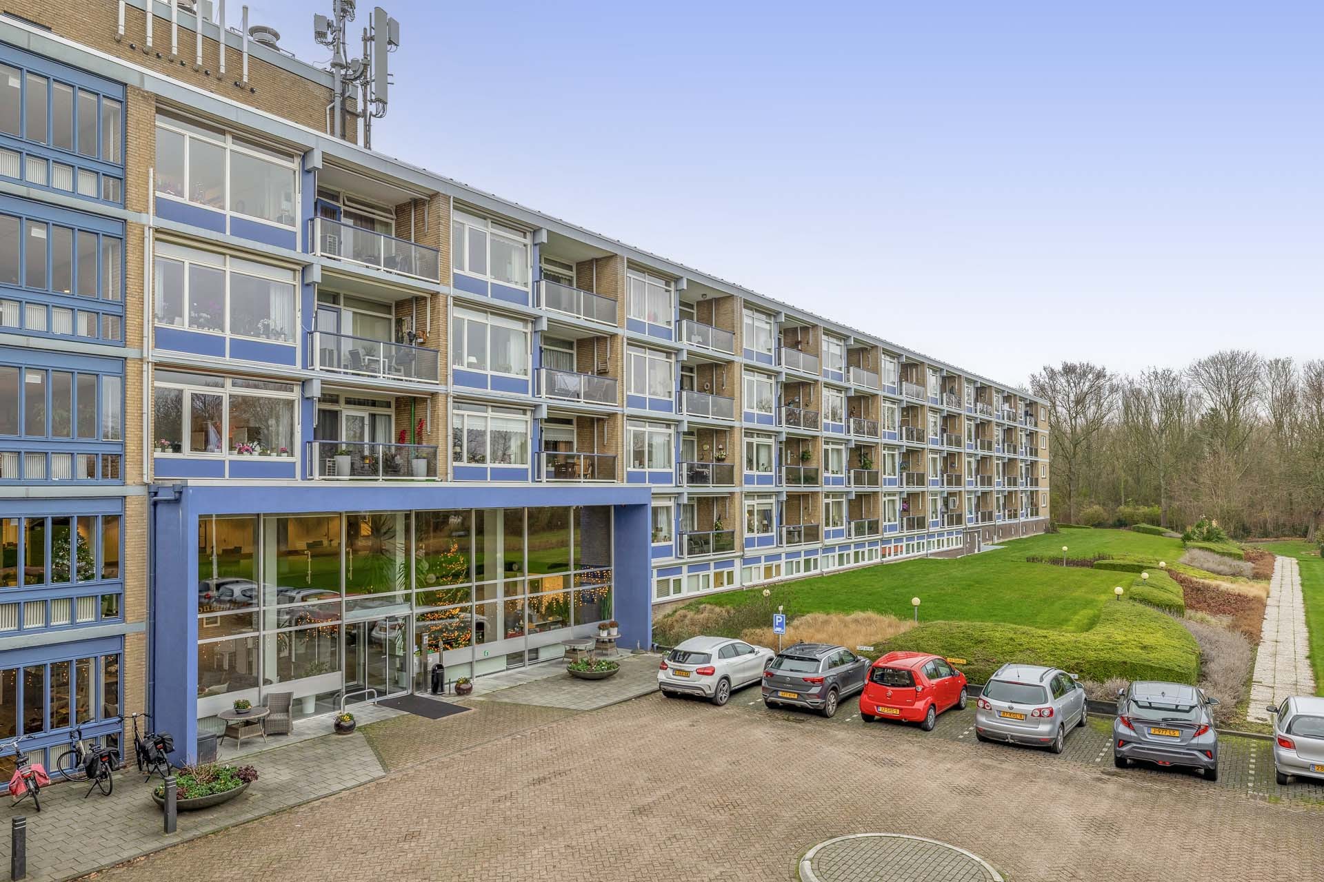 Wenst u volledig gelijkvloers te wonen? Veilig en vertrouwd, met behoud van uw zelfstandigheid? Dit appartement op de vierde verdieping van serviceflat Vroonlande biedt precies dat. Vanaf het balkon kijkt u uit over de fraai aangelegde groene tuin, een rustgevende plek om dagelijks van te genieten.