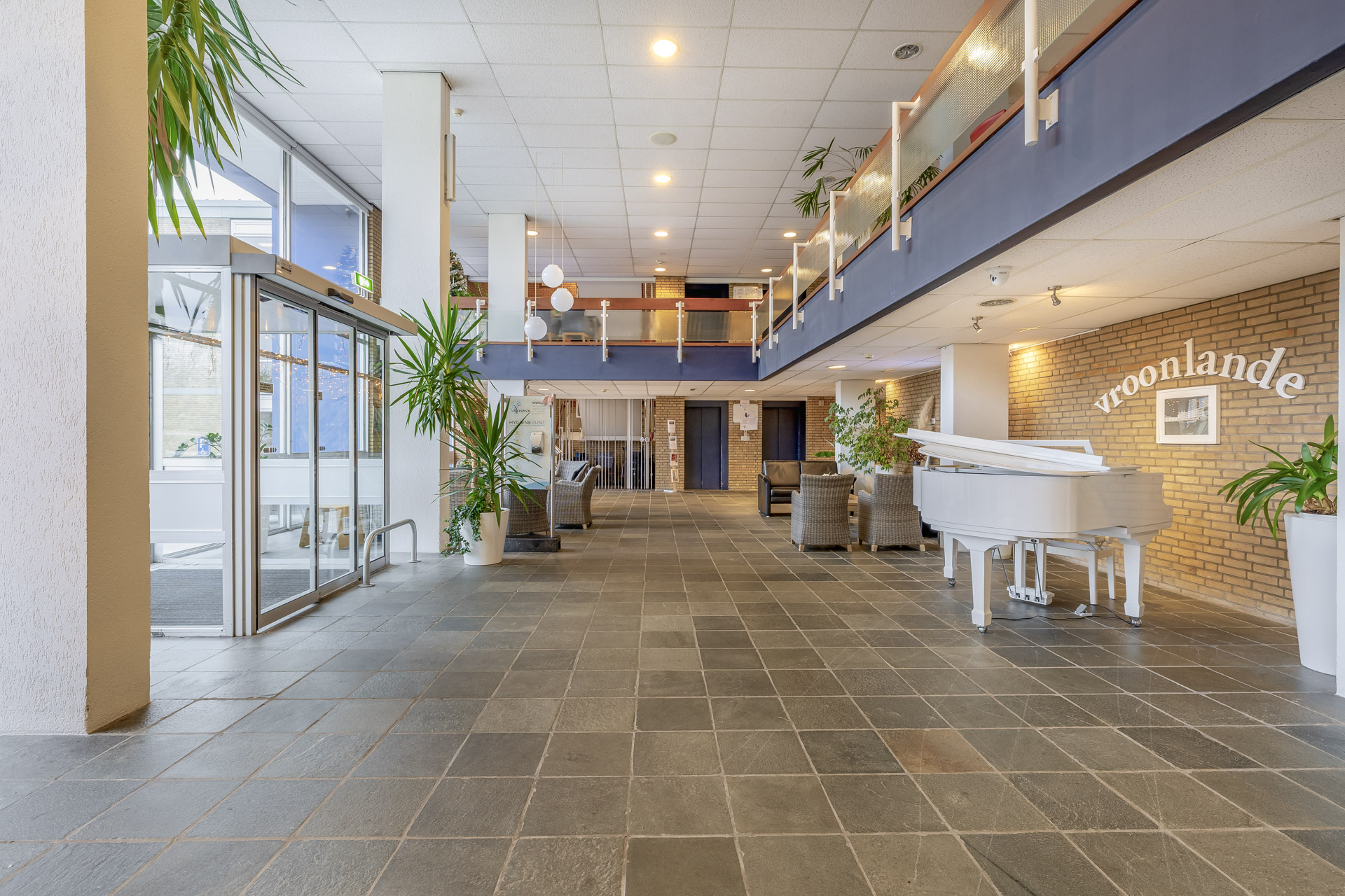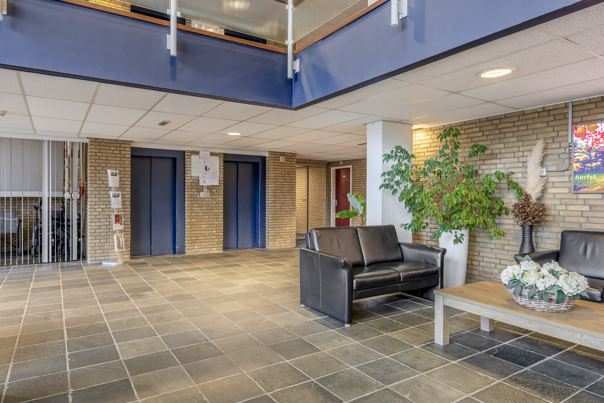 Bij binnenkomst in de centrale hal ervaart u direct de warme en gastvrije ambiance. Hier vindt u de receptie, uw eigen postbus en diverse gezellige ontmoetingsruimtes. Denk aan een biljartkamer, kapsalon en bibliotheek. Ook de bergingen bevinden zich hier. Een fijne plek waar wonen, comfort en ontmoeting moeiteloos samenkomen.