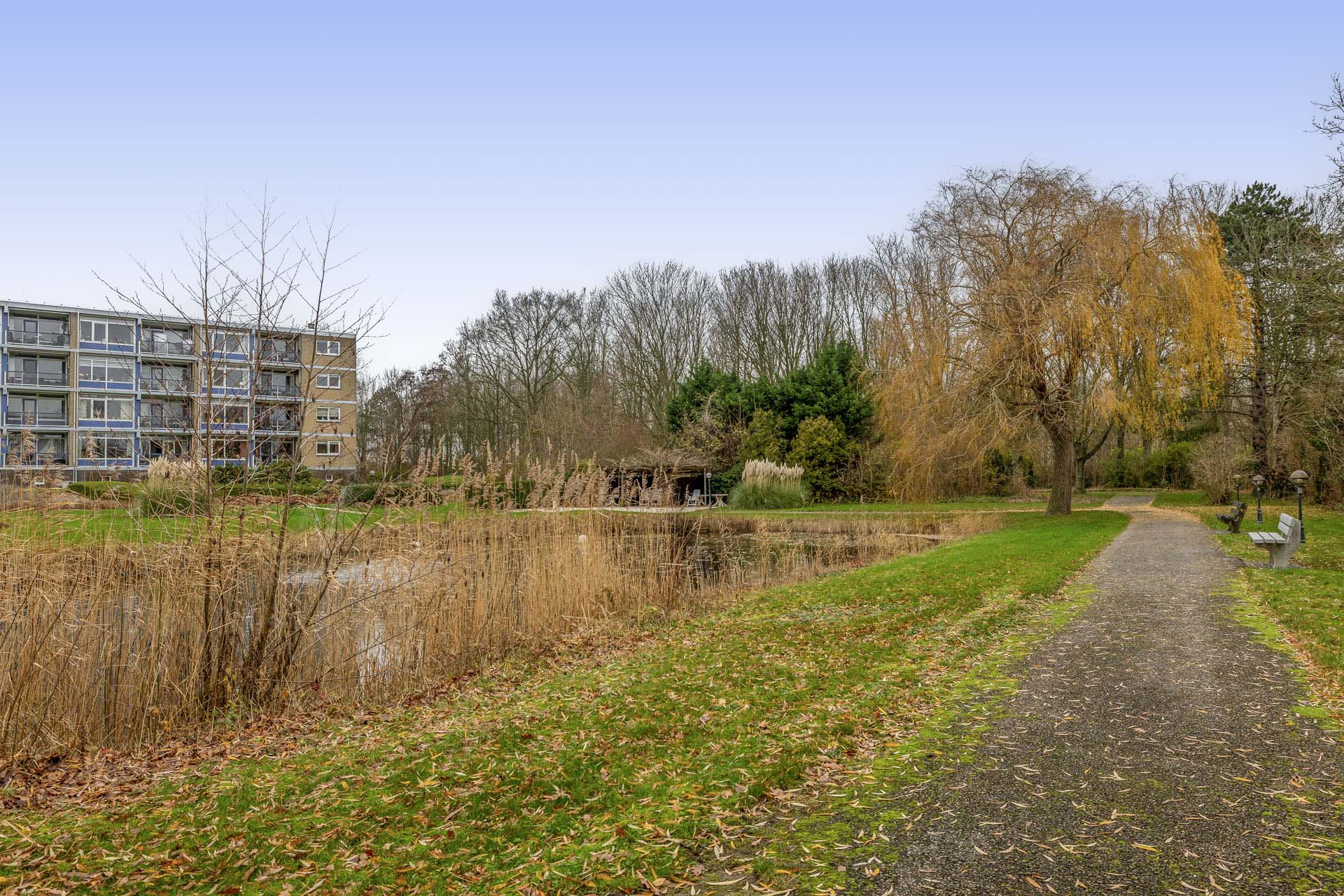 Via de verzorgde entreehal met intercom betreedt u het appartement. U komt binnen in een lichte woonkamer met een half open keuken. Dankzij de grote raampartijen geniet u hier van een fraai uitzicht over de prachtig aangelegde tuin, wat zorgt voor een prettige en rustige woonbeleving. De open keuken is praktisch ingericht en voorzien van diverse inbouwapparatuur, ideaal voor dagelijks gemak. Aansluitend aan de woonkamer bevindt zich de slaapkamer, met directe toegang tot het balkon. Ook vanuit de woonkamer stapt u zo het balkon op. Een fijne buitenruimte waar u heerlijk kunt ontspannen en genieten van het groene uitzicht. De badkamer is vanuit de slaapkamer bereikbaar. Deze is volledig betegeld en uitgerust met een douche, wastafelmeubel, toilet en een aansluiting voor de wasmachine. Een comfortabel en goed ingedeeld appartement, perfect voor wie zelfstandig wil wonen in een prettige woonomgeving.