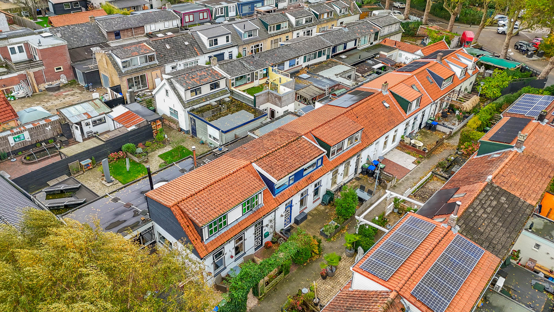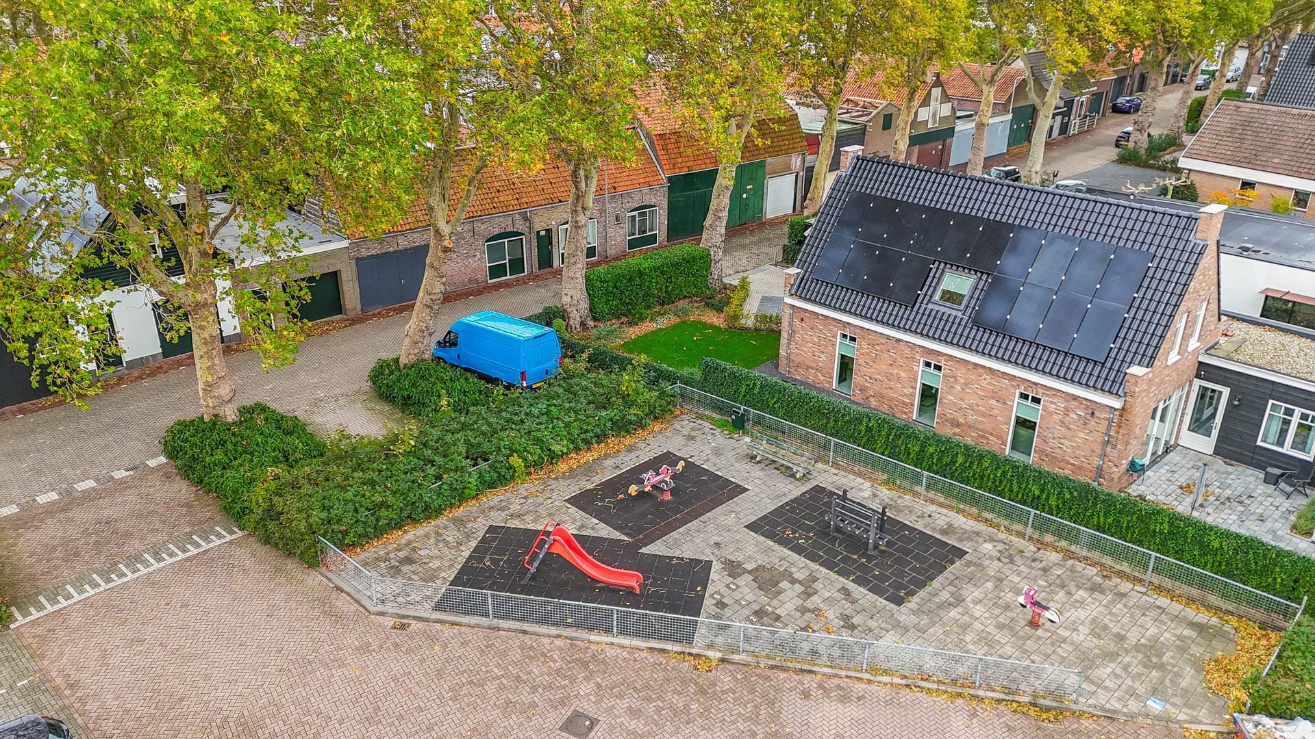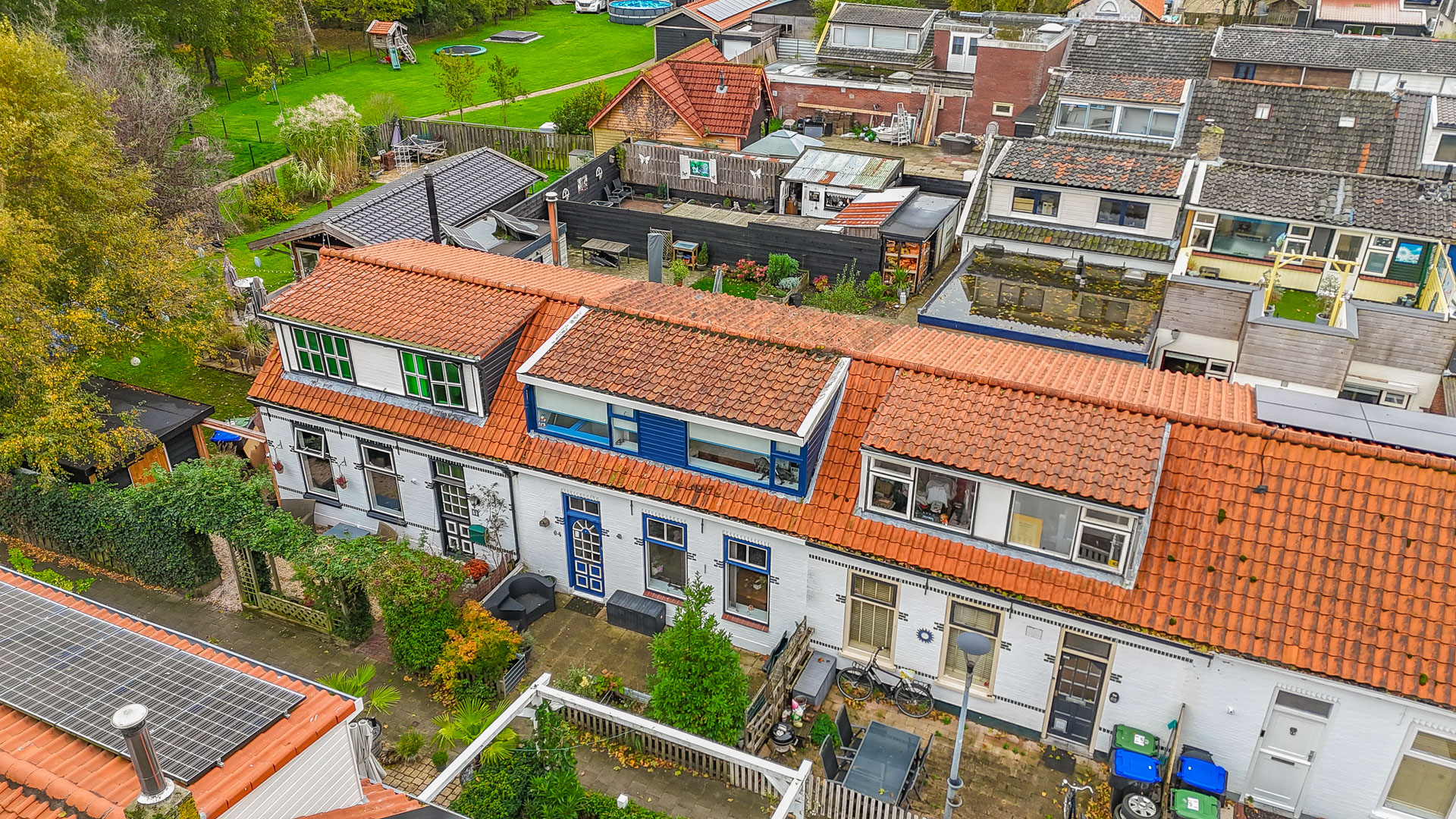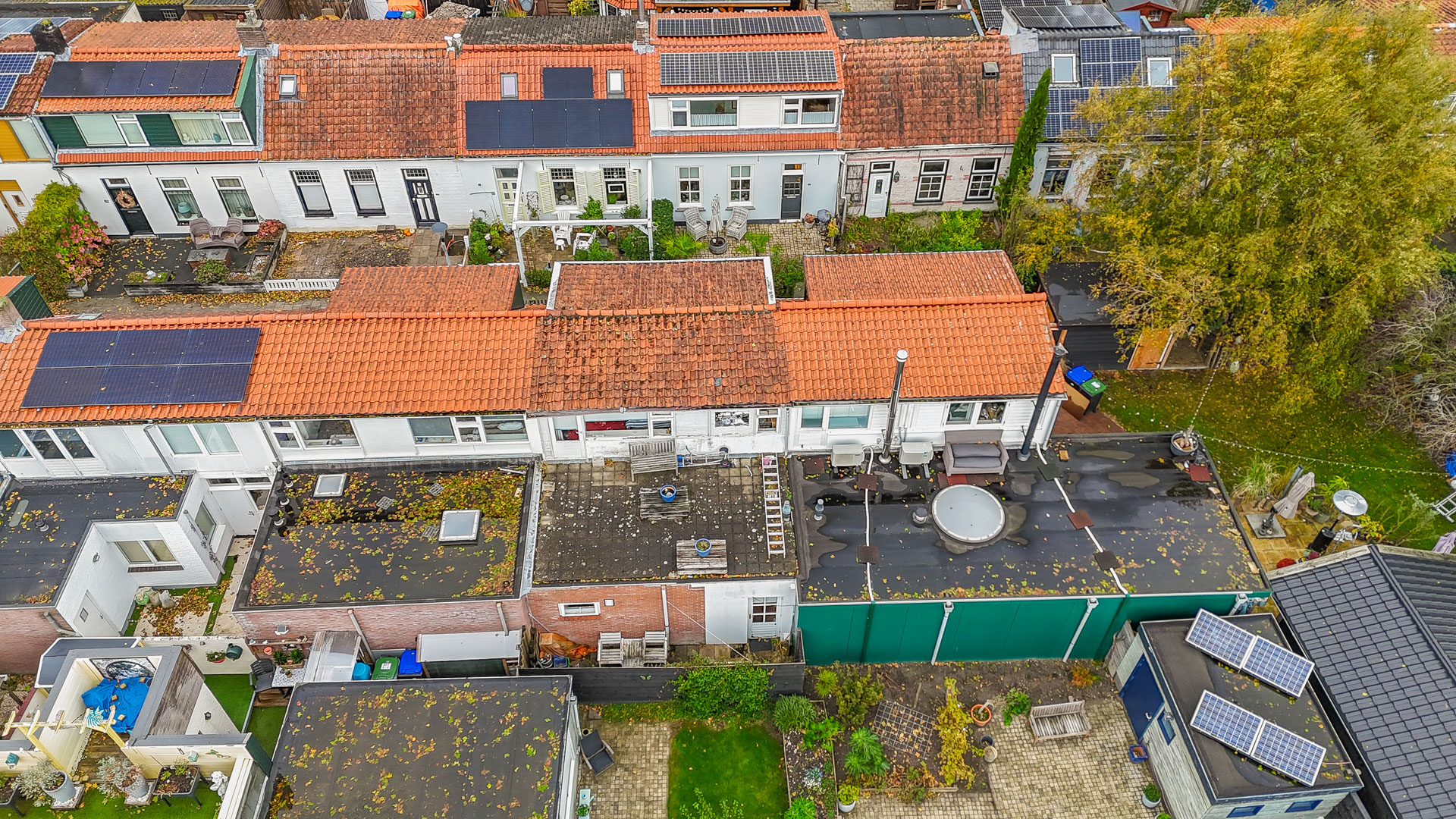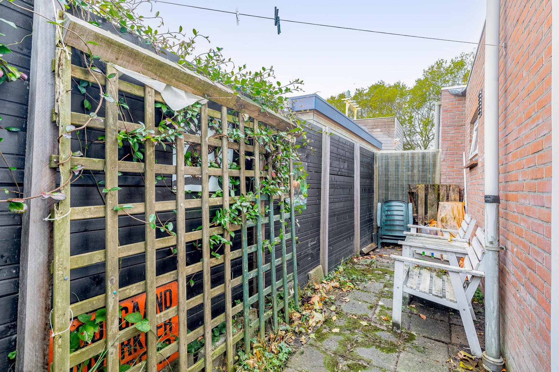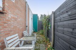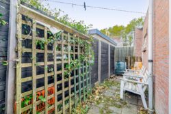 De woning beschikt over een tuin aan zowel de voor- als achterzijde. De hoofdtuin ligt aan de voorzijde en is voorzien van bestrating en groene borders met planten en struiken. Omdat de straat autovrij is, kun je hier in alle rust genieten van het buitenleven. Achter de woning bevindt zich een tweede tuin, ideaal voor een knus zitje of wat extra opbergruimte.