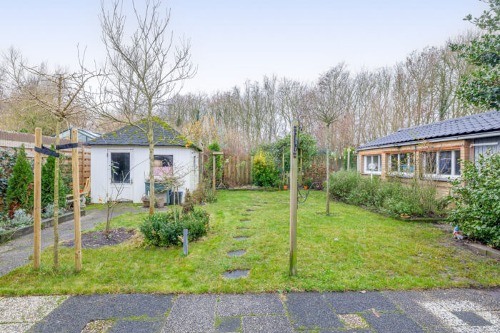 De woning beschikt over een royale oprit met voldoende parkeergelegenheid voor meerdere auto’s. De tuin ligt rondom de woning en is verzorgd aangelegd met een combinatie van gazon en beplanting. In de tuin bevinden zich een garage en een berging, ideaal voor opslag of hobby’s. De achtertuin is gelegen op het zuidwesten en biedt een heerlijke plek om te ontspannen, van de zon te genieten of lange avonden te tafelen met familie en vrienden.