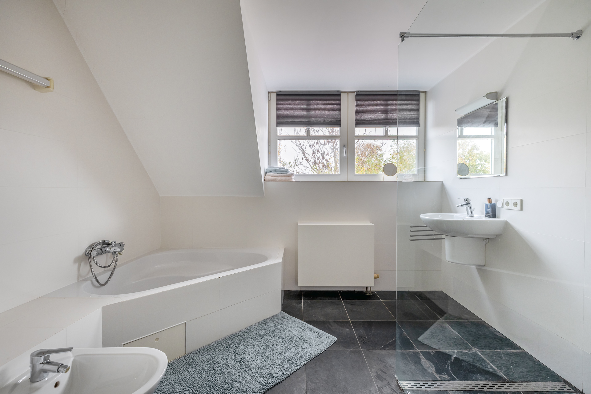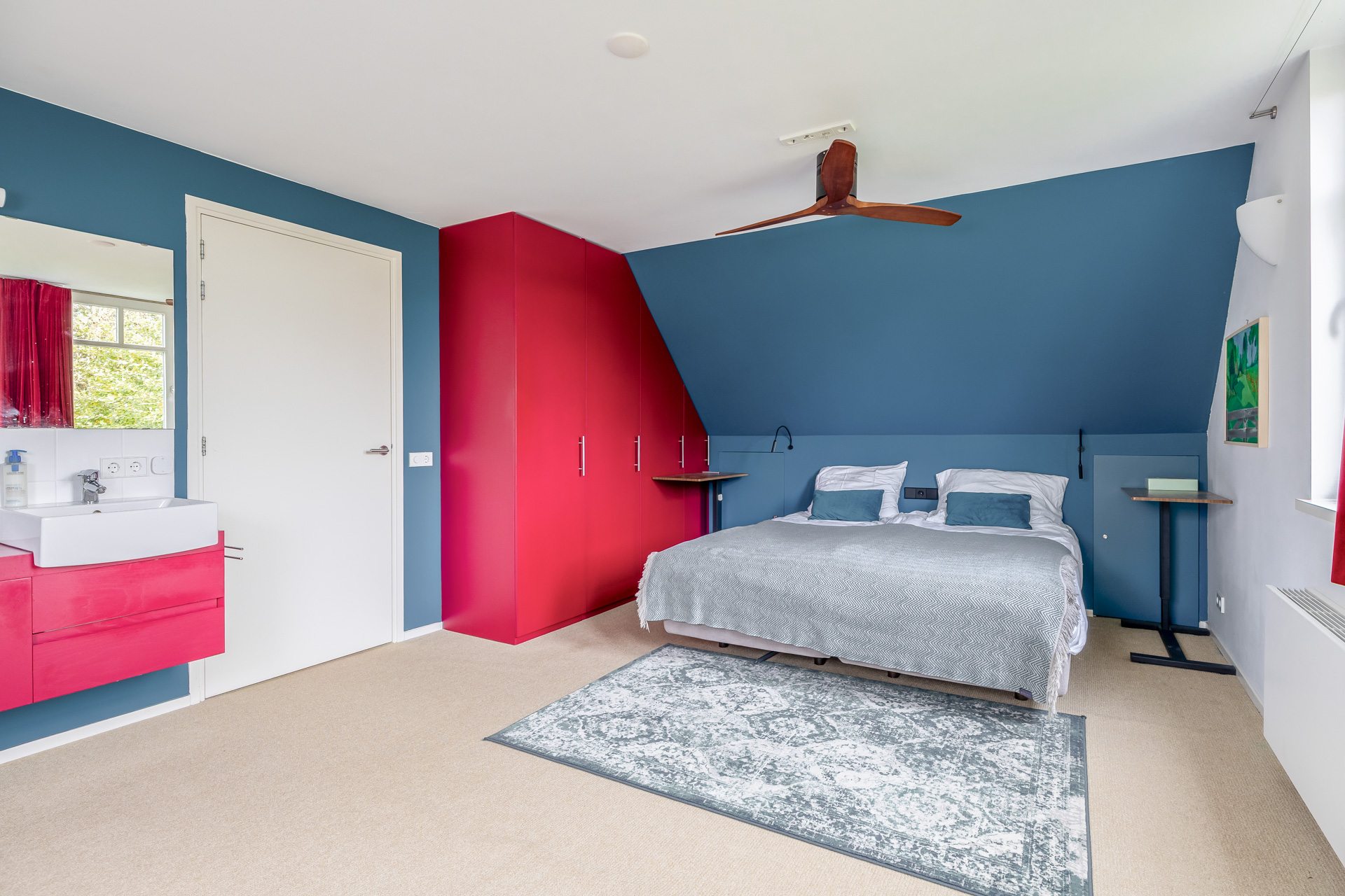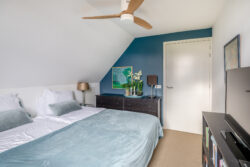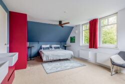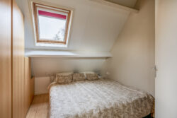 De overloop biedt toegang tot drie ruime slaapkamers, een inloopkast, de badkamer, een separaat toilet en de technische ruimte met CV installatie. De slaapkamers zijn licht en comfortabel. De slaapkamer aan de achterzijde beschikt over een vaste kast, extra bergruimte, een dakraam en een dubbele wastafel. Eén van de slaapkamers aan de voorzijde geeft toegang tot de vliering. De badkamer is vergroot door middel van een dakkapel en voorzien van een ligbad, inloopdouche, wastafel en bidet. De vierde kamer is ideaal als inloopkast of werkruimte.