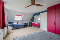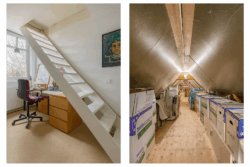 De ruime vliering is bereikbaar vanuit één van de slaapkamers en biedt volop praktische bergruimte.