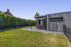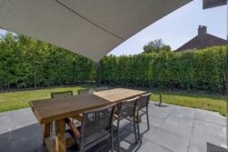 De tuin is rondom gelegen en onderhoudsvriendelijk aangelegd. Er is altijd wel een plekje te vinden om te genieten van de zon of juist van de schaduw. Je auto parkeren is mogelijk op eigen terrein. Direct achter de woning is een terras gecreëerd welke bereikbaar is vanuit de woonkamer en één van de slaapkamers.