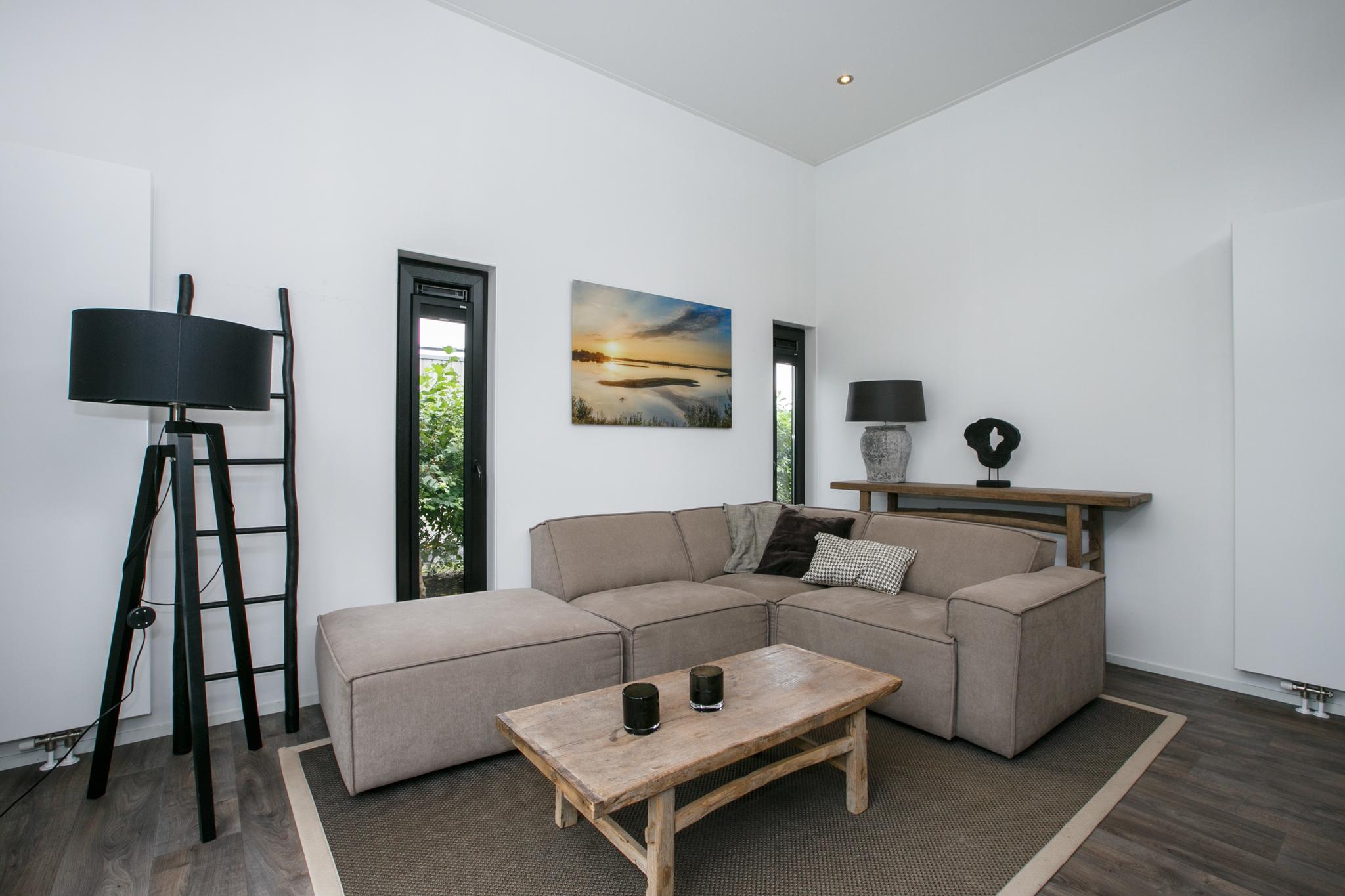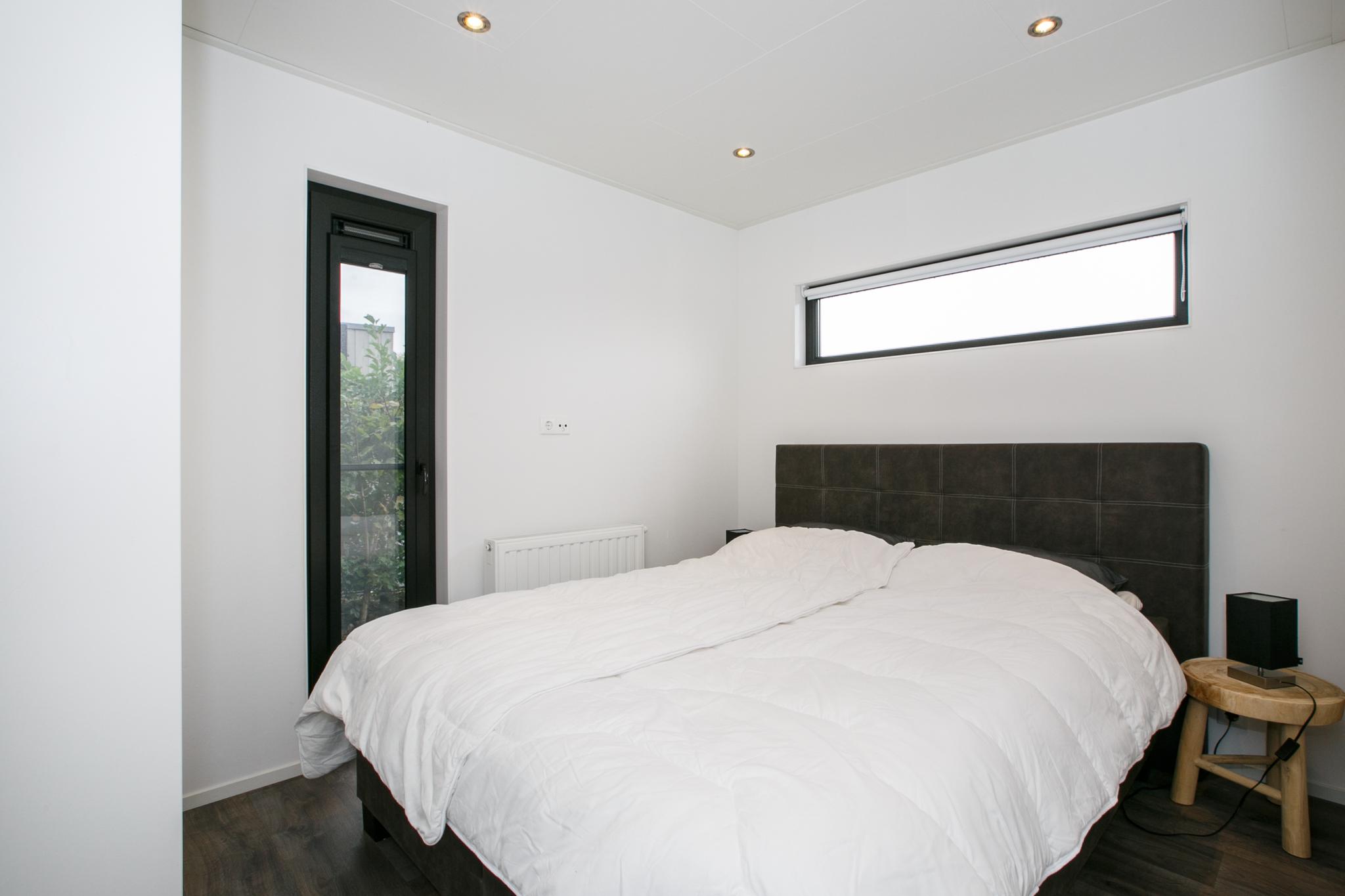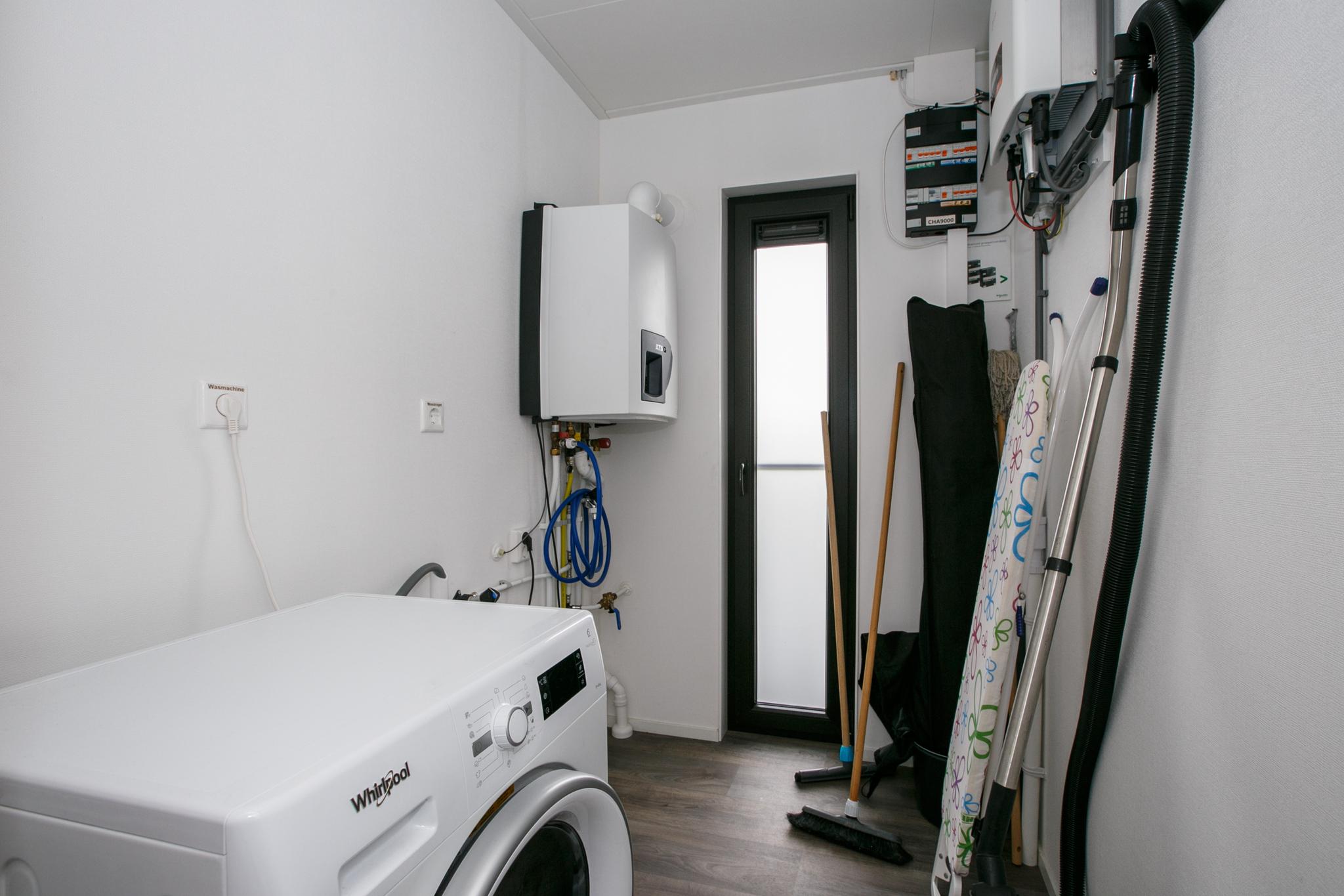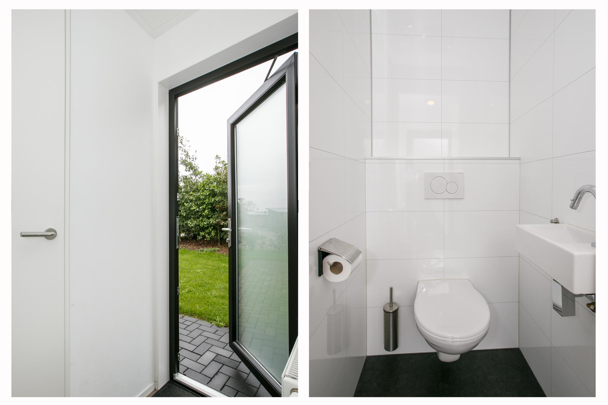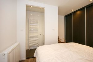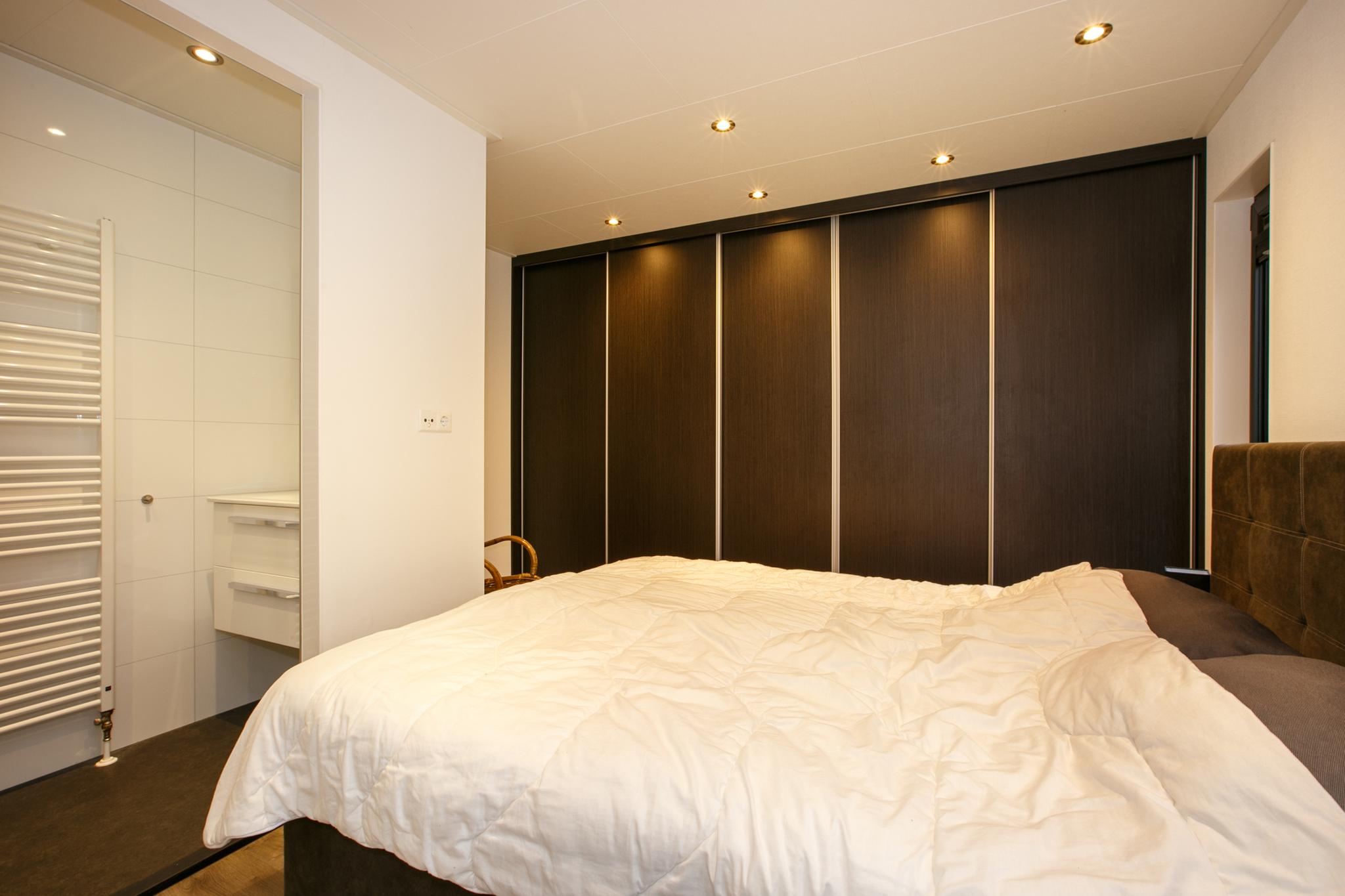 De entreehal geeft toegang tot de toiletruimte met wastafel, de woon/eetkamer en een slaapkamer. De gezellige woon/eetkamer, in warme tinten, is voorzien van een sfeervolle gashaard, een mooie PVC vloer, inbouwspots en een grote schuifpui naar de tuin. De grote raampartijen zorgen voor veel lichtinval. In het verlengde van de woonkamer is de eethoek gesitueerd. Aansluitend is de open keuken bereikbaar. De moderne keuken is voorzien van een donkergrijze kastenwand, een wit spoel/kookeiland en diverse inbouwapparatuur: kookplaat, afzuigkap, combi-magnetron, koel-/vriescombinatie en vaatwasser. De ruime slaapkamer, bereikbaar vanuit de entreehal, is voorzien van een PVC vloer, een grote vaste kast en een eigen badkamer. De geheel betegelde badkamer is voorzien van een inloopdouche, een wastafel en een designradiator. Vanuit de woonkamer is de tweede hal bereikbaar. Deze hal geeft toegang tot de tweede slaapkamer en een ruimte waar de CV-ketel hangt en de witgoedaansluitingen zijn. De tweede slaapkamer is voorzien van een PVC vloer, een vaste kast en een eigen badkamer. De badkamer is geheel betegeld en voorzien van een inloopdouche, een wastafel en een designradiator.