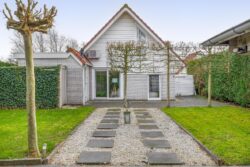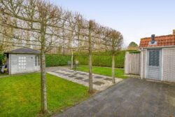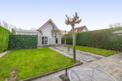 De ruime tuin rondom de woning biedt volop mogelijkheden om te ontspannen. Het geheel is verzorgd aangelegd met een terras, gazon, siergrind en enkele bomen. De haag rondom zorgt voor optimale privacy. Achter in de tuin staat een houten berging en aan de achterzijde van de woning is een tweede berging aangebouwd met vaste kast. Voor de woning is ruimte om twee auto’s te parkeren.