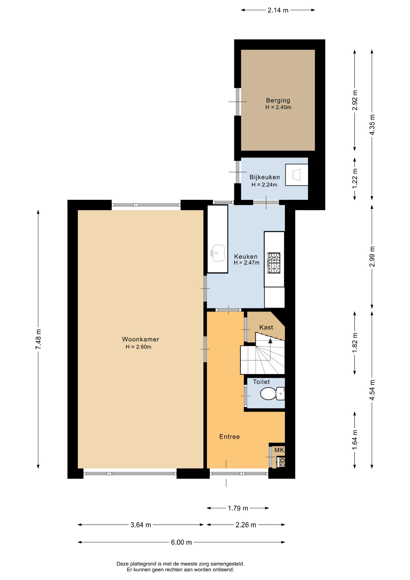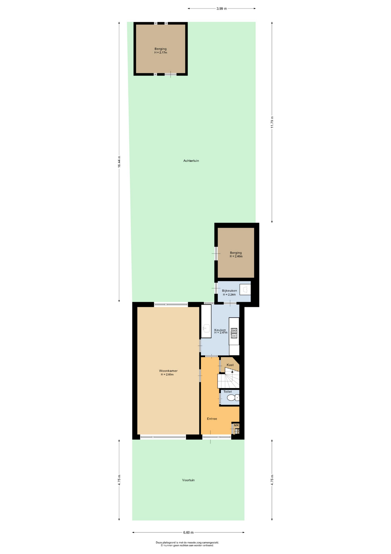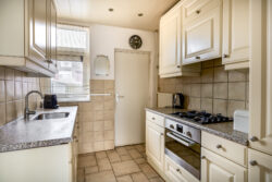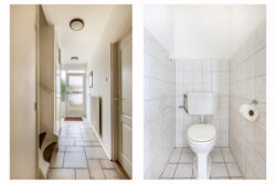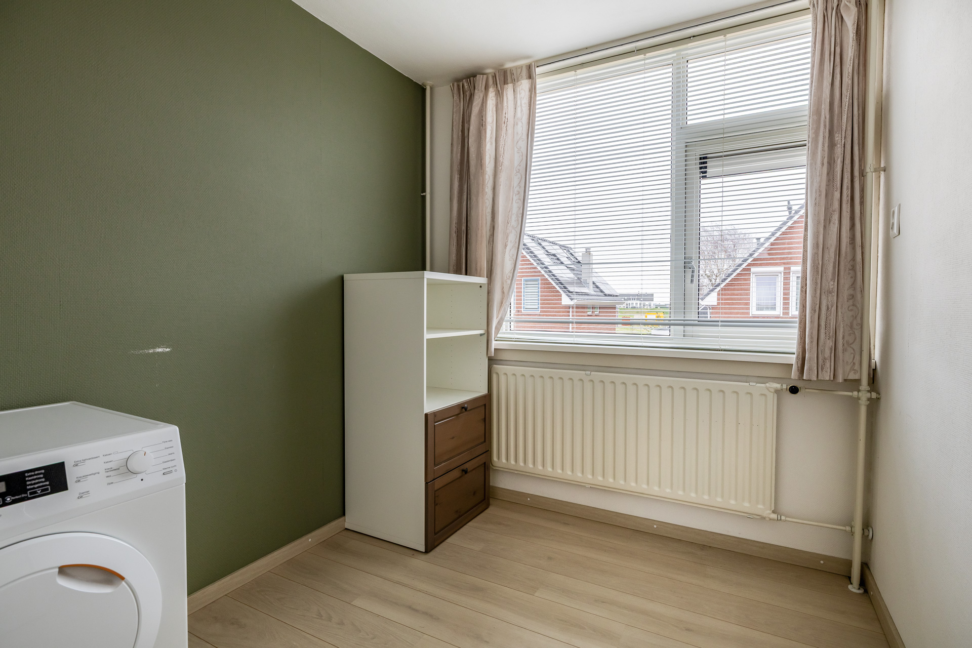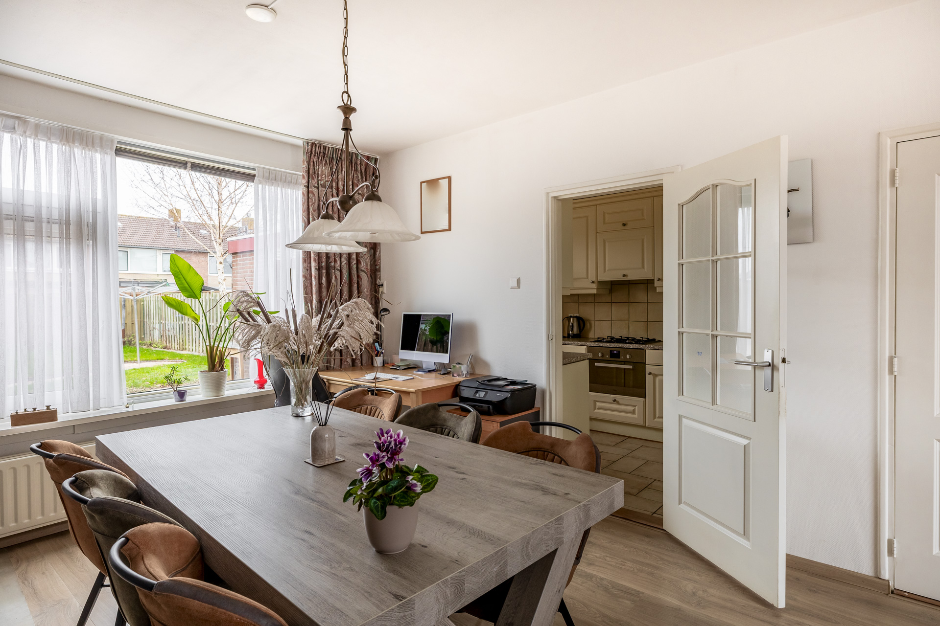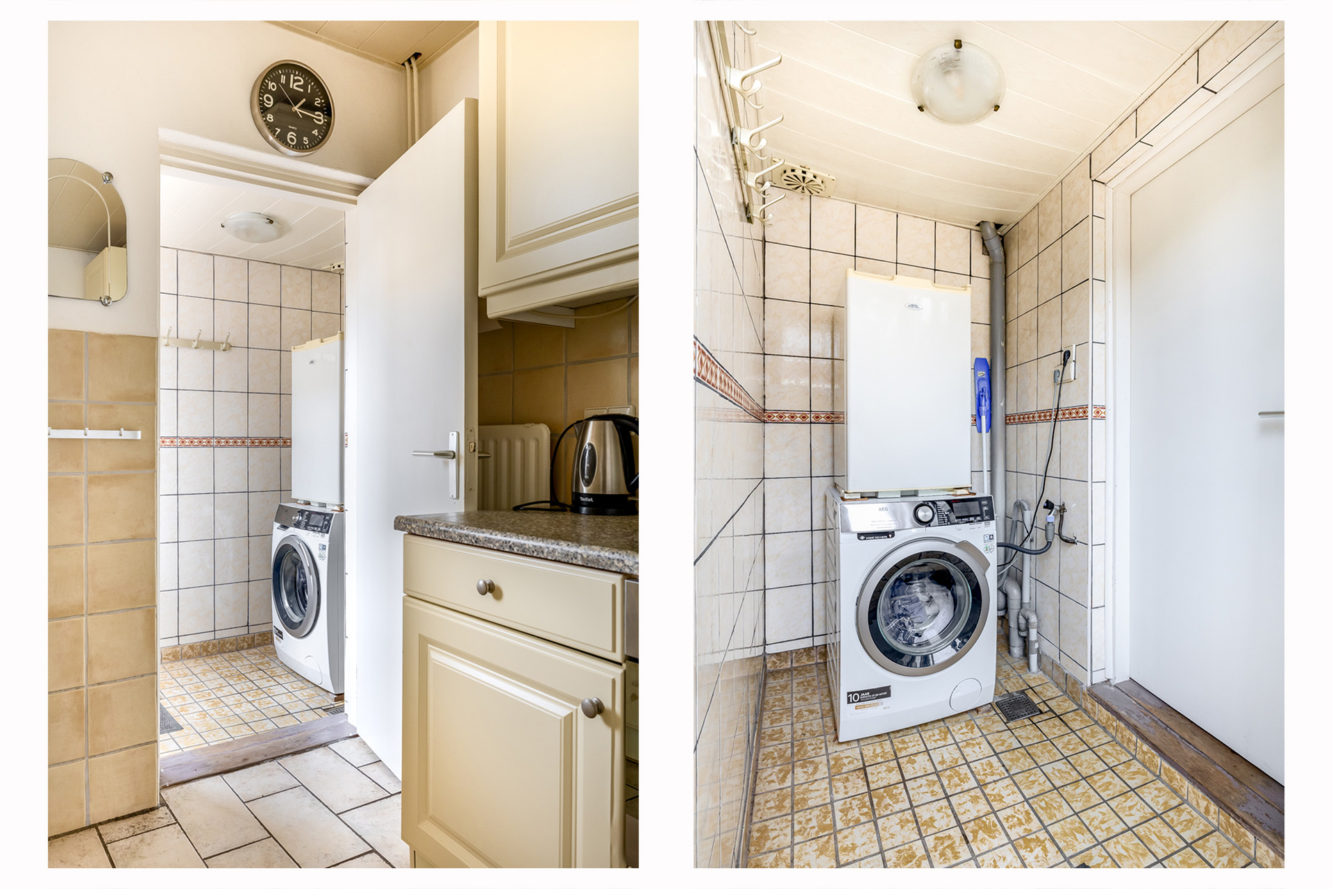 De begane grond verwelkomt je via een entreehal met toilet en meterkast. Vanuit hier ontvouwt zich de woonkamer, waar royale raampartijen aan zowel de voor- als achterzijde zorgen voor een aangename, natuurlijke lichtinval. De keuken is praktisch ingericht en voorzien van diverse apparatuur. Aansluitend bevindt zich de bijkeuken met witgoedaansluitingen en directe toegang tot de tuin, ideaal voor dagelijks comfort.